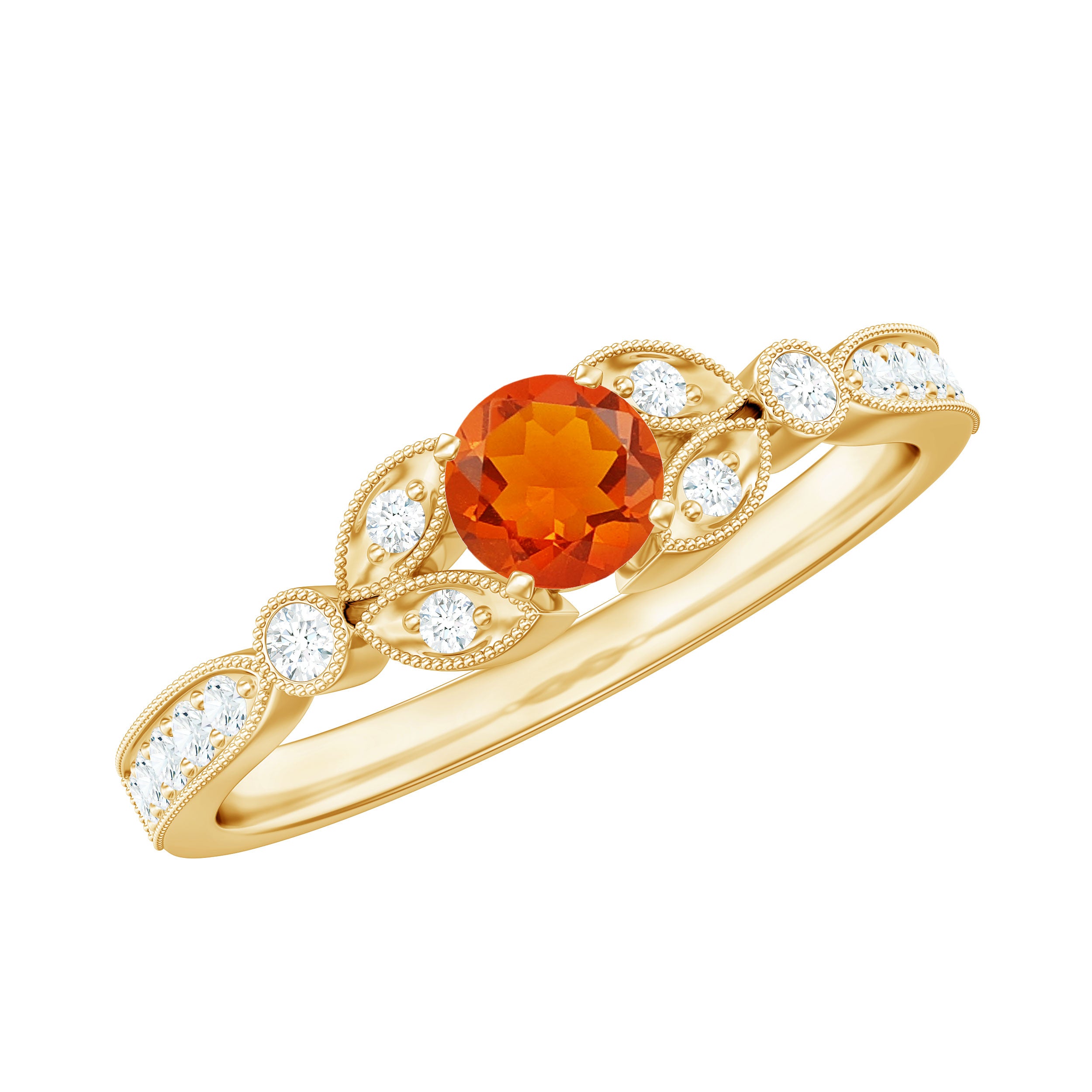 Express your love to her with this beautiful Minimal Promise Ring adorned with Round Shape Fire Opal at the center and a Round Diamond Accent. This Fire Opal Promise Ring is crafted with Gold Metal with Gold Beaded Details to make for a luxe choice for your beloved.