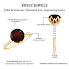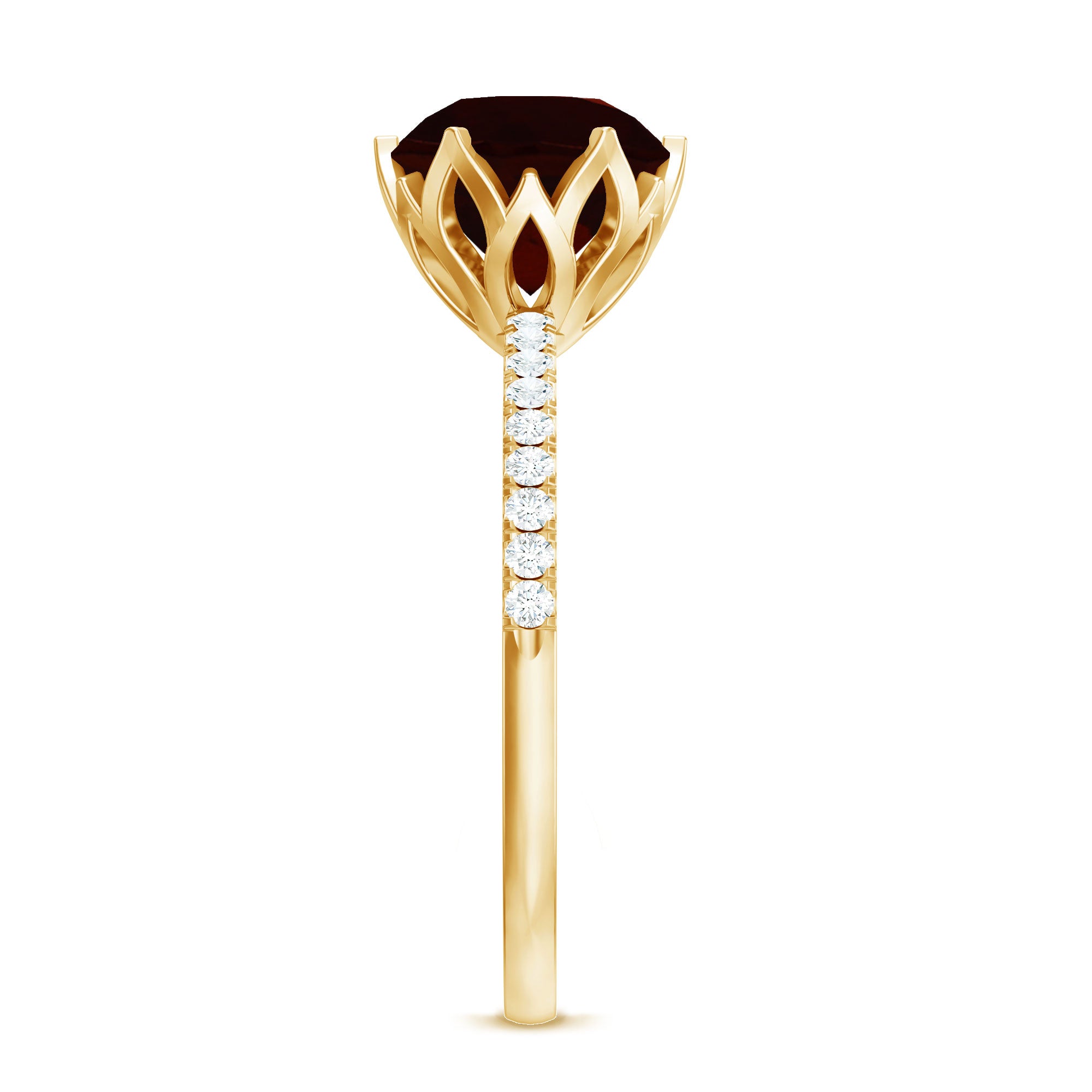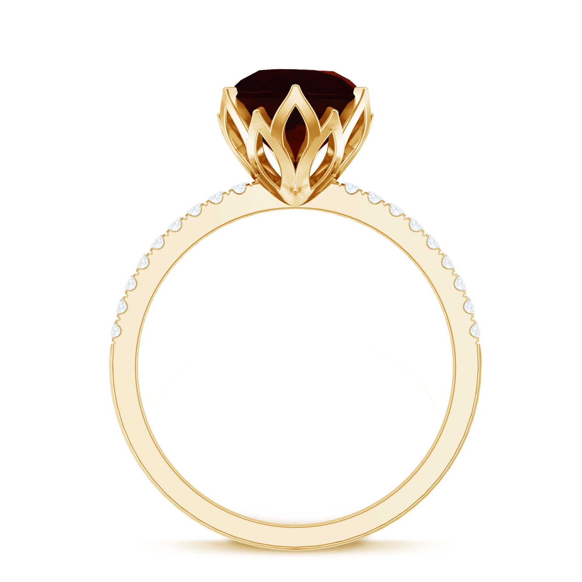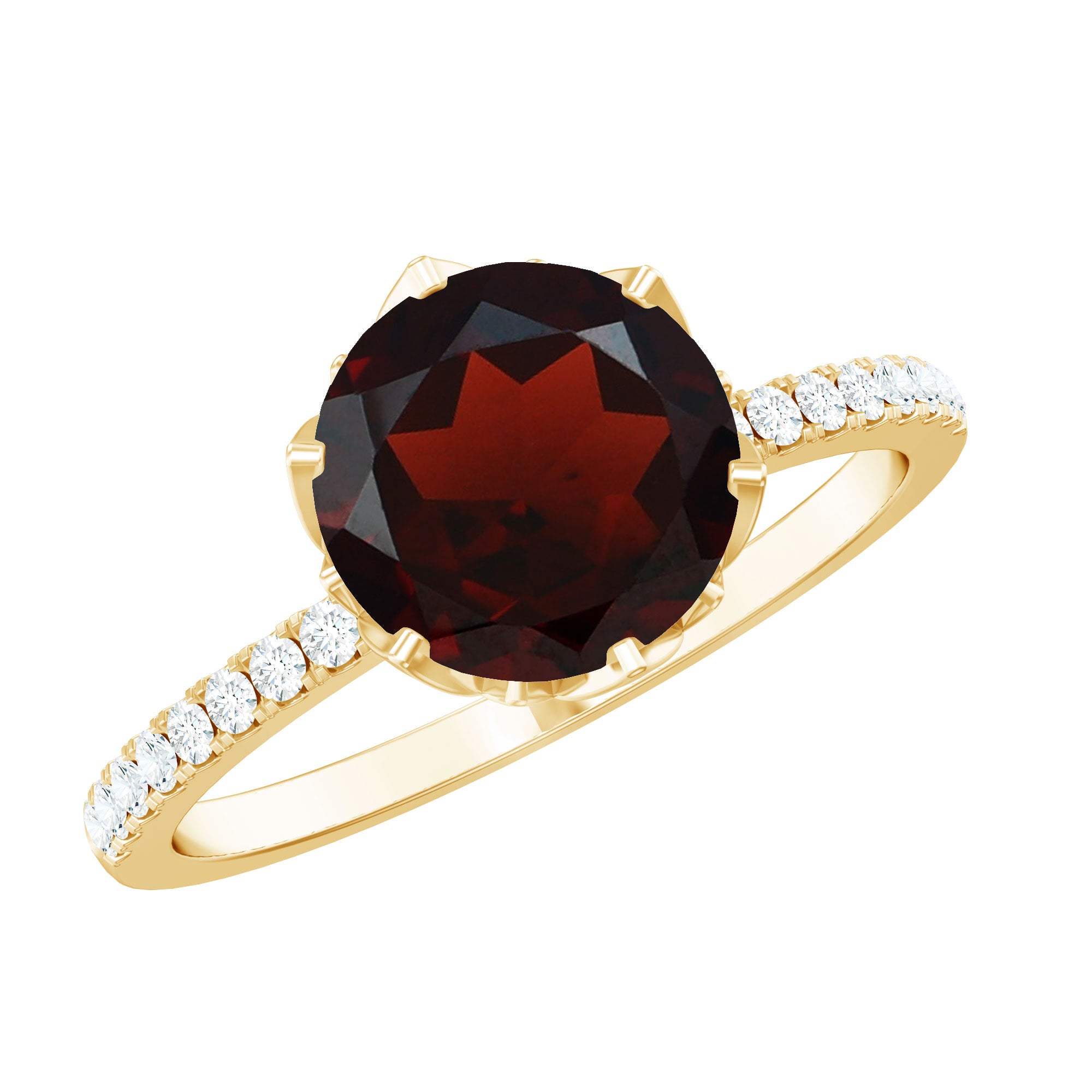 Promise her that you will always carry love as deep as the intense red hues of this Garnet Promise Ring for her! Brimming in romance, the Solitaire of 5 MM Round Shape Garnet sits pretty at the center, elegantly held by Lotus Basket Setting. The band is partially encrusted with a parade of Round Shape Diamond that grasp more attention towards the centerpiece. The best part? Each stone embedded in this Certified Garnet Solitaire Ring has been rewarded with a premium quality grade, so she doesnt have to think twice before flaunting it whenever she wants.