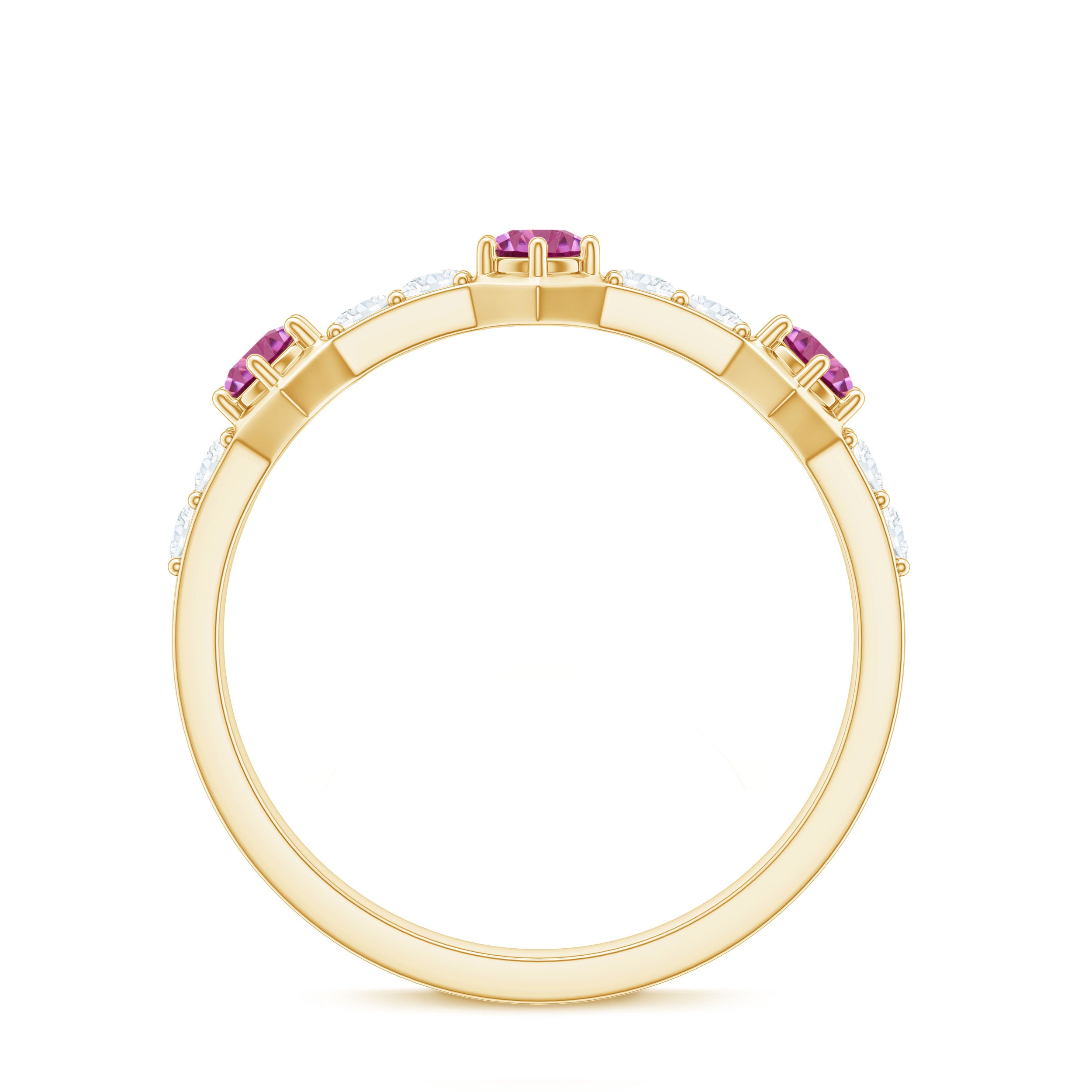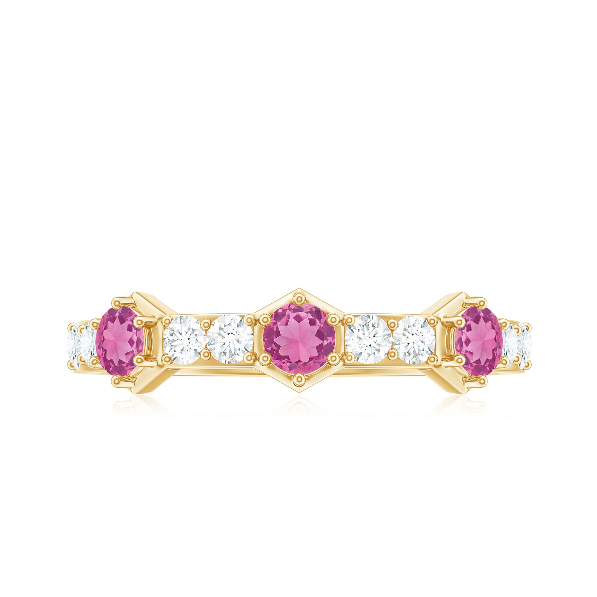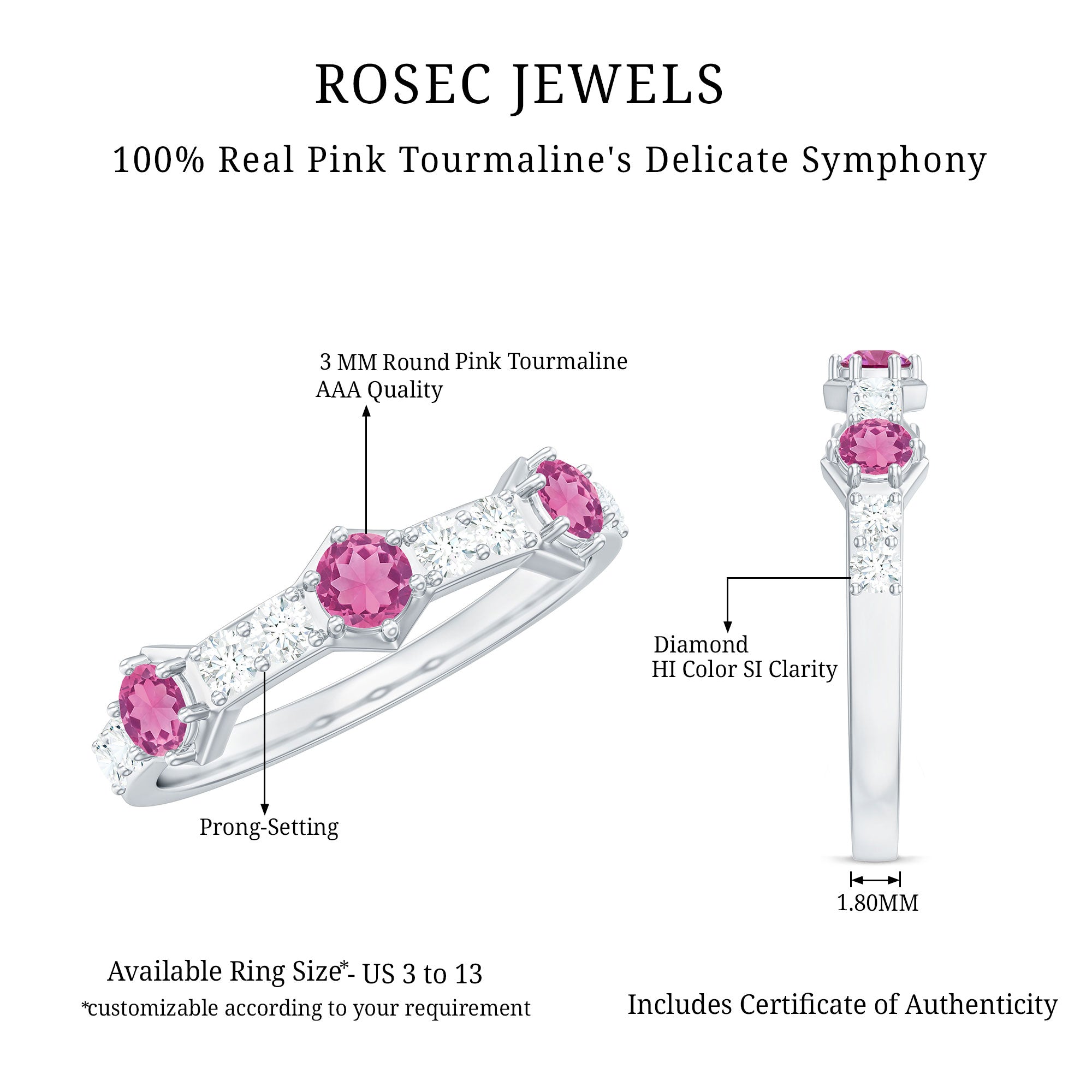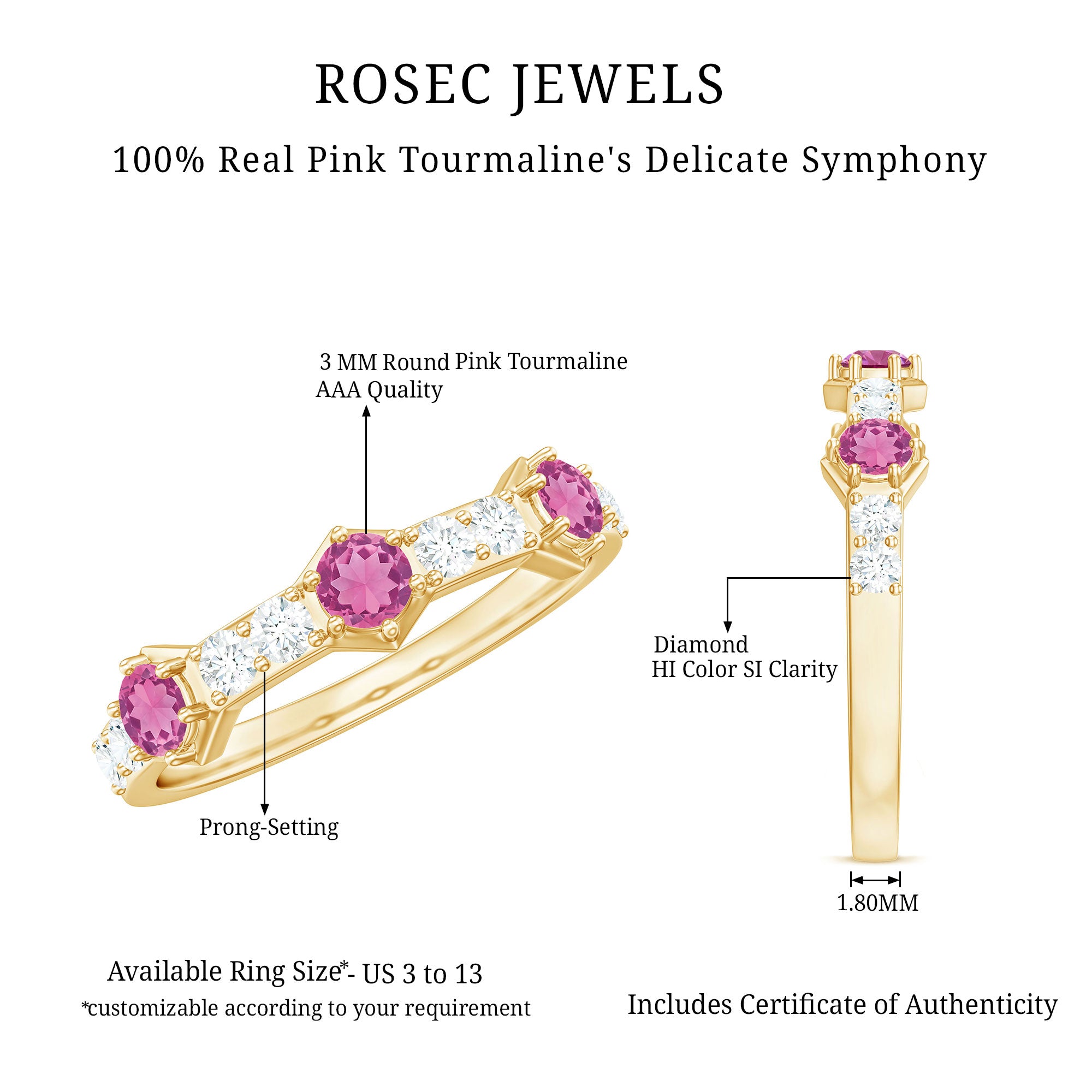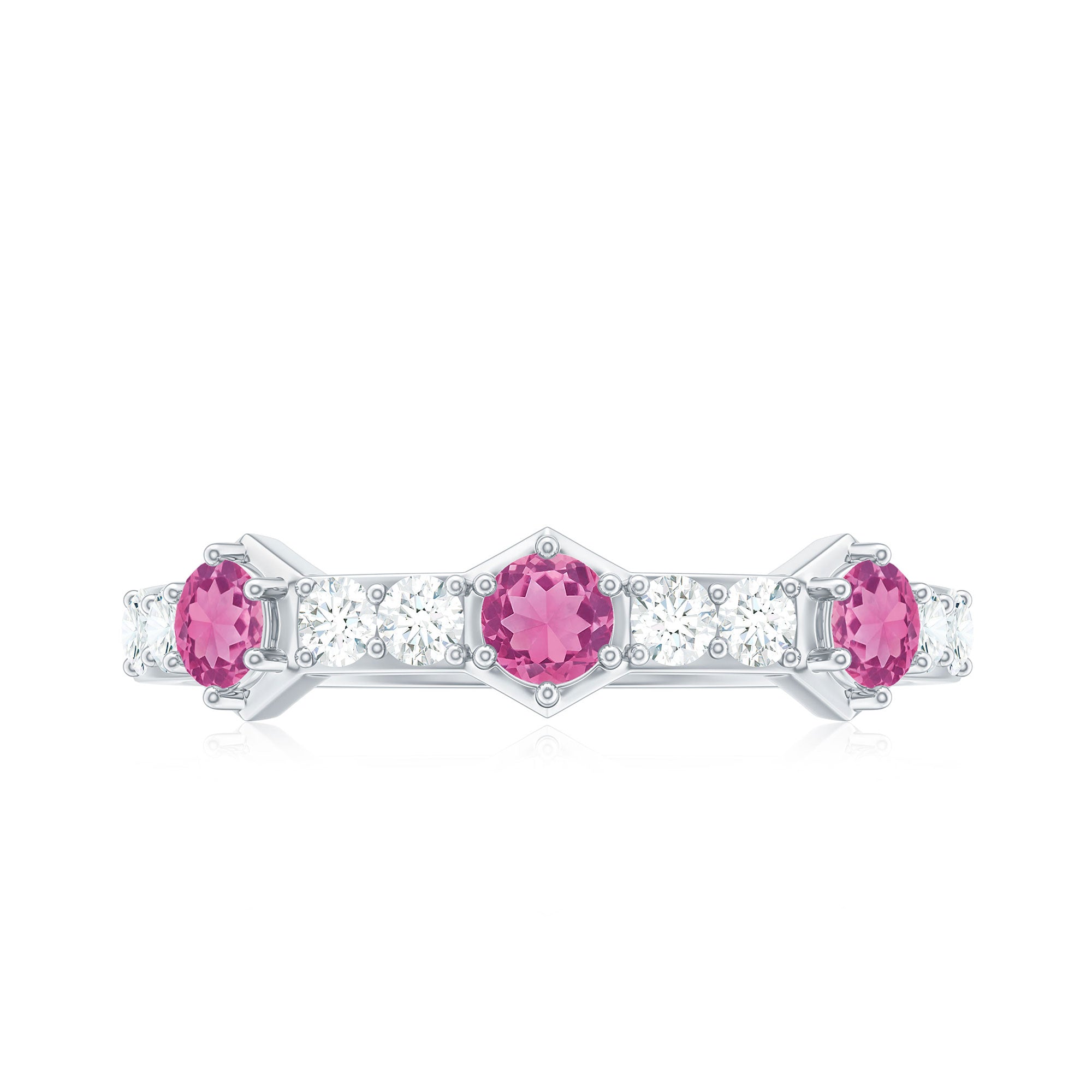 Elevate your style with this Minimal Half Eternity Ring. Sparkling Pink Tourmaline and Diamond gemstones create a perfect balance of elegance and allure.