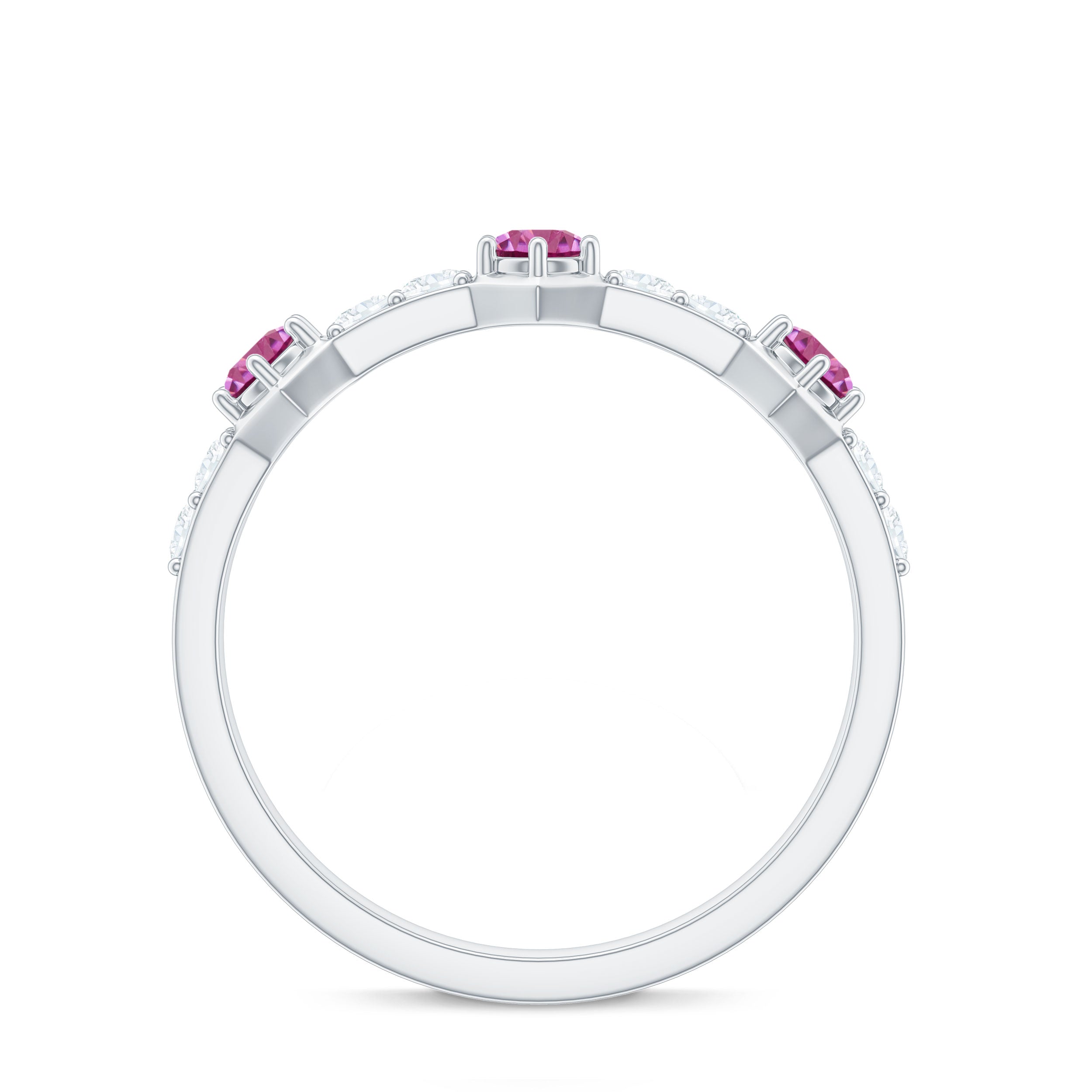 Minimal Half Eternity Ring with Pink Tourmaline and Diamond
