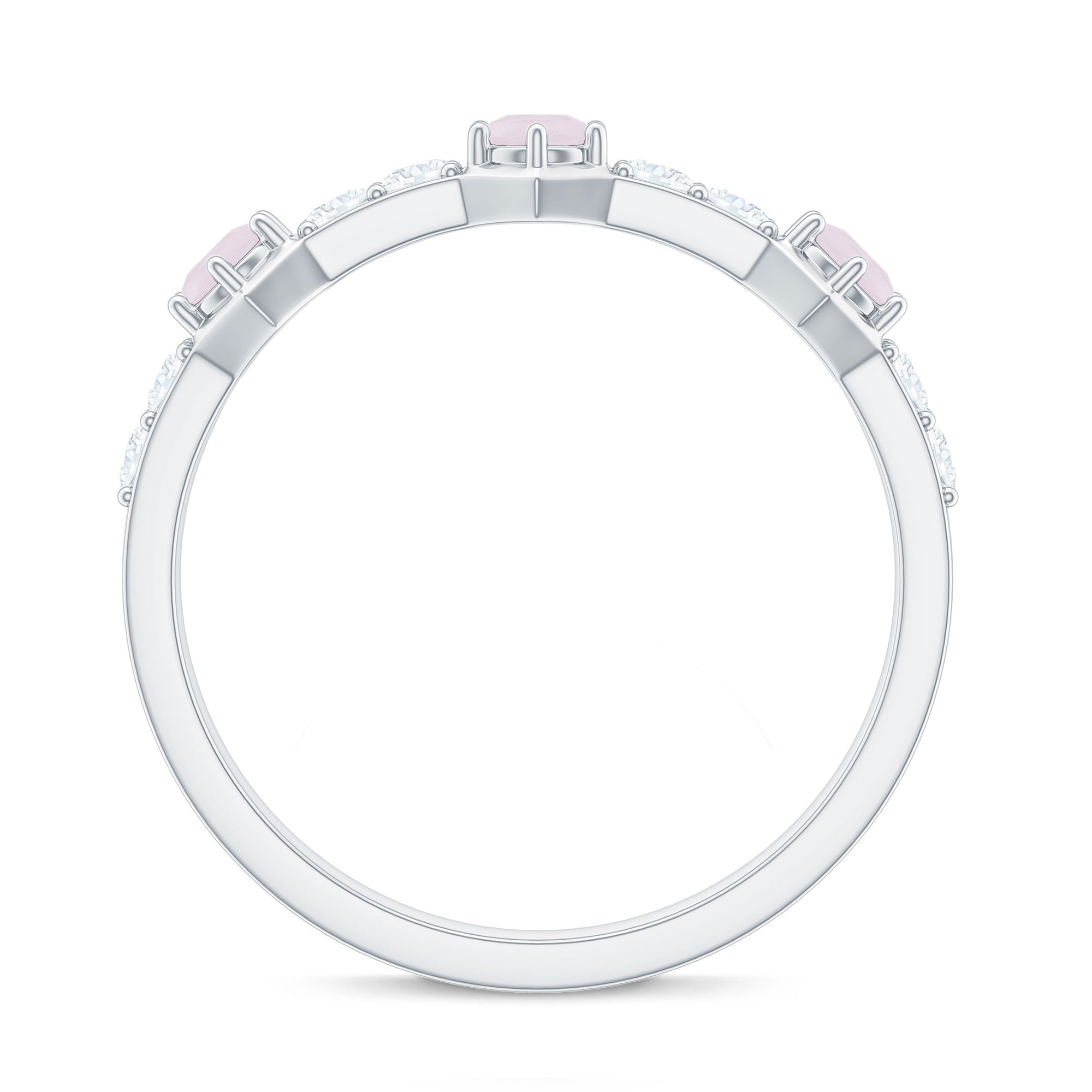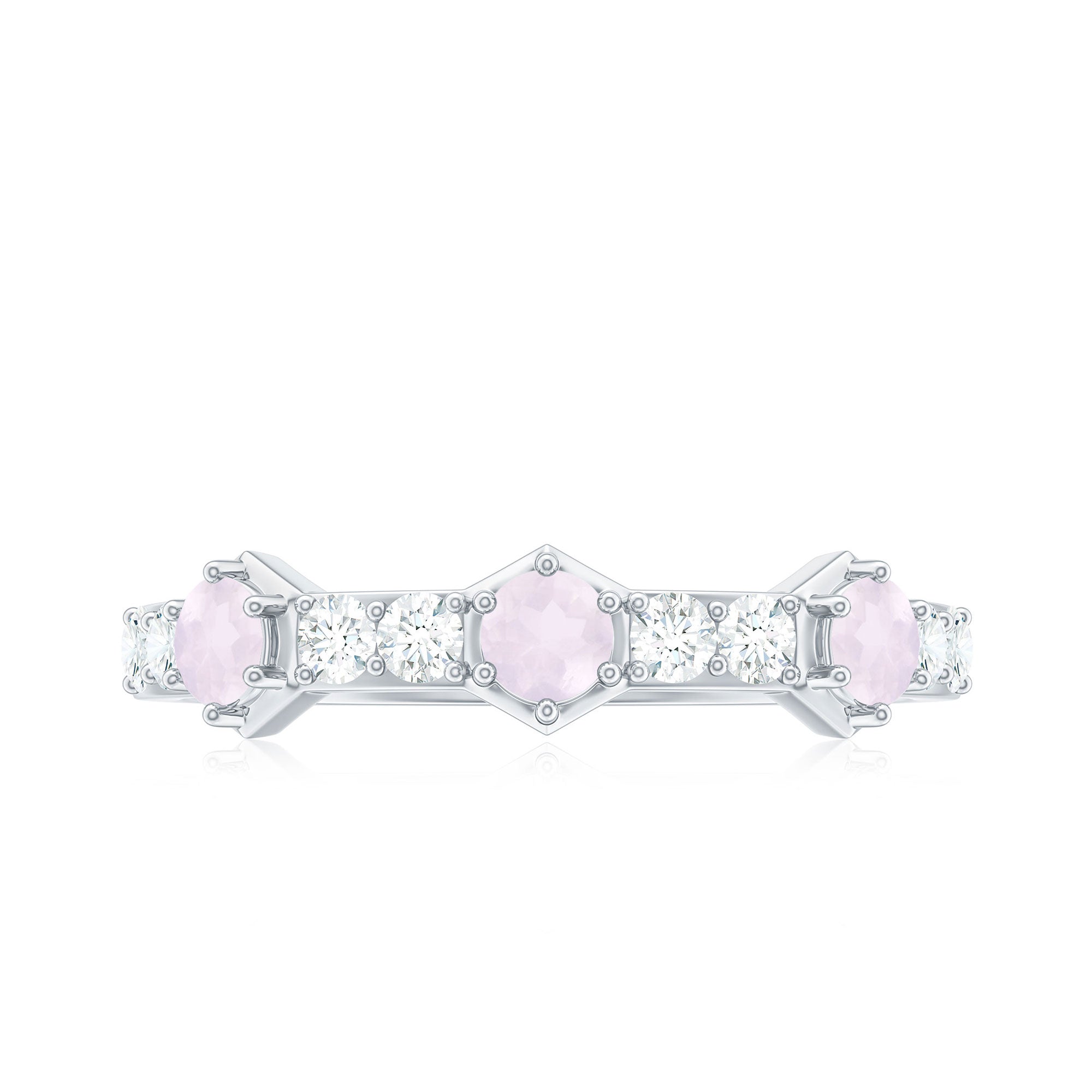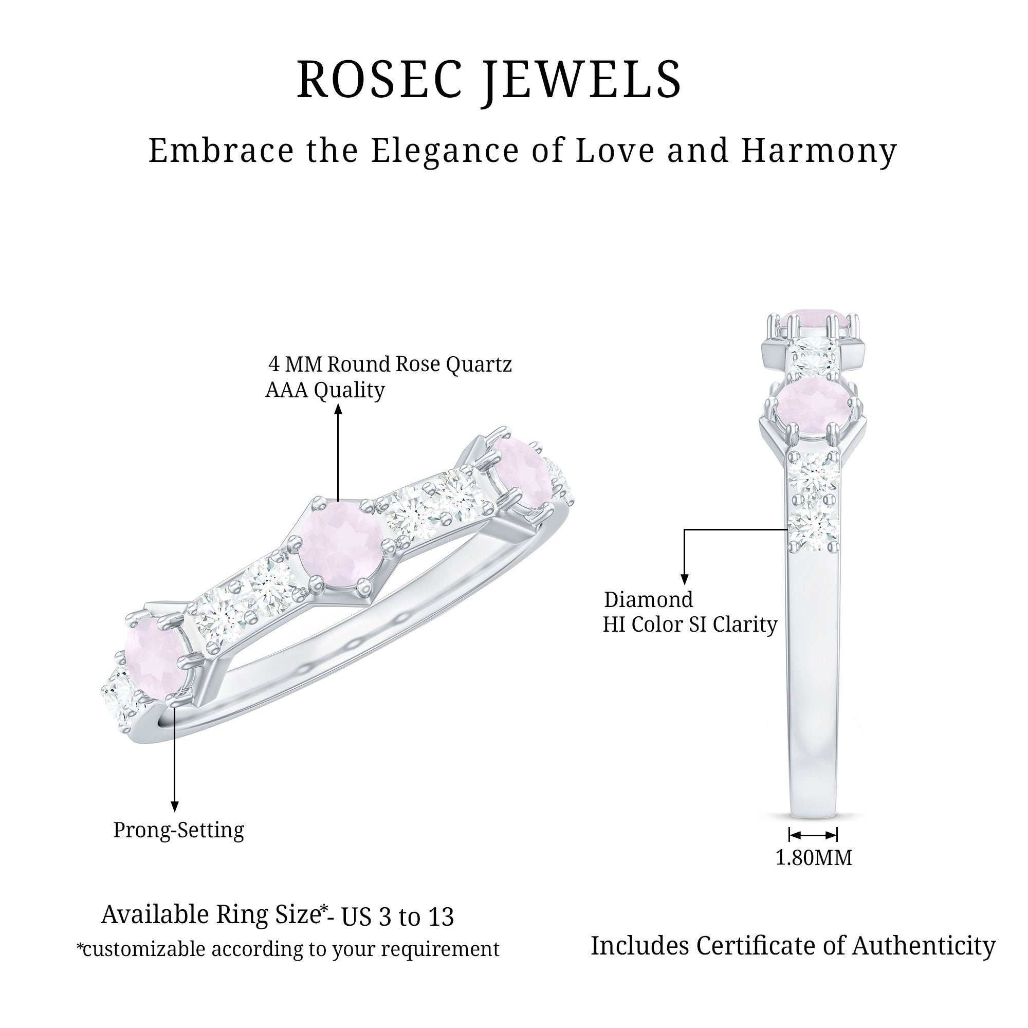 Embrace understated elegance with this Minimal Semi Eternity Ring adorned with Round Shape Rose Quartz and Diamond gemstones set alternately in Prong Setting. Celebrate your cherished bond with this enchanting Rose Quartz Ring, a symbol of your enduring affection.