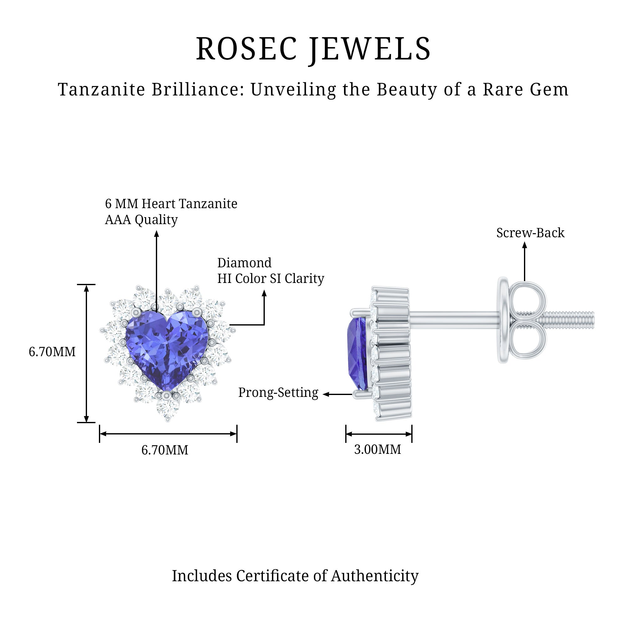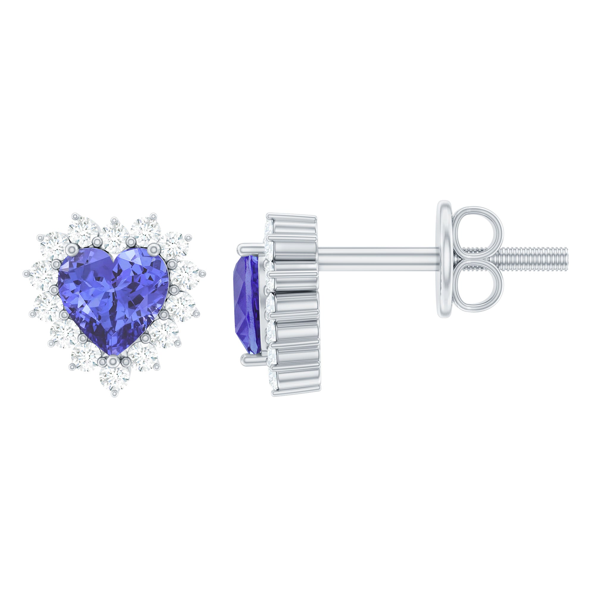 Minimal Heart Shape Tanzanite Halo Stud Earrings with Diamond