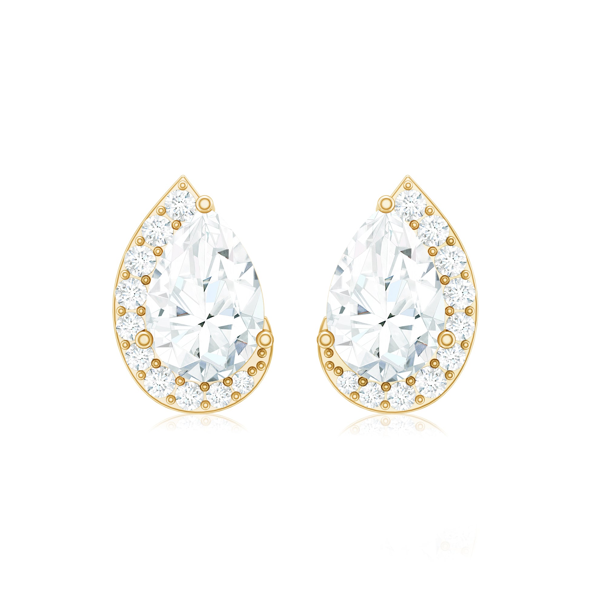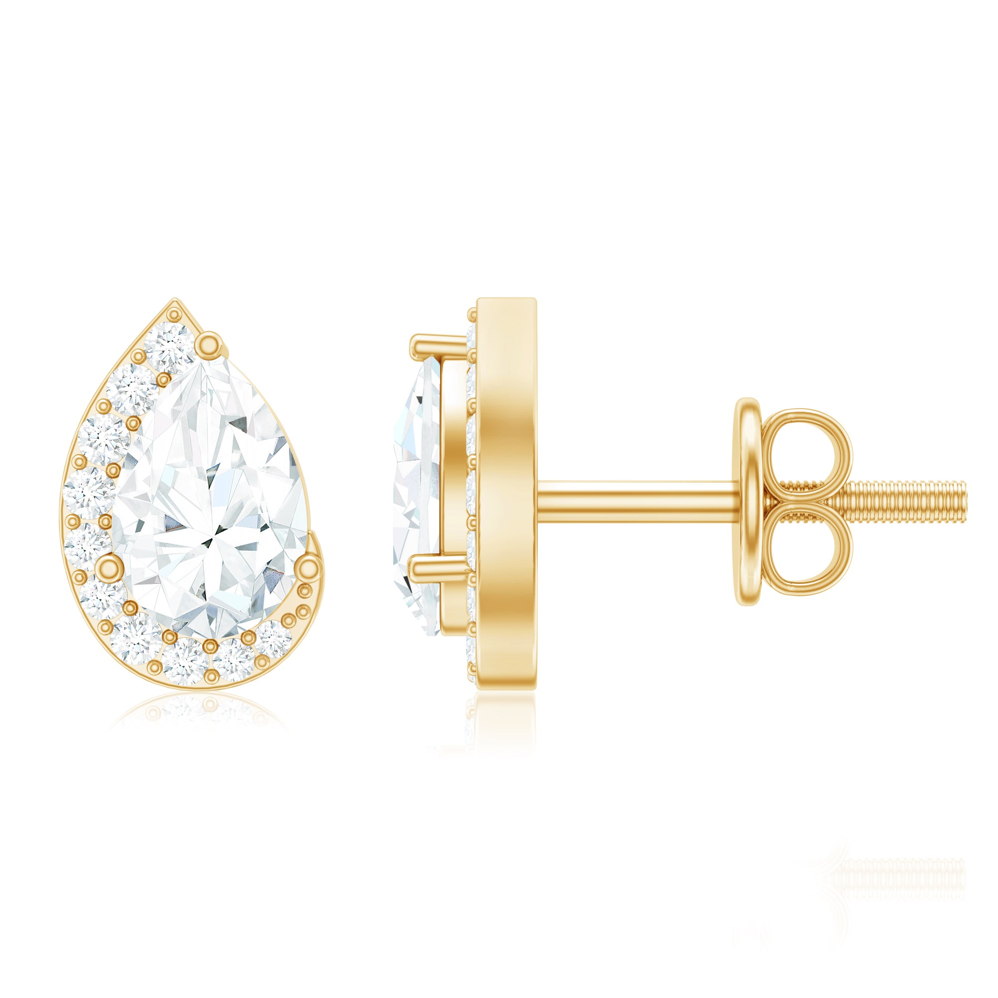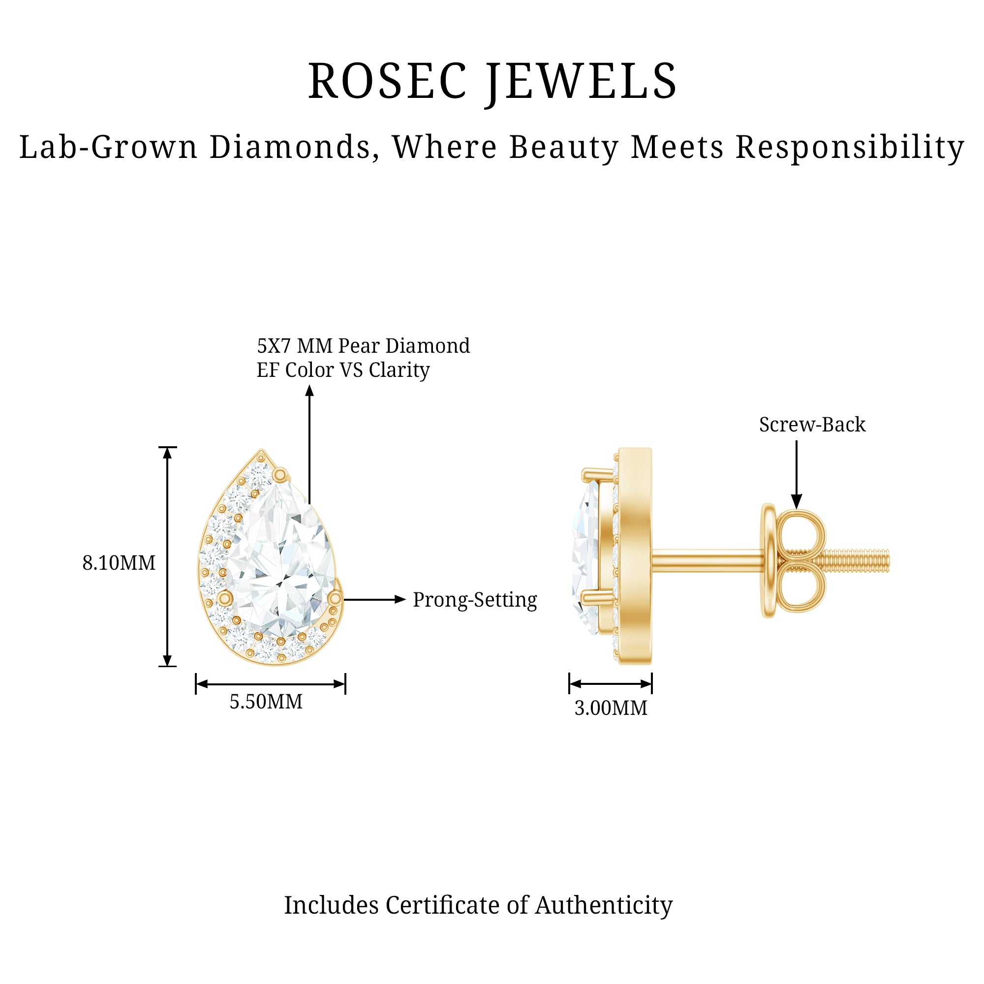 Leave a lasting impression by presenting her with these exquisite teardrop stud earrings. The focal point of these elegant earrings is a radiant pear-cut Lab Grown Diamond, encircled by a captivating semi halo of Lab Grown Diamonds, all securely held in place by delicate prong setting. Give her a gift that will hold a special place in her heart, making it skip a beat each time she adorns these breathtaking studs.