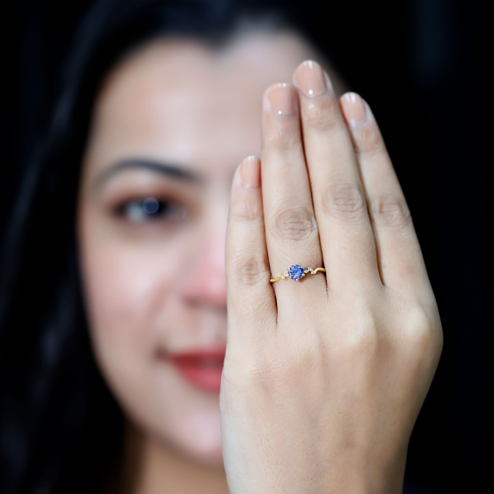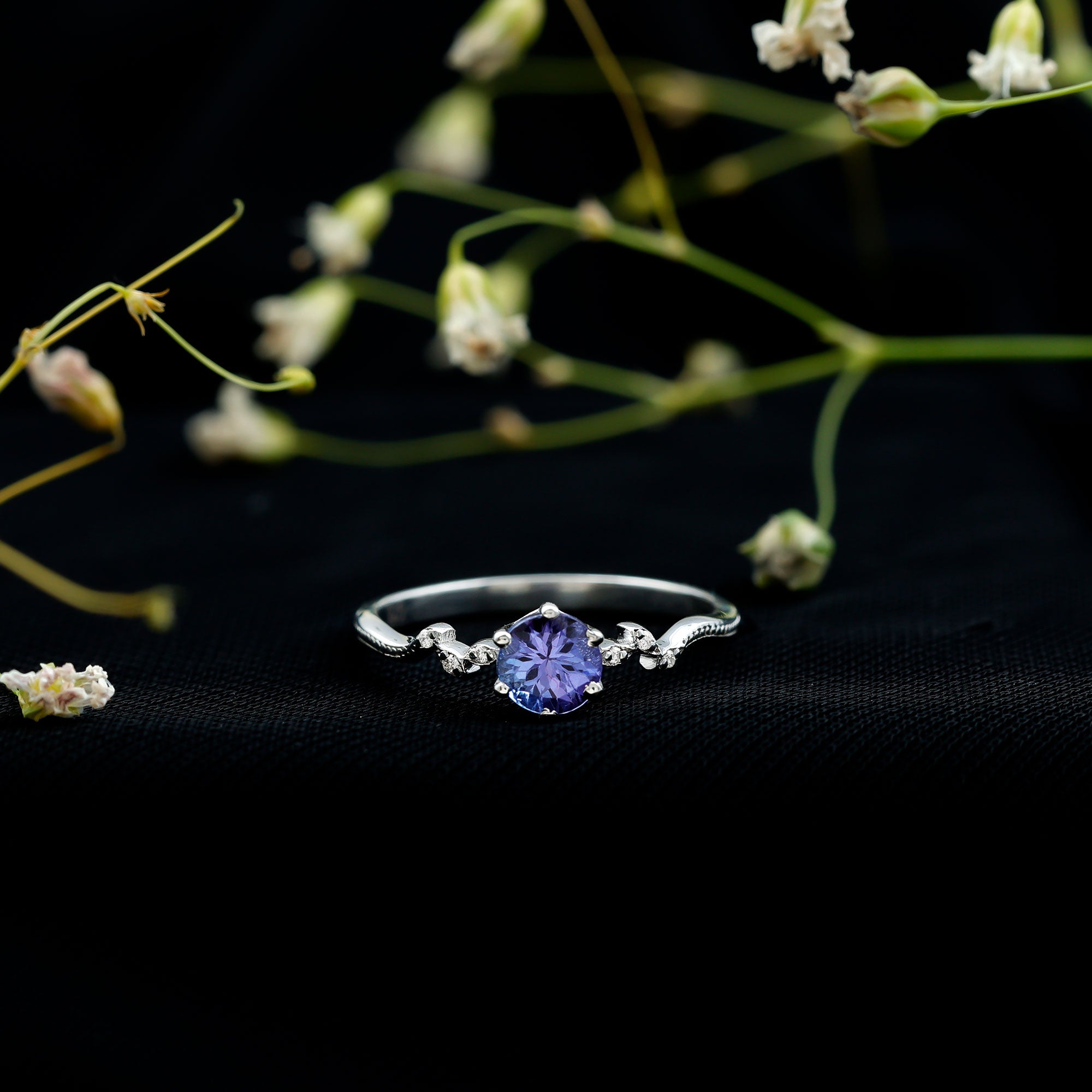 Embrace the beauty of nature with this Promise Ring, adorned with a captivating Tanzanite and Diamond gemstones, a symbol of love and natural grace.