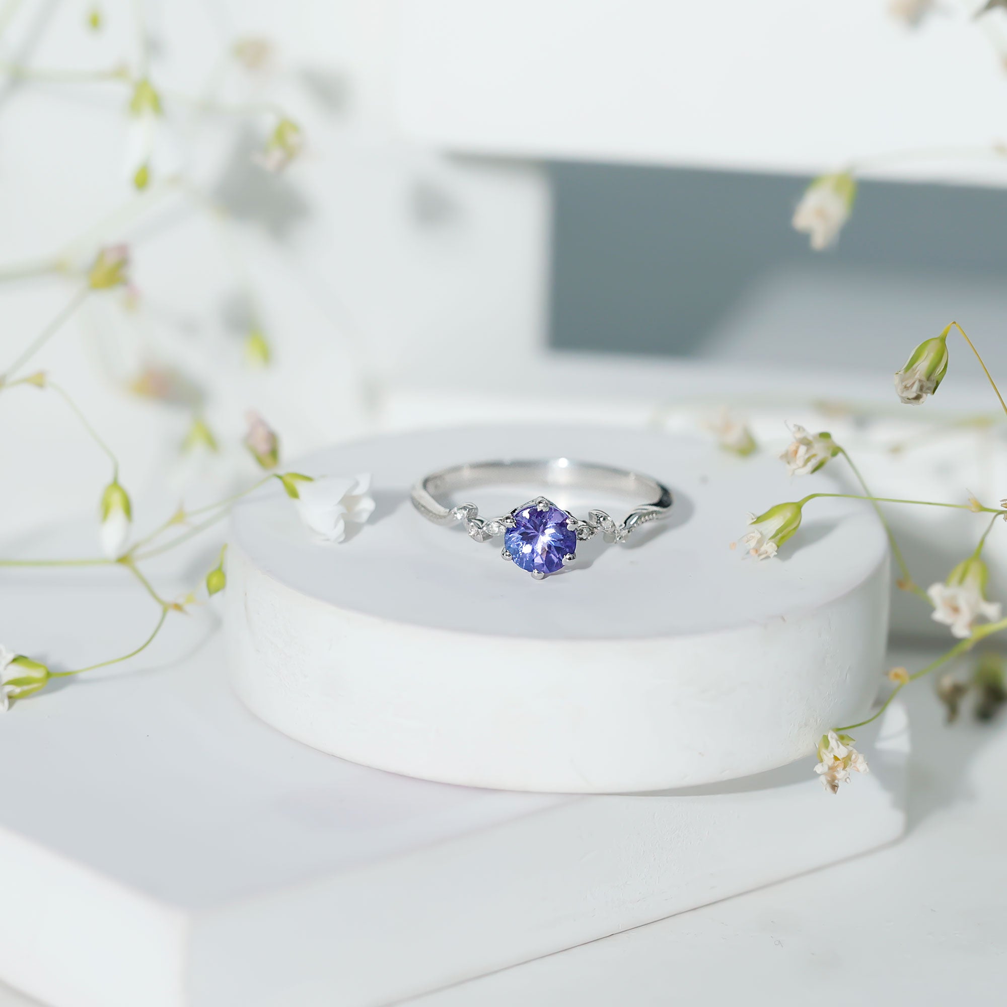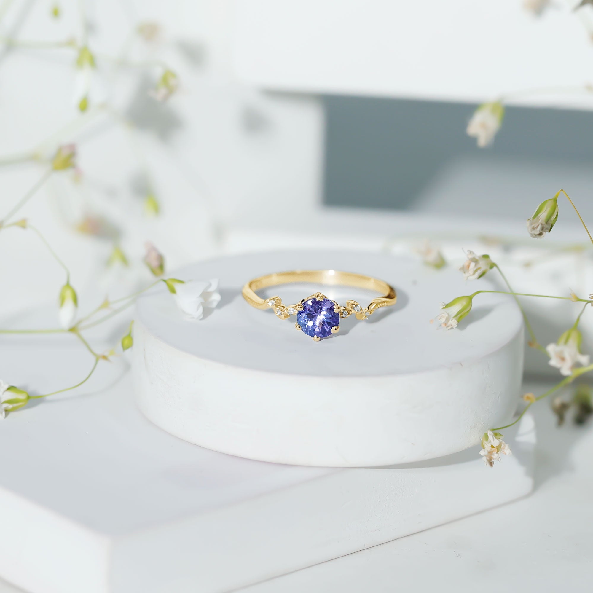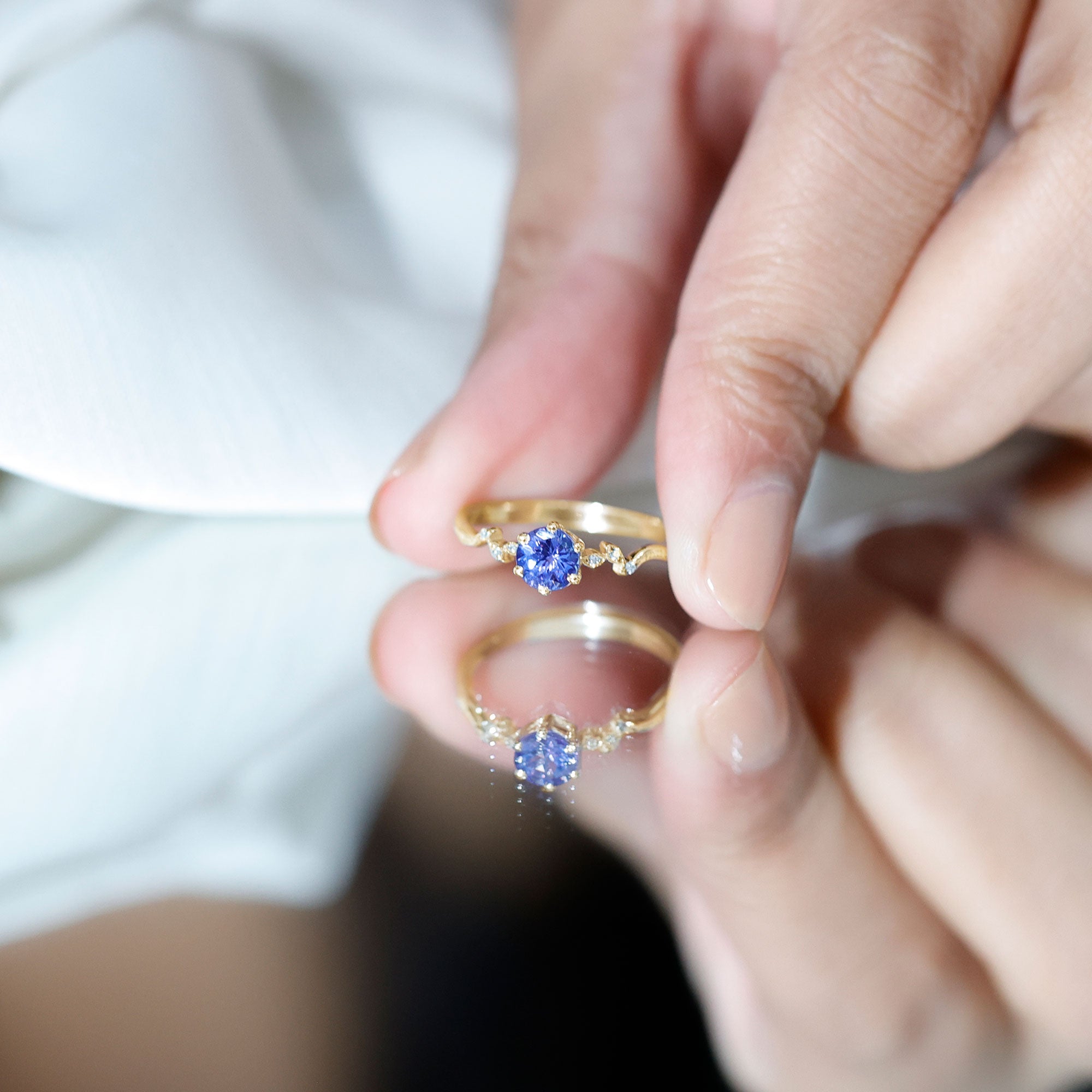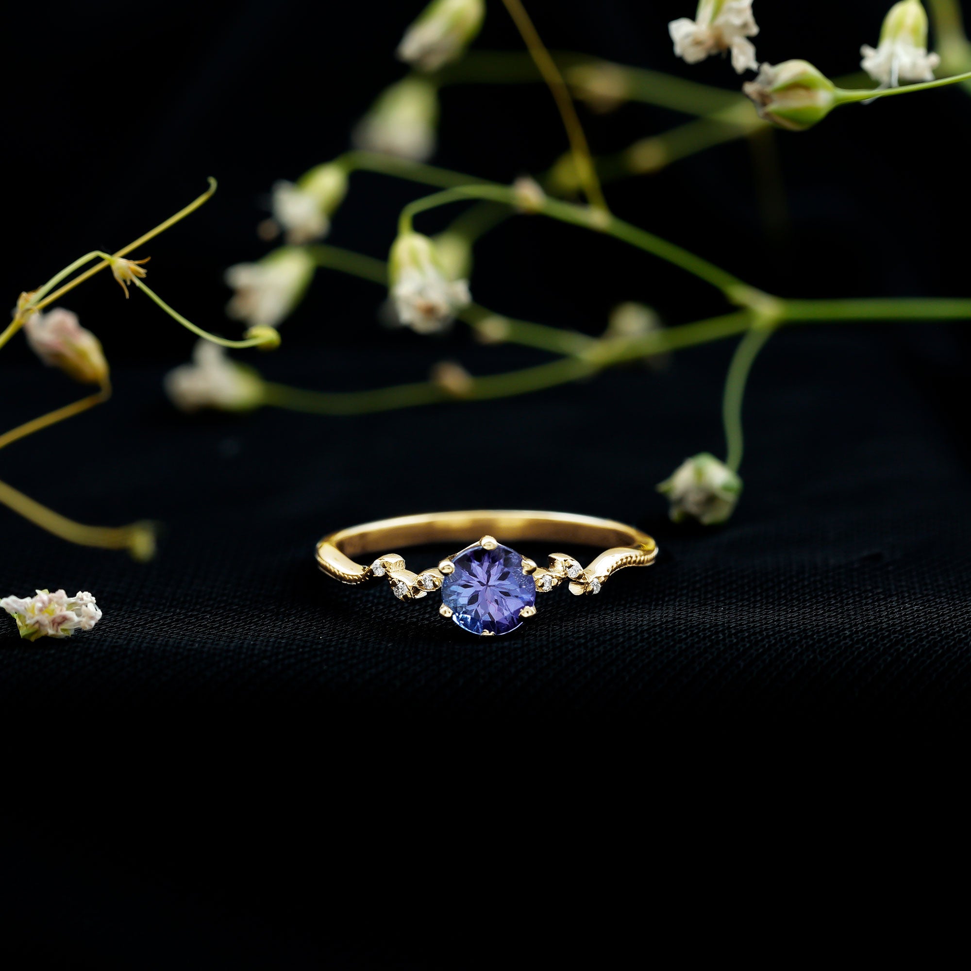 Minimal Leaf Promise Ring with Tanzanite and Diamond