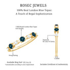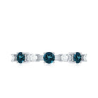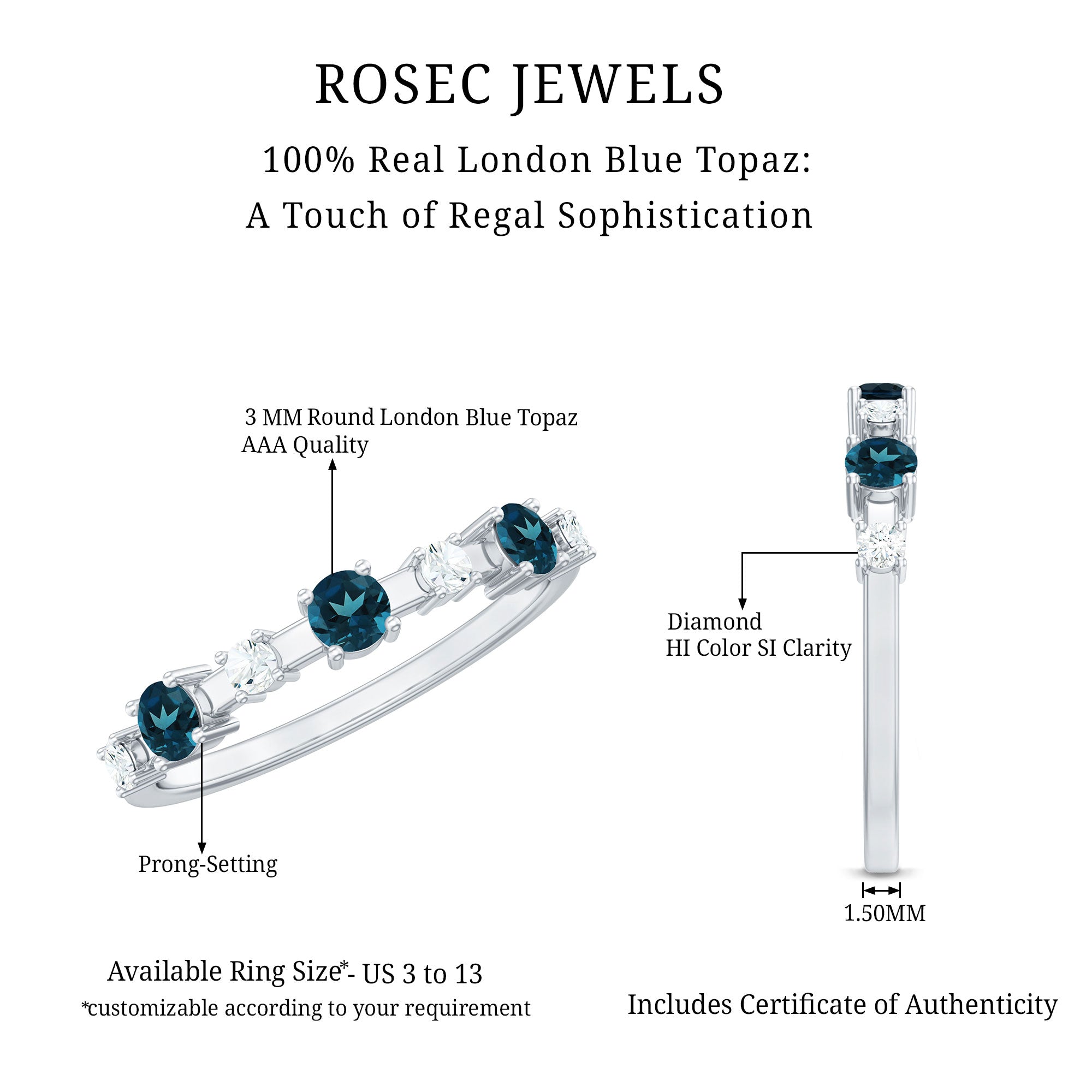 Present her with a gift that embodies both elegance and emotion. Crafted for significant occasions or simply to express your affection, this London Blue Topaz Eternity Ring adds a sophisticated element to any jewelry collection. The design showcases round shaped London Blue Topaz stones alongside round shape diamonds, resulting in a striking contrast between dark and light. The alternating arrangement enhances visual appeal and imparts a contemporary vibe, while the secure prong setting ensures that each stone remains firmly in place for enduring wear. Ideal for stacking or wearing solo, the half eternity design provides a graceful appearance that is both captivating and timeless. Whether she favors a minimalist aesthetic or enjoys combining different styles, this Half Eternity Stacking Ring seamlessly adapts to her individual preferences. Meticulously crafted with a focus on quality, using AAA grade london blue topaz and HI-SI grade diamonds, it is designed for durability and comfort throughout the day. Available in US sizes 3 to 13, locating the perfect size is straightforward. This Blue Topaz and Diamond Band is presented in a sophisticated jewelry box, making it a considerate gift that is ready to be given for birthdays, anniversaries, or simply to show you care.