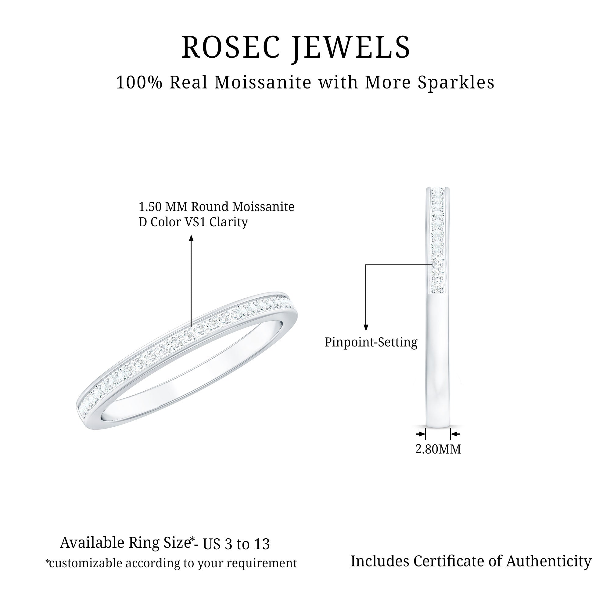 This Moissanite Wedding Band combines timeless elegance with a modern sparkle, featuring a Half Eternity Band that exudes love, style, and brilliance. It is adorned with D-VS1 Quality Moissanite stones set in Pin Point Setting, providing a subtle shimmer that brings just the right amount of dazzle for both everyday luxury and special occasions. The half eternity design is perfect for daily wear, stacking beautifully with your engagement ring, or celebrating a significant milestone. Designed for comfort and enduring beauty, this Minimalist Moissanite Eternity Band comes in US standard sizes from 3 to 13, ensuring a perfect fit for every love story. Packaged in a beautifully designed signature jewelry box, this Eternity Wedding Ring is ready to be gifted and treasured forever. Elegant, timeless, and ethically produced, this Moissanite Stackable Ring is more than just an accessory, it is a sparkling promise that shines with intention. Let your love radiate through every facet, every moment, every day, with a band ring that truly symbolizes forever.