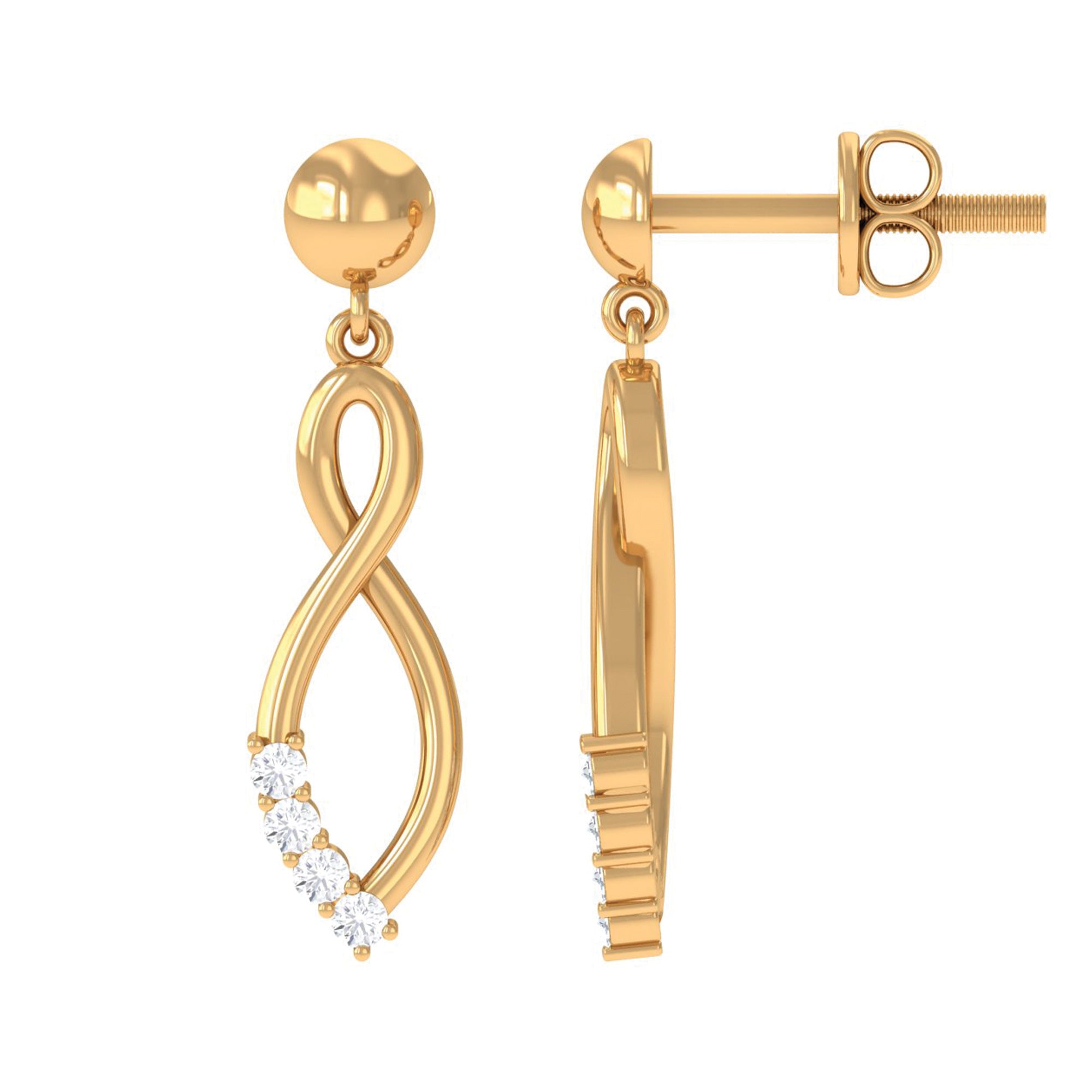 Enchant your ears with these minimal moissanite infinity dangle stud earrings. The earrings features an infinity symbol half encrusted with small sparkling moissanite, making this earpiece more attractive and appealing. The infinity symbol gently dangles from your earlobes, and captures a breathtaking beauty. The prong setting ensures the safety and durability of the stone. These dainty earrings are the perfect balance of elegance and simplicity, making them a versatile addition to any outfit.