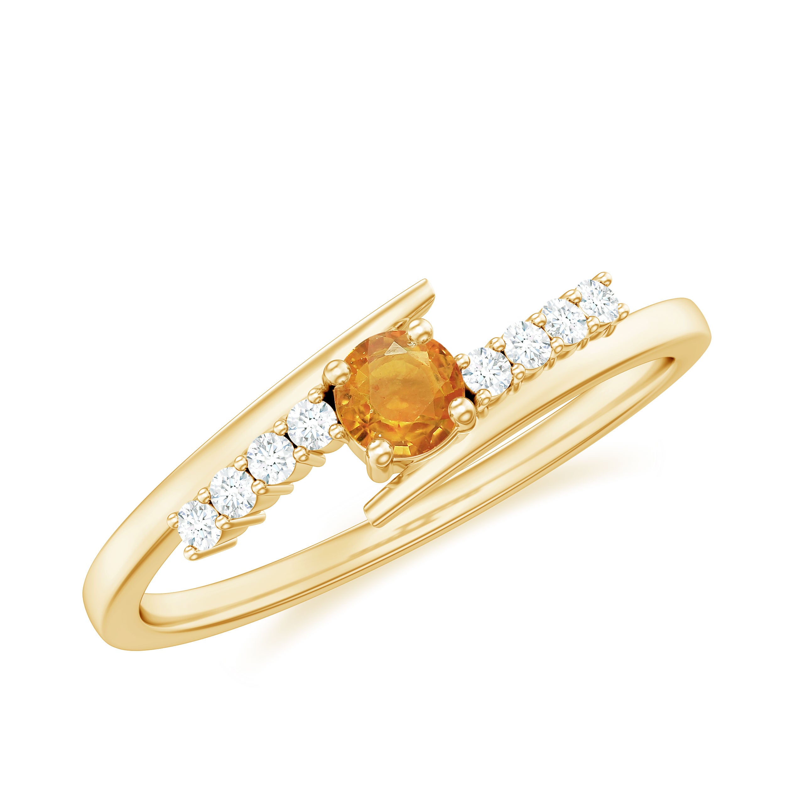 This minimal promise ring for women is a shining and sparkling piece of jewelry. Featuring a round-cut orange sapphire in a prong setting with a Diamond accent, the ring is designed with a bypass shank.
