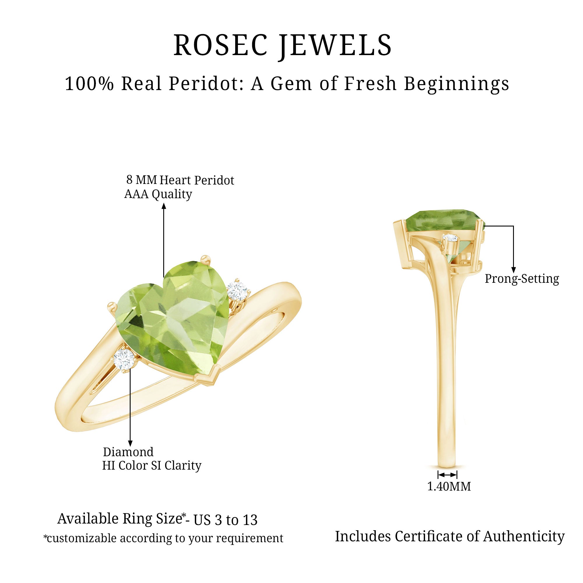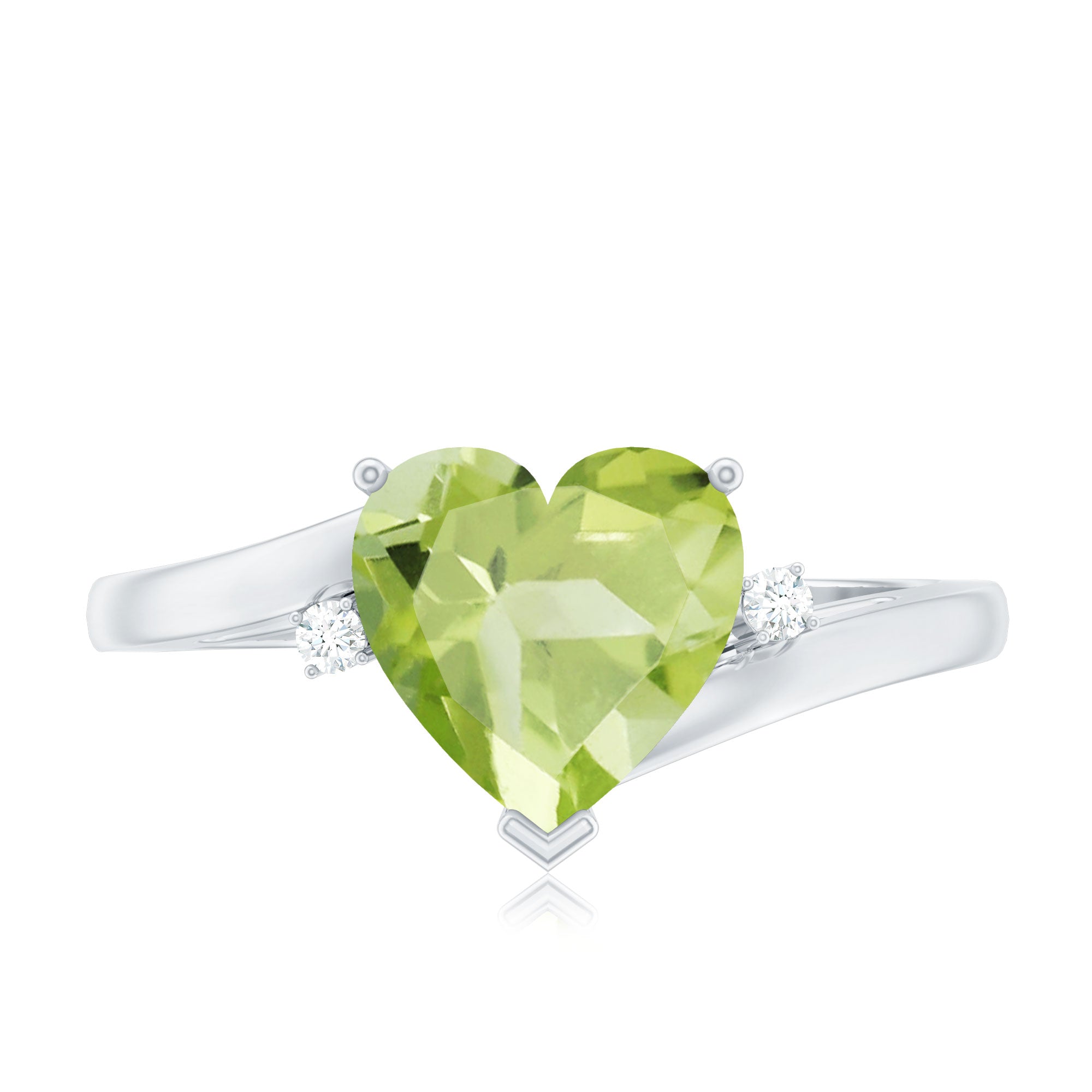 Minimal Peridot Heart Solitaire Promise Ring with Diamond