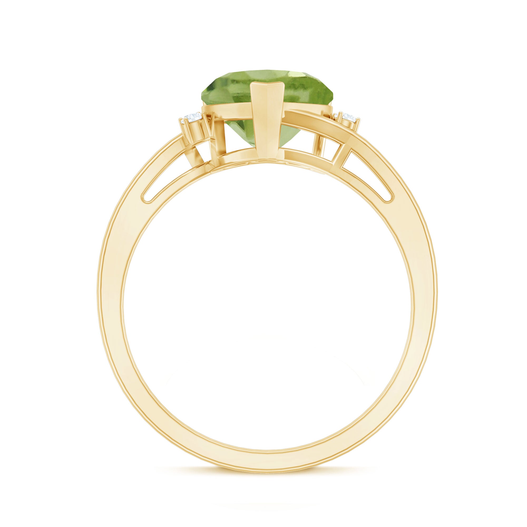 This elegant promise ring features a heart shape Peridot gemstone at its center, complemented by sparkling Diamond on either side. The peridot stone boasts a lovely light green hue and is expertly cut to showcase its beauty. The heart shape of the stone symbolizes love and commitment, making it a perfect choice for a promise ring. The Diamond adds an extra touch of elegance and sparkle to the design. This ring is a timeless piece of jewelry that will be cherished for years to come.