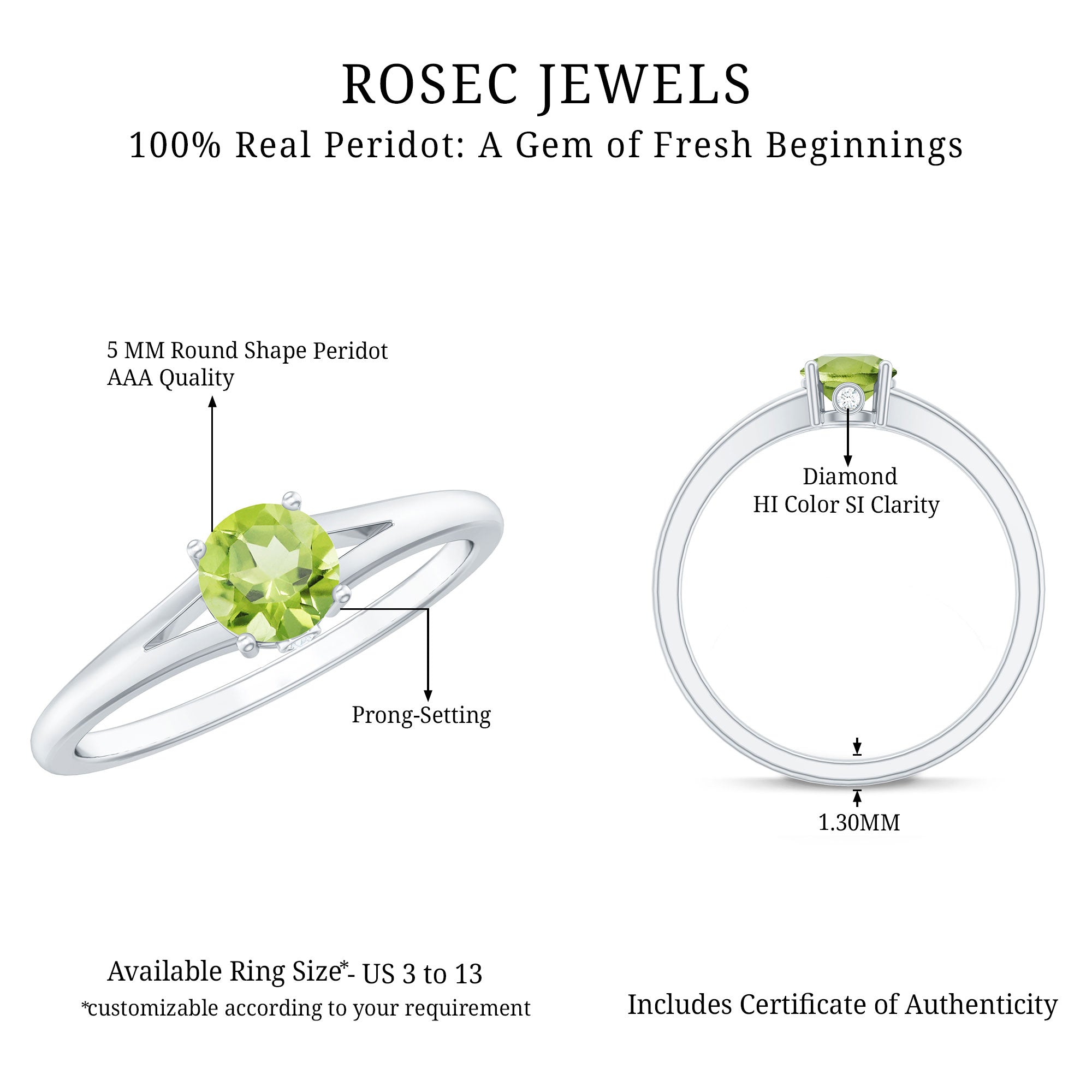 Command the spotlight with this captivating Peridot Solitaire Ring, featuring a dazzling Round Peridot in a sturdy Prong Setting. Its attention-grabbing design showcases a Split Shank, infusing an element of grace and refinement that transcends fashion trends. This enduring creation serves as an emblem of timeless style, destined to be a cherished and fashionable adornment for generations.