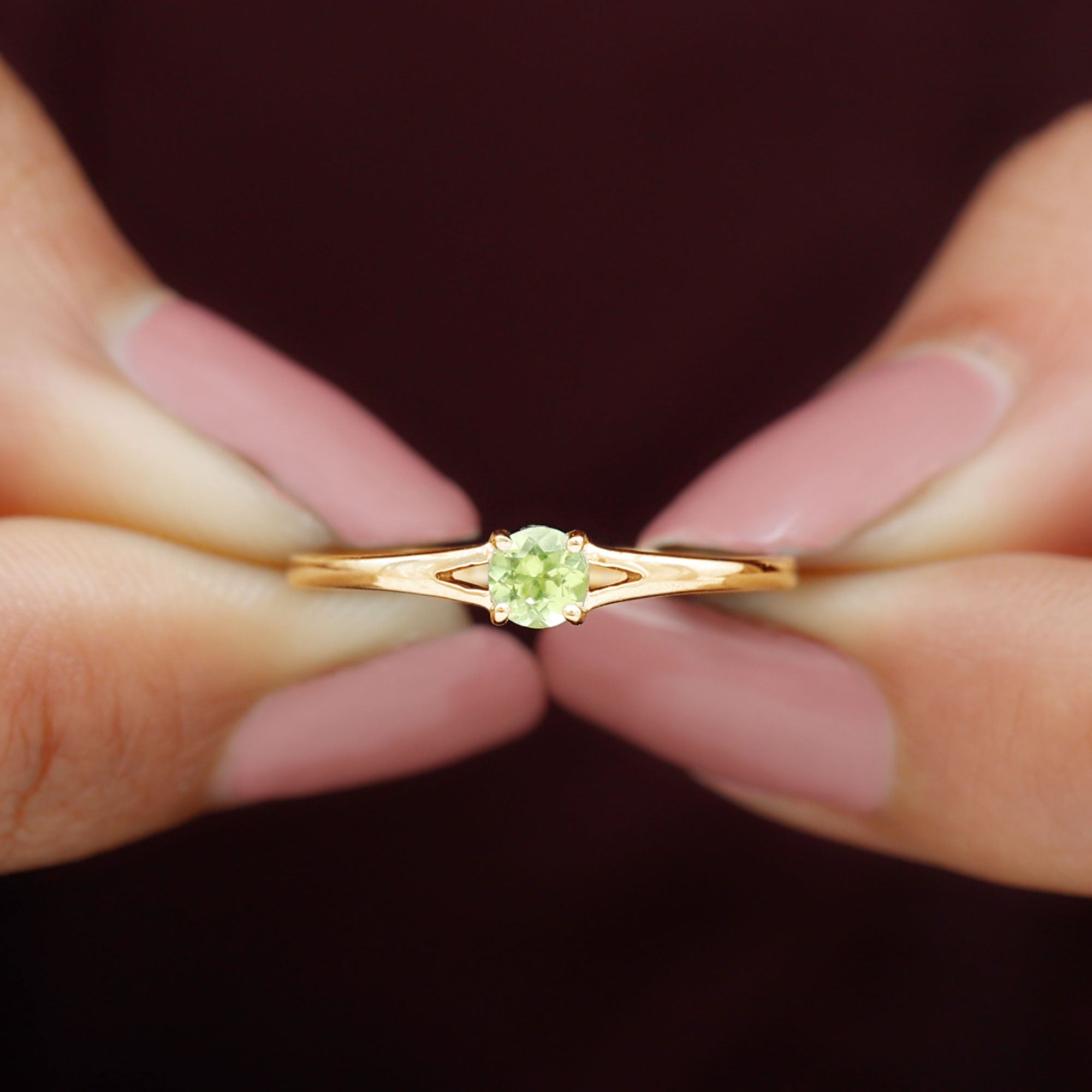 Minimal Peridot Solitaire Promise Ring in Split Shank