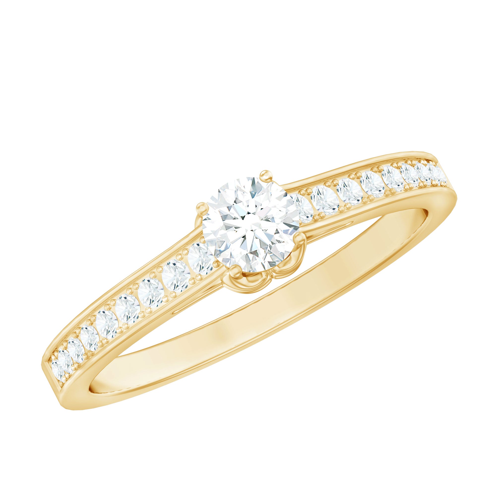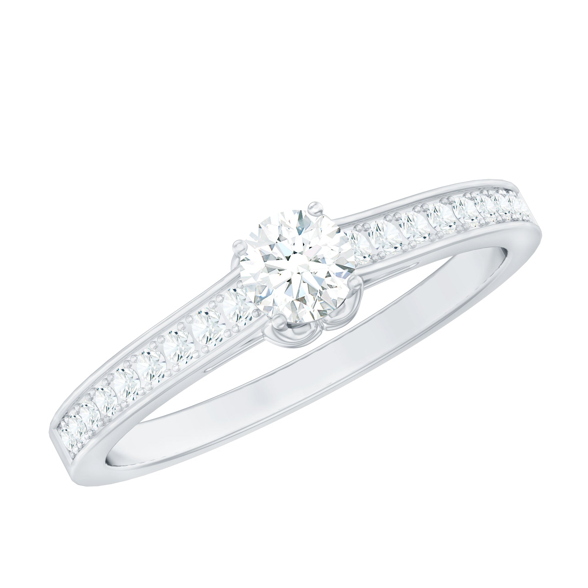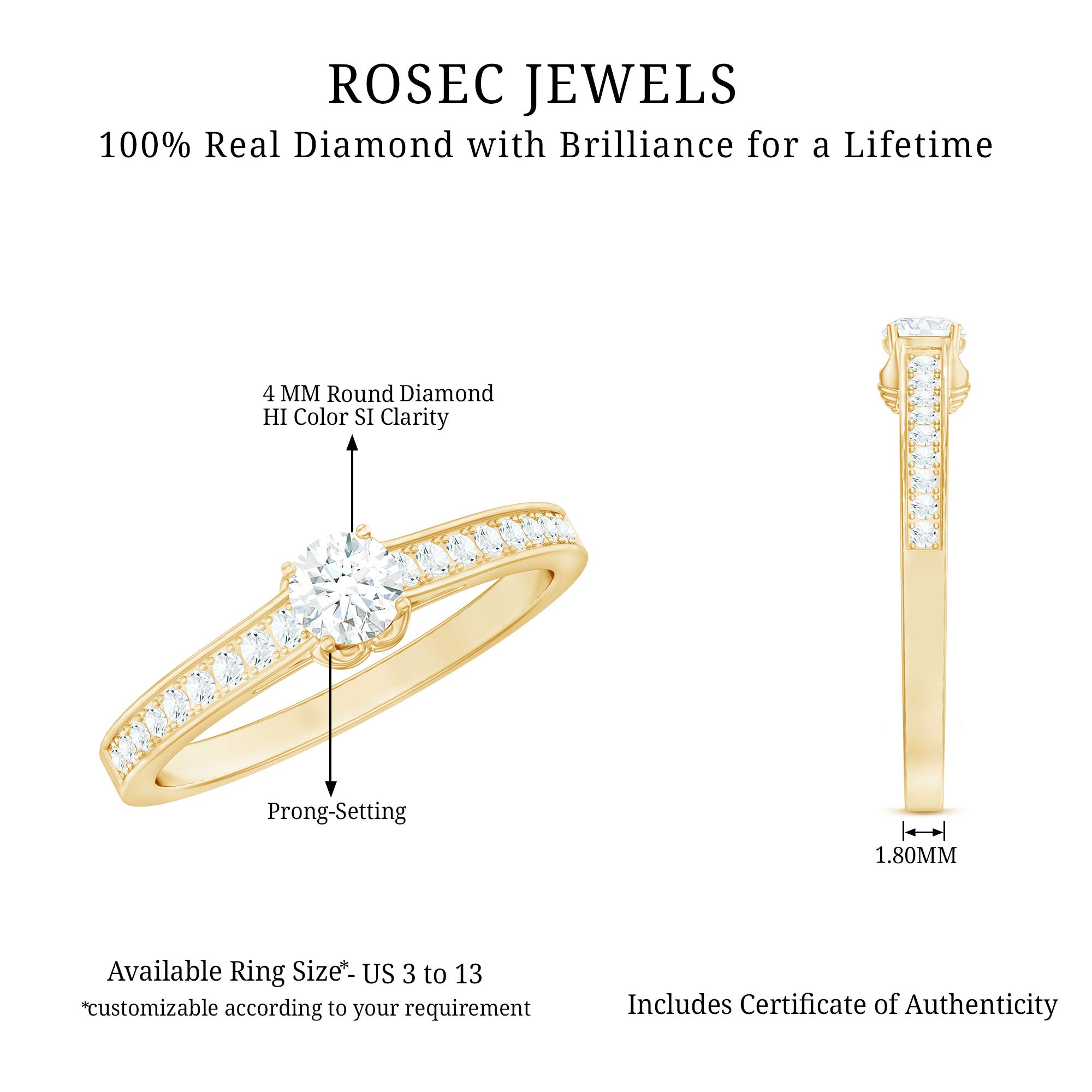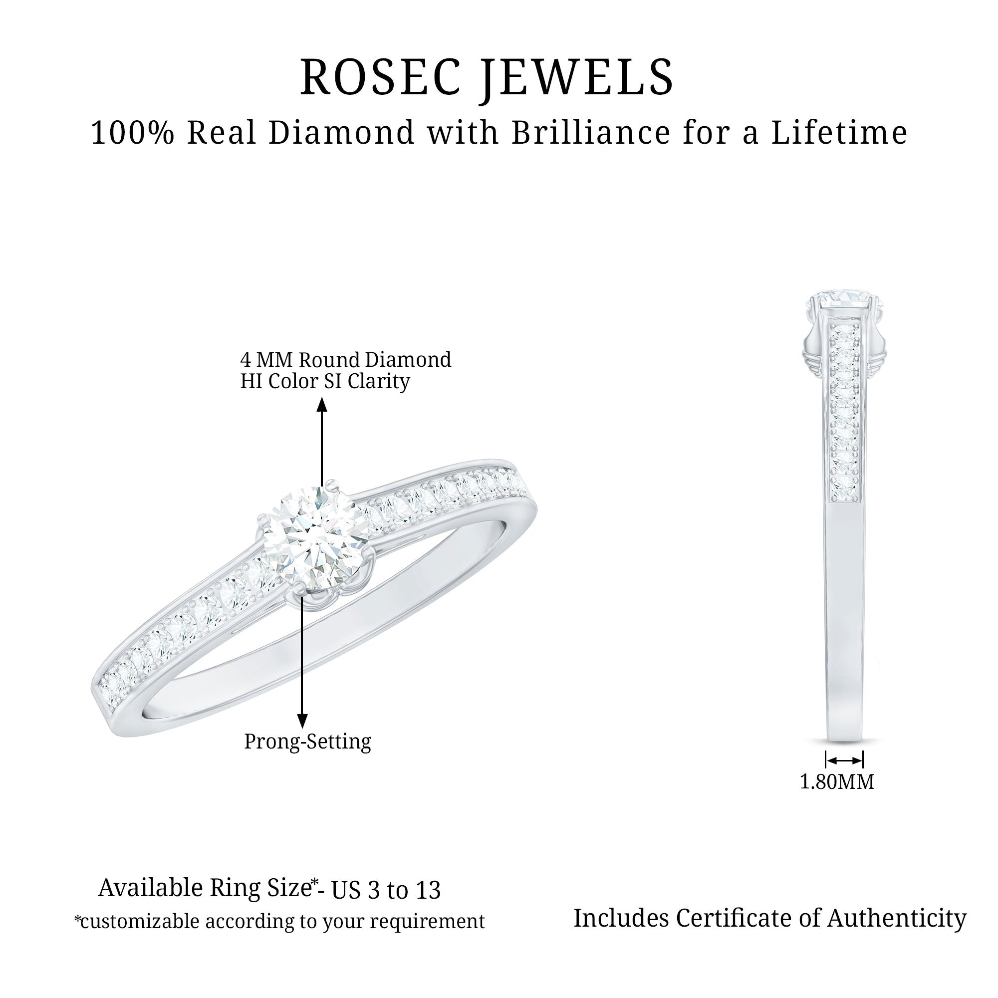 Embrace everlasting love with this Promise Ring for Her featuring a 4 MM round shape Diamond as its focal point, delicately cradled within a secure Prong Setting. The Gemstones brilliance is complemented by additional Diamond stones adorning the sides of the ring. Meticulously crafted from high quality metal, this Minimalist Diamond Ring is a symbol of enduring commitment, destined to astonish and captivate your beloved. Win her heart with a Diamond Proposal Ring that shines just like your love for her. This Solitaire Diamond Ring combines timeless elegance with a contemporary twist, making it an excellent pick for your big day. Plus, when you buy it, you get a quality assurance certificate, and it comes beautifully packaged in a chic, protective box - perfect for gifting or keeping safe when it is not being worn. This Simple Diamond Ring is great for everyday use or as a symbol of commitment for the next chapter in your love story. Available in a range of US ring sizes from 3 to 13, this Diamond Promise Ring for Women is something you will never want to take off.