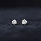 Add a touch of elegance to your everyday look with these minimalist round moissanite stud earrings. This stunning stud earring features a 4 mm round moissanite center stone with screw-back finding. The earring comes in a minimal 3-prong setting. This earring features a simple yet stunning design, with a single sparkling round moissanite. This earring is perfect for any occasion, from everyday wear to special events. They can be dressed up or down, and they are sure to add a touch of sparkle and sophistication to any outfit.