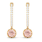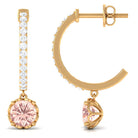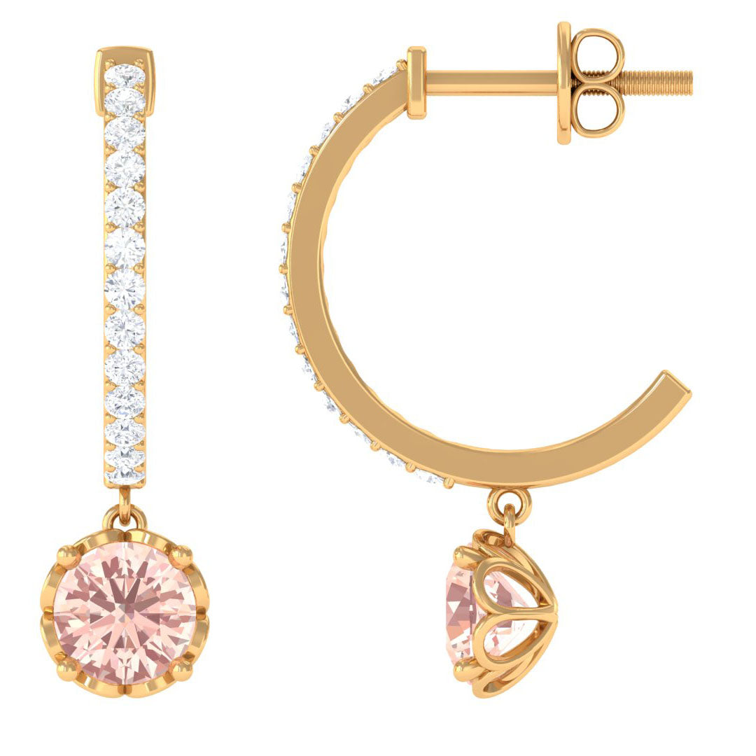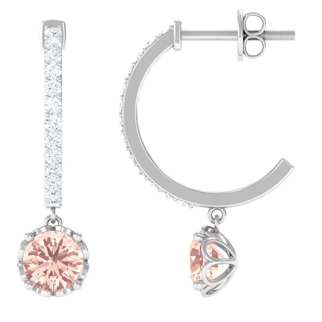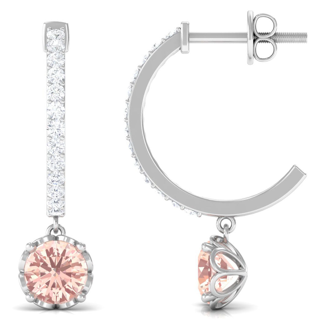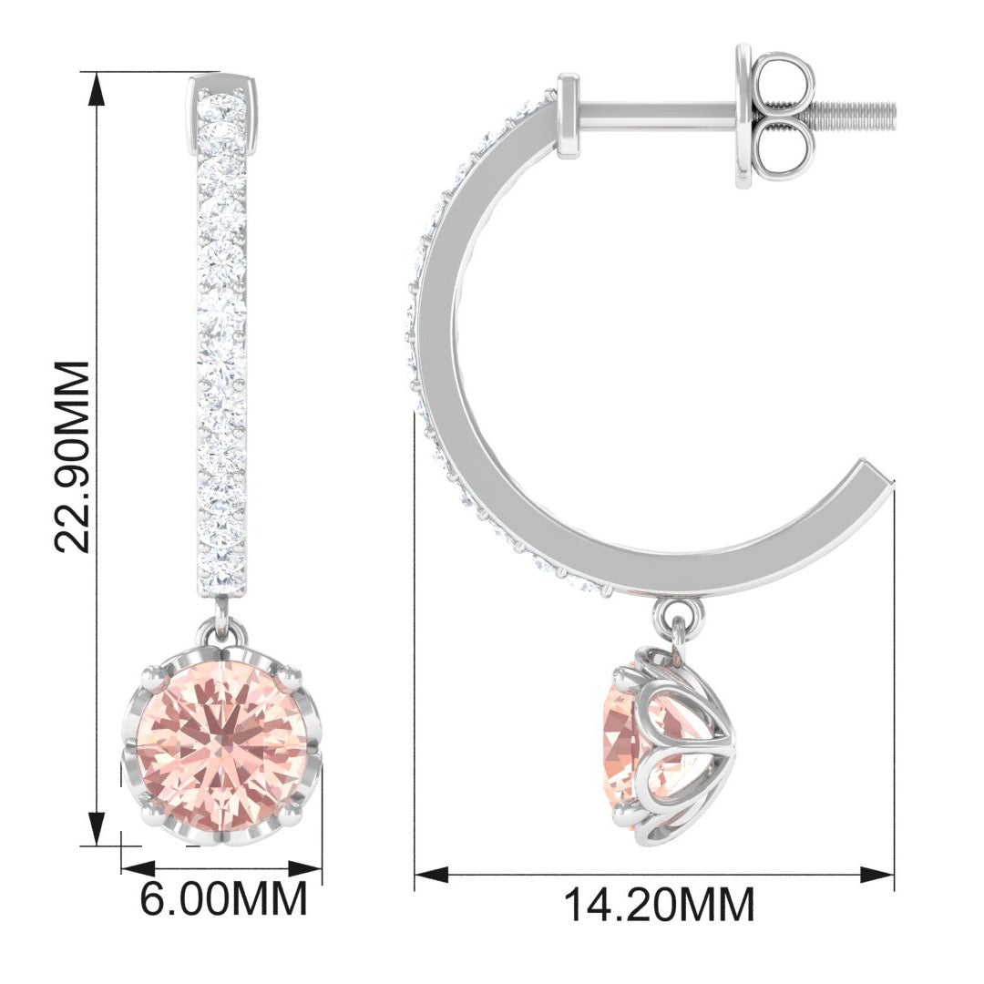 Enhance your elegance effortlessly by adorning these enchanting Morganite Drop Earrings with your special attire. These Hoop Drop Earrings showcase round shape Morganite drops securely held in Prong Setting, while the half hoop is gracefully adorned with shimmering round Diamond in a beautiful Pave Setting. These hoop earrings add a touch of sophistication and mesmerizing allure to your look, eliminating the need for additional accessories.