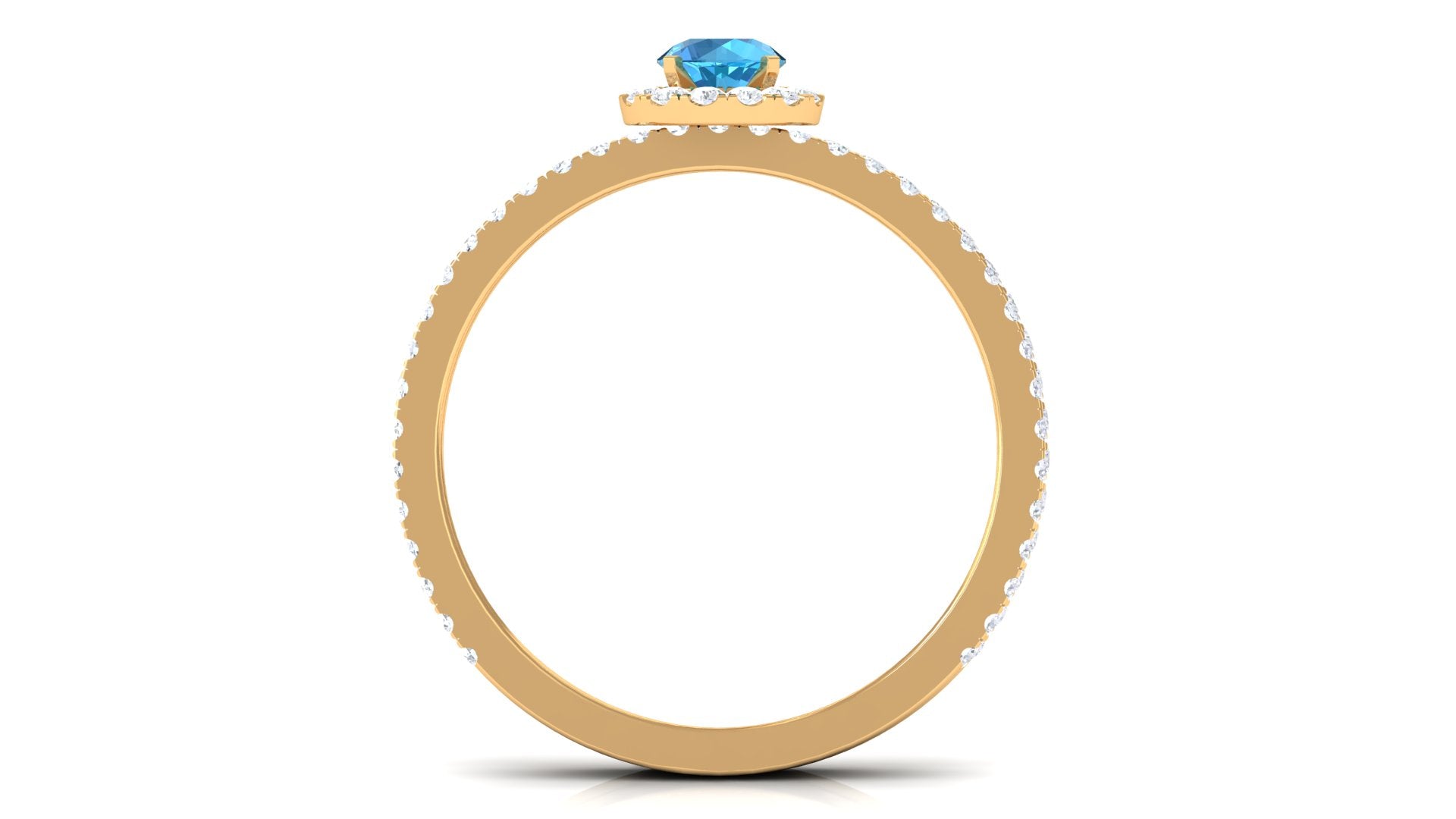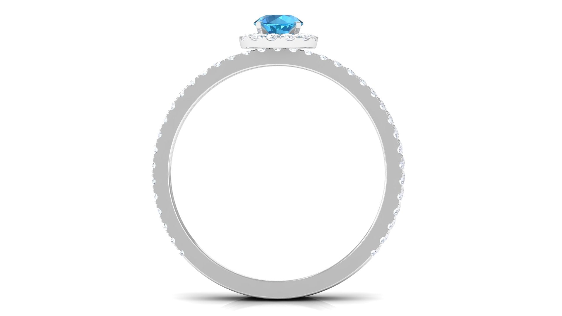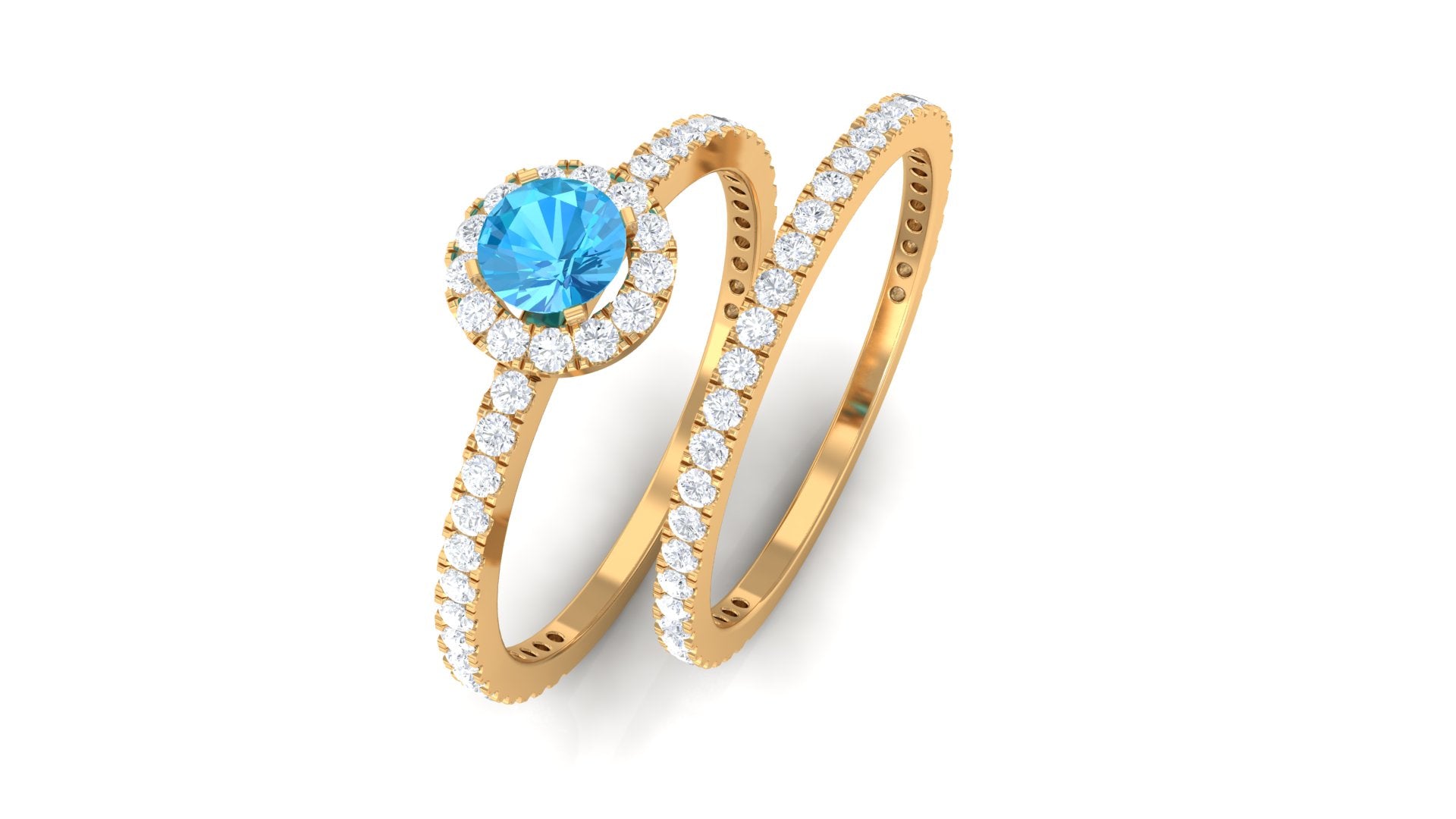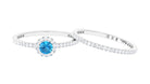 Minimal Round Shape Swiss Blue Topaz Halo Ring Set with Diamond