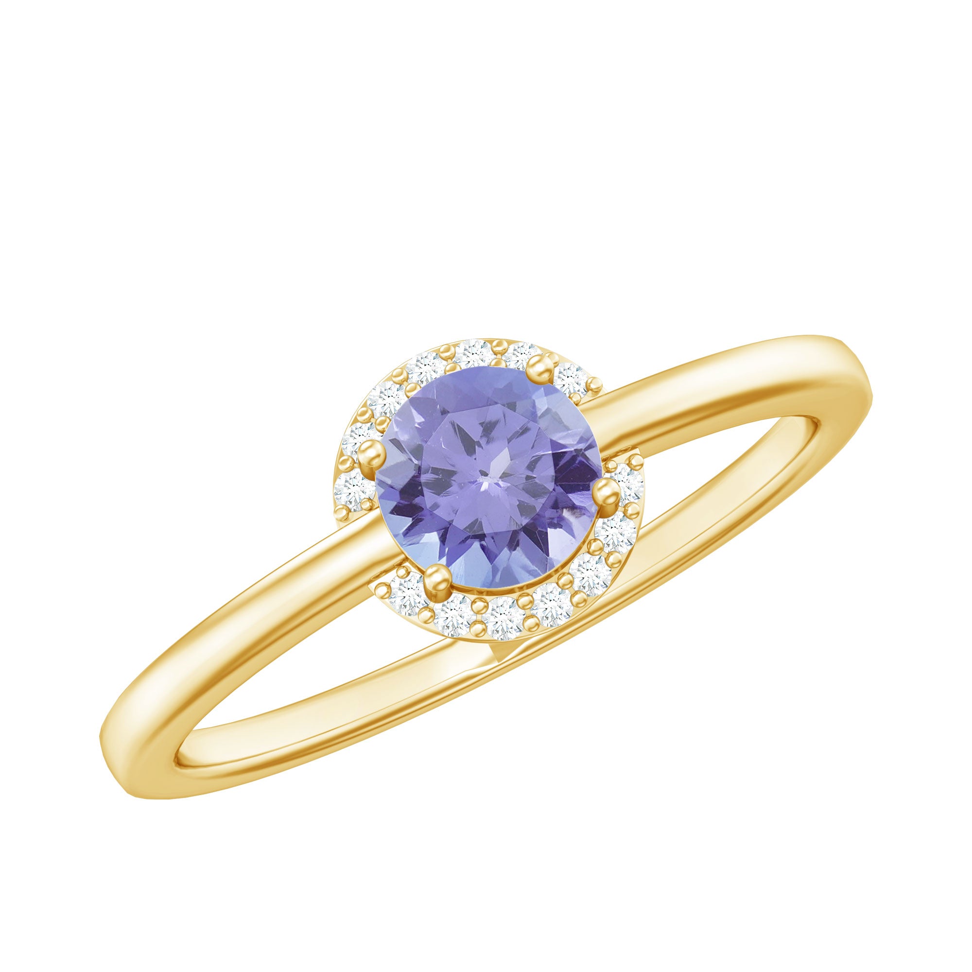 Minimal Round Tanzanite Engagement Ring with Diamond Halo