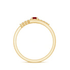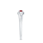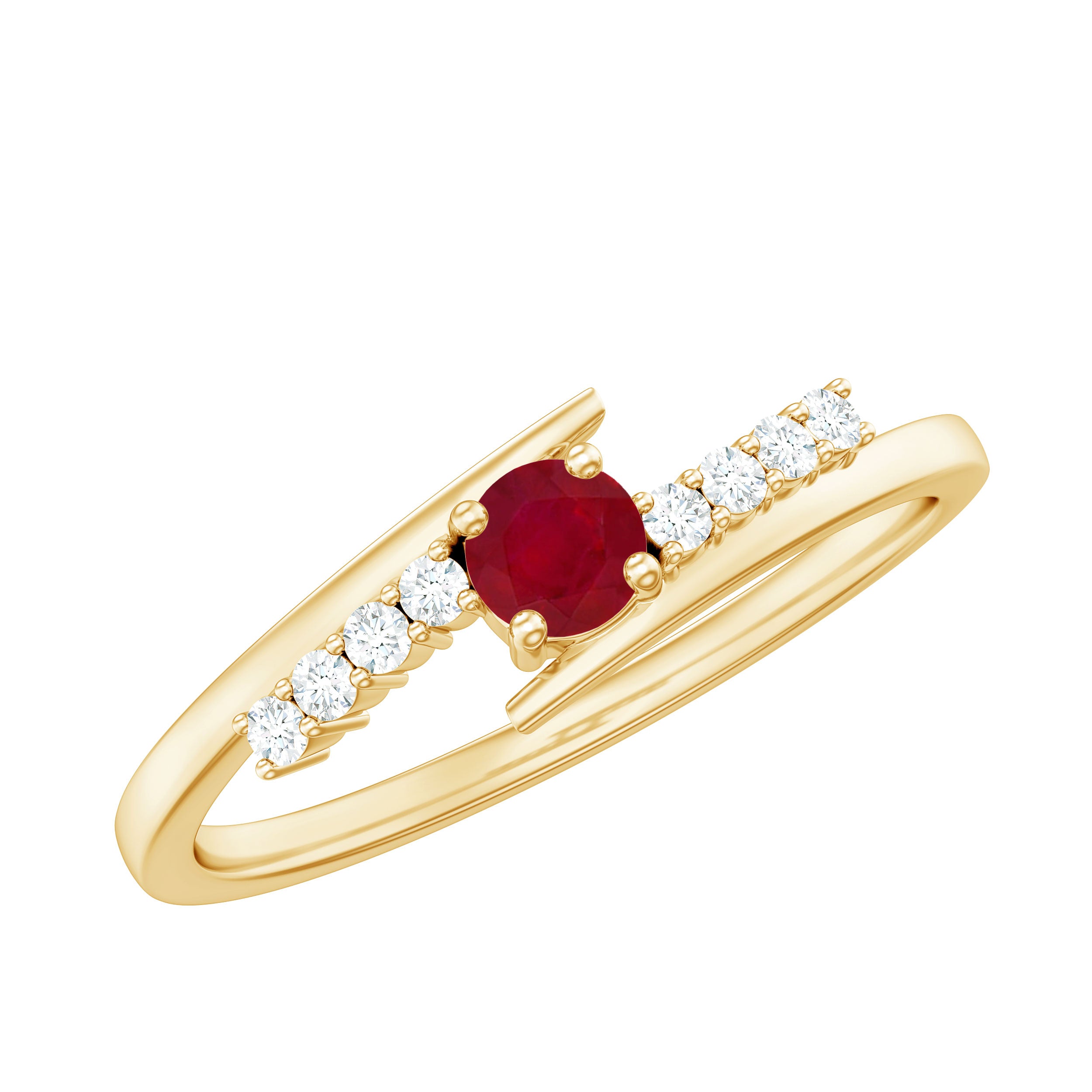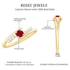 Redefining romantic, this Ruby Promise Ring is something your fashion savvy lady would fall head over heels for! The main highlight of its beauty, 4 MM Round Shape Ruby lends it a red pop of romance, only to be accentuated by side-stones of Round Shape Diamond. Both the stones rest on the Bypass Shank, which sets it apart. Certified for its top notch quality, this Certified Ruby Bypass Ring is minimal enough to fit with all sorts of ensembles.