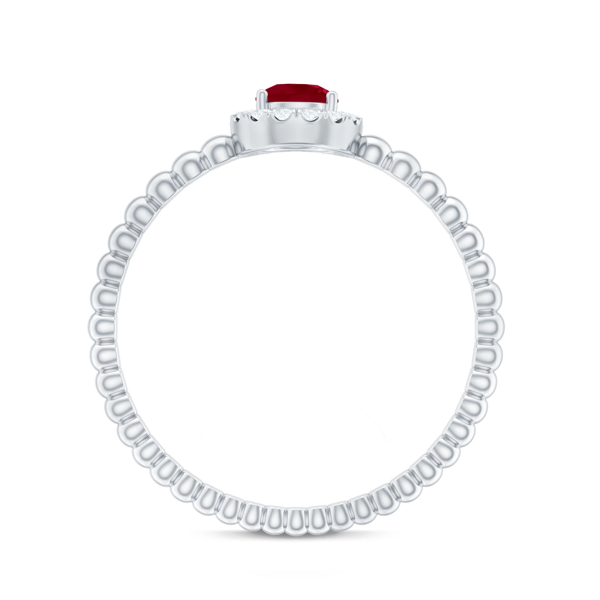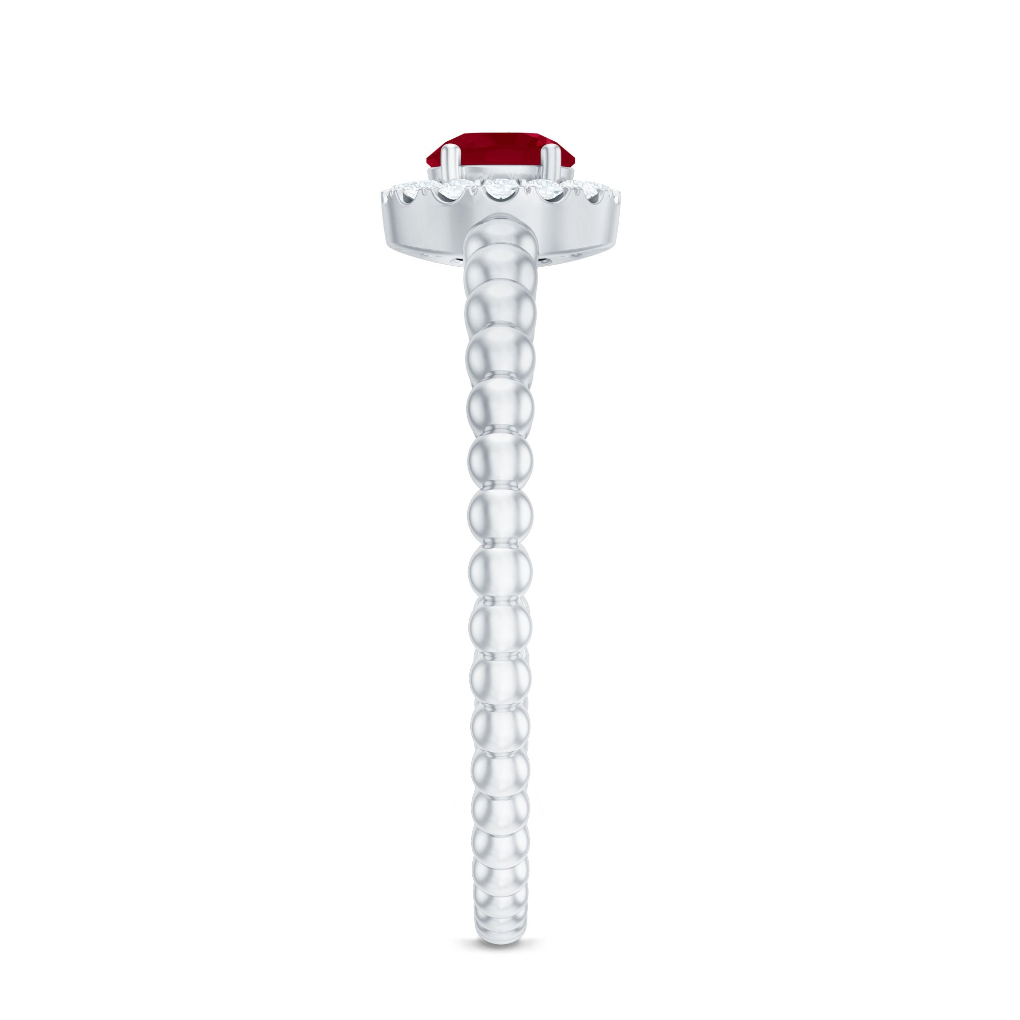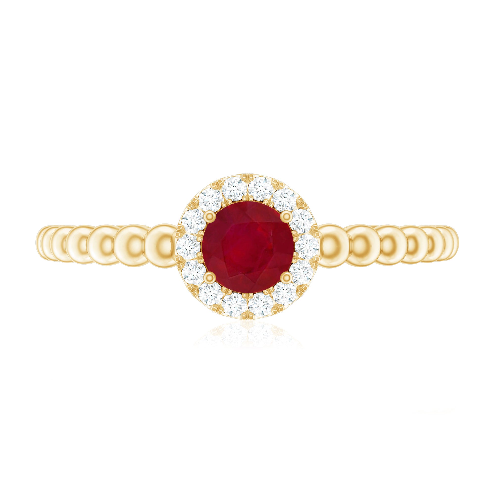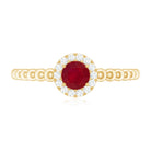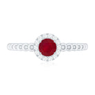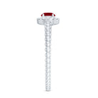 Elevate your promise with this lovely Ruby Promise Ring, where vibrant emotions meet timeless elegance. A Round Shape Ruby set in Prong Setting over the Bubble Shank takes center stage, encircled by a shimmery diamond halo. This Natural Ruby Ring is a testament to the promise of everlasting love, its design symbolizing the journey of two hearts intertwined.