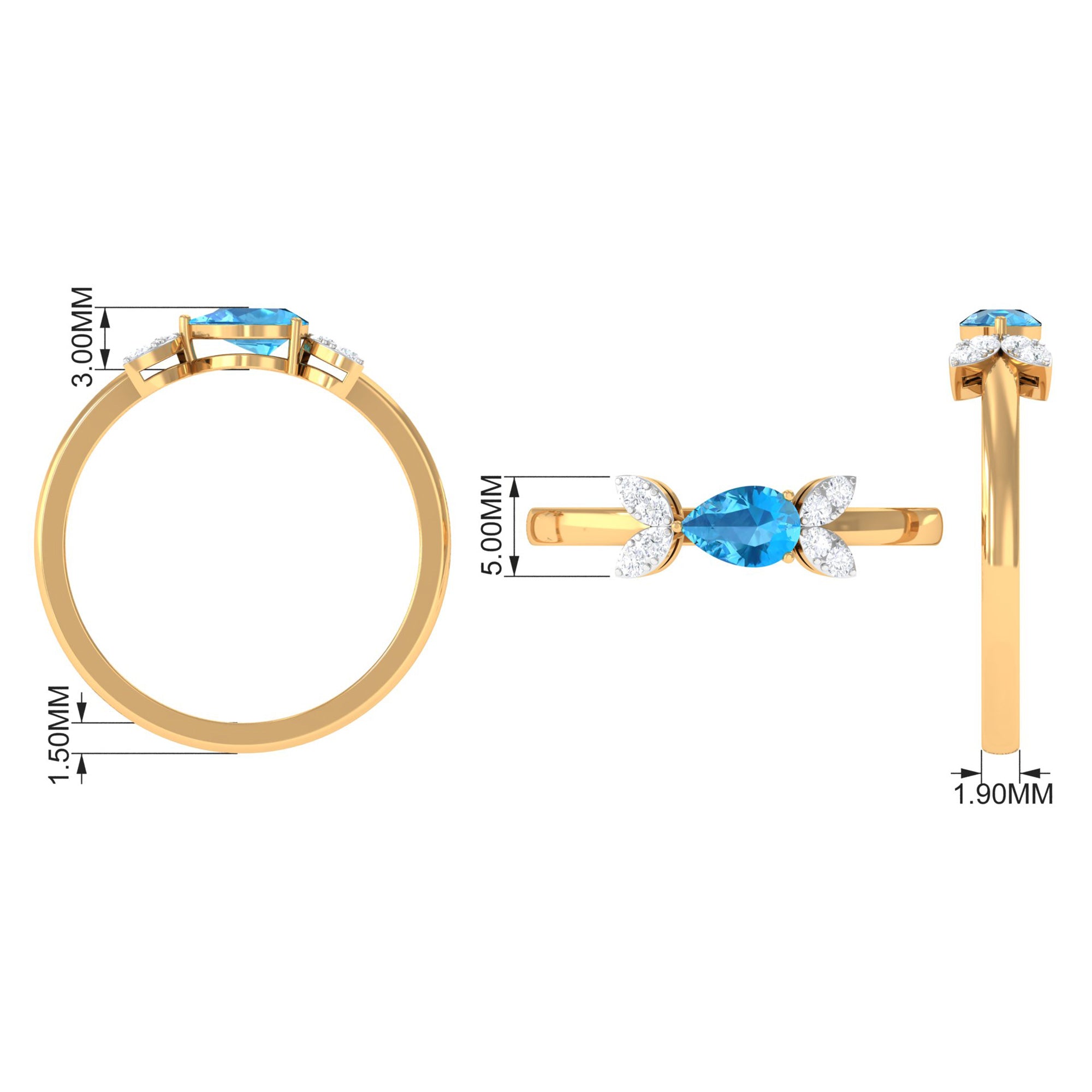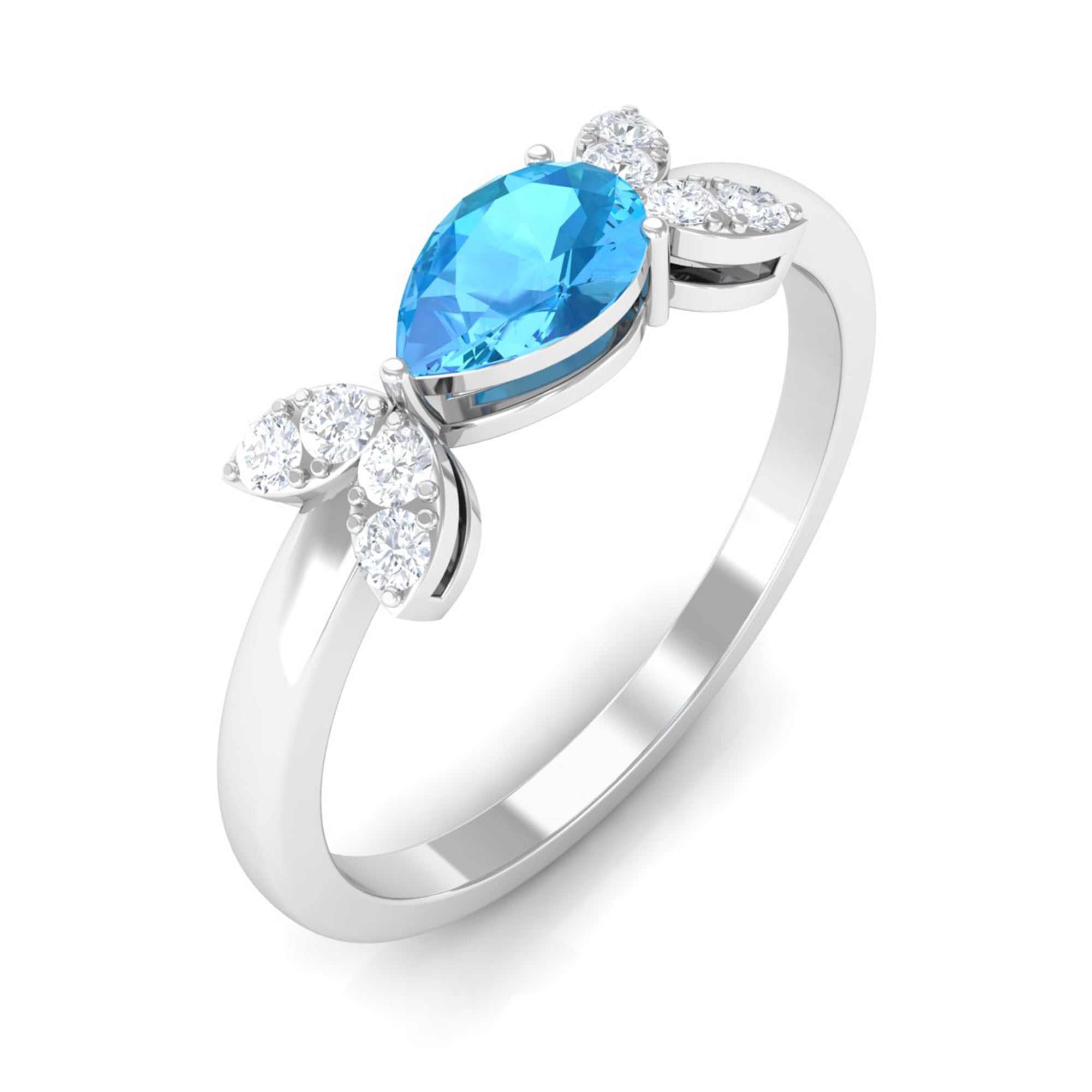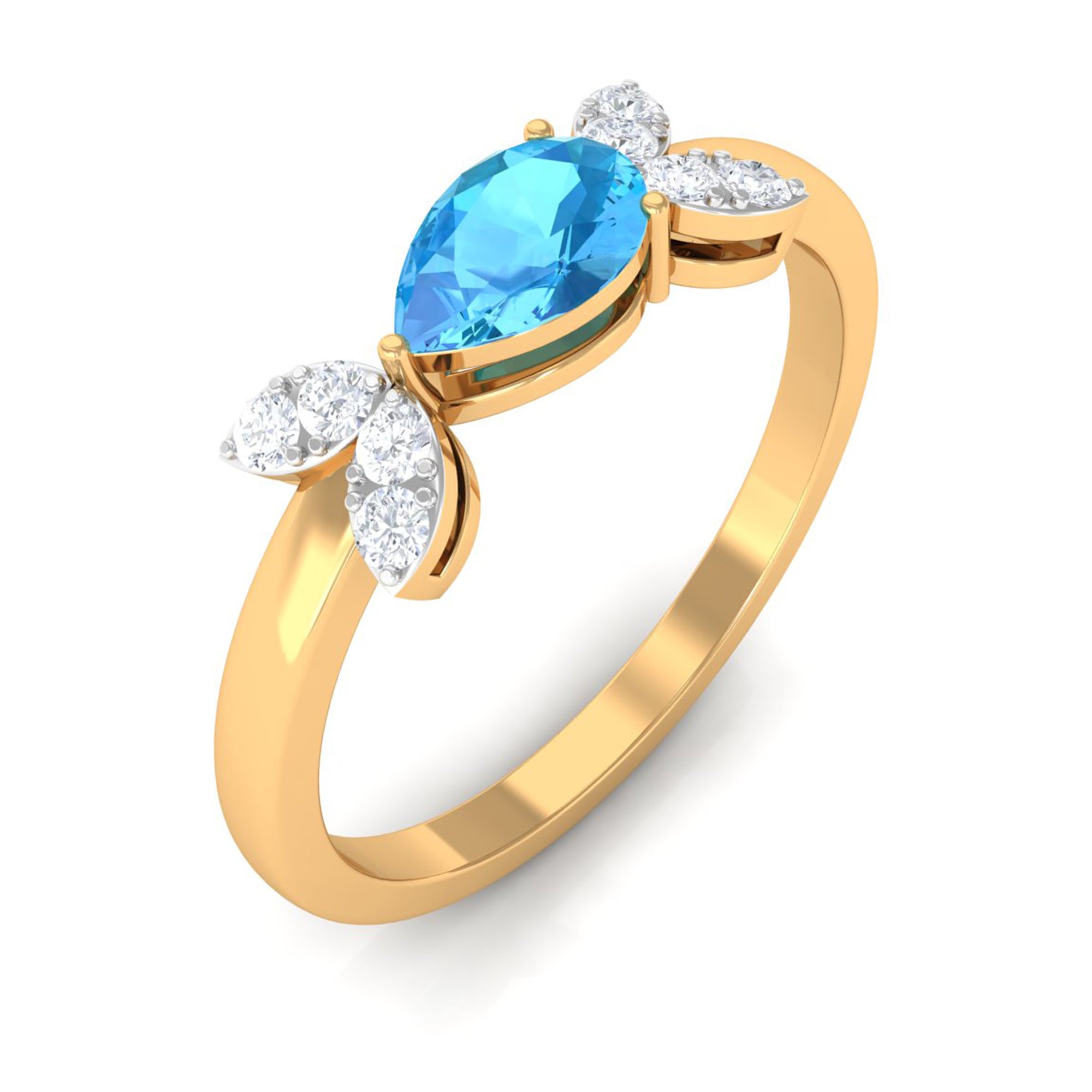 Embrace simplicity with this Minimal Leaf Promise Ring featuring a Pear Shape Swiss blue topaz and Diamond gemstones, a symbol of natural beauty.