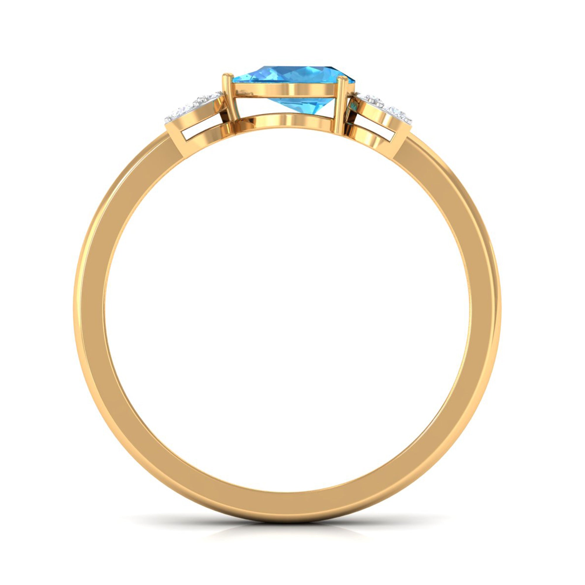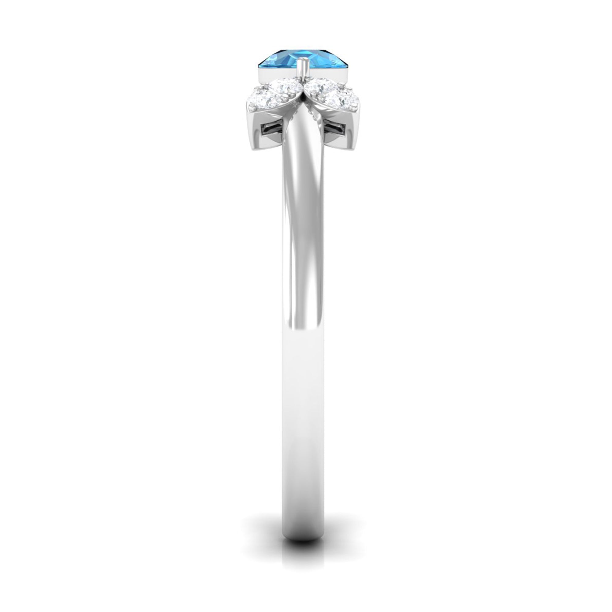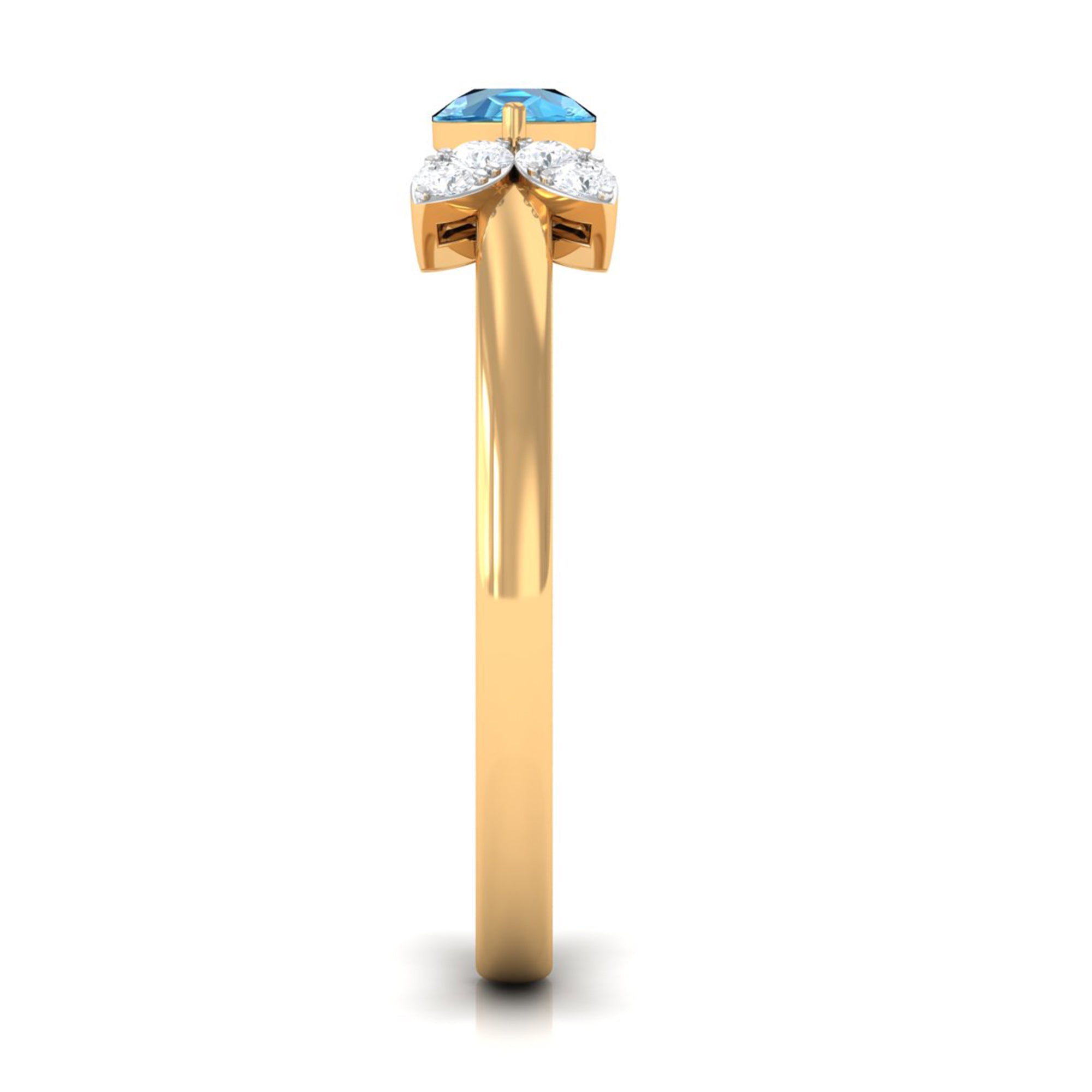 Minimal Swiss Blue Topaz Leaf Promise Ring with Diamond