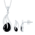 Pear Shaped Black Onyx Necklace and Earrings Set with Moissanite