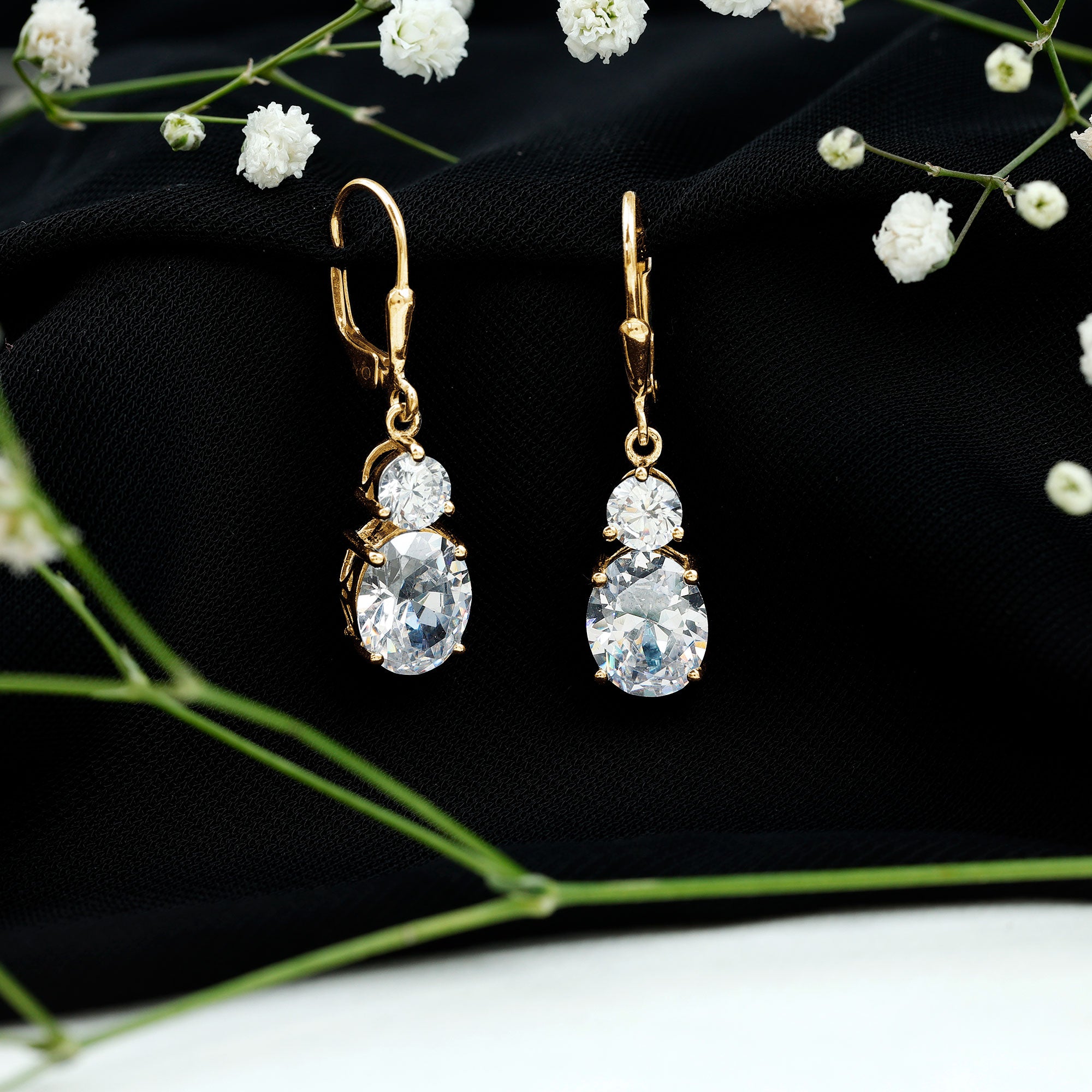 Enhance your style with these exquisite Drop Earrings. The captivating oval and round-cut zircon are beautifully set in a luxurious lever-back design. These stunning earrings are the perfect addition to elevate any outfit, effortlessly adding a touch of glamour.