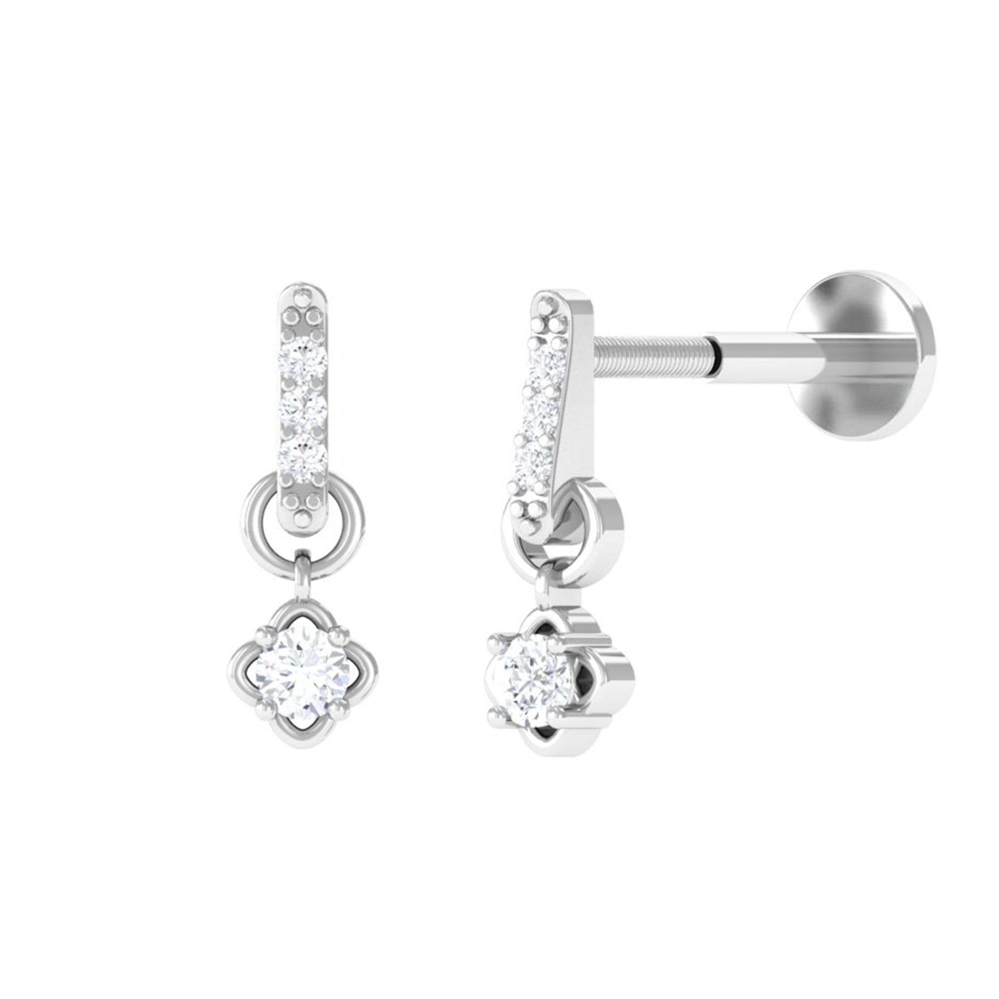 If you want to ace your ear stack piercing look, consider this Diamond Drop Earring IN!Embellished with dainty Round Diamonds studded on the bar design while a Round Diamond secured by 4 Prong Setting hanging as a drop, crafted with Hallmarked Metal. You can simply style this Diamond Earring on your multiple piercings like Helix, Cartilage, Tragus, or Upper Lobe Piercing. This Piercing Earring can be gifted on any special occasion, or why wait for a special occasion? Get this earring for all yourself and shine.