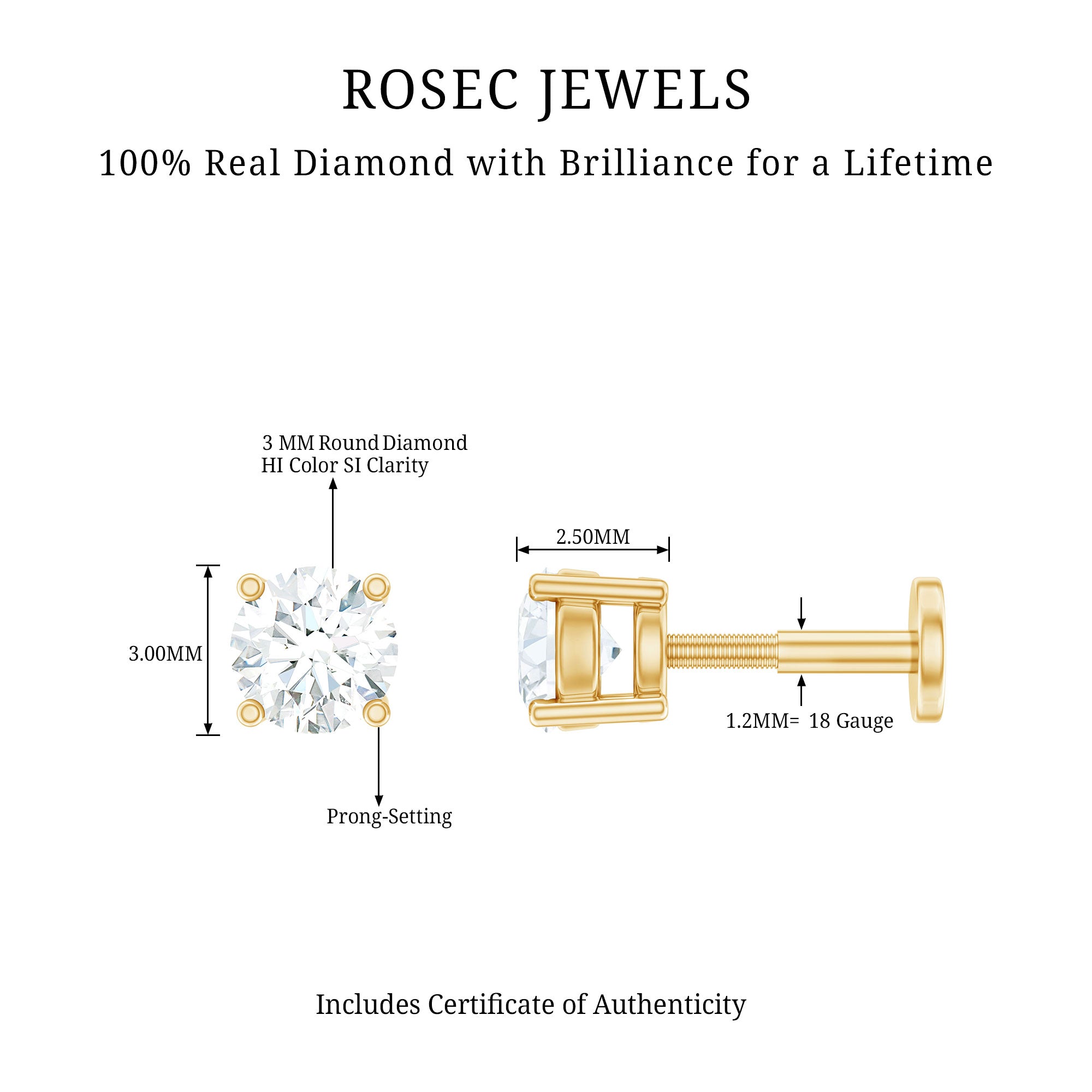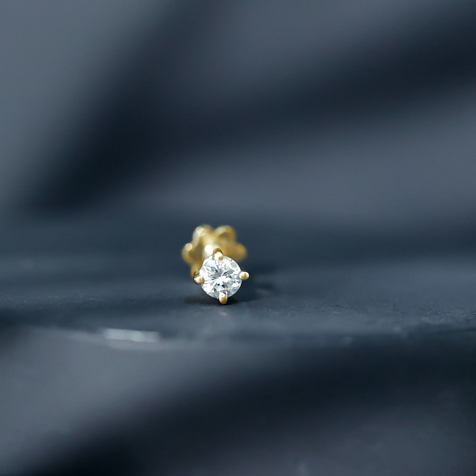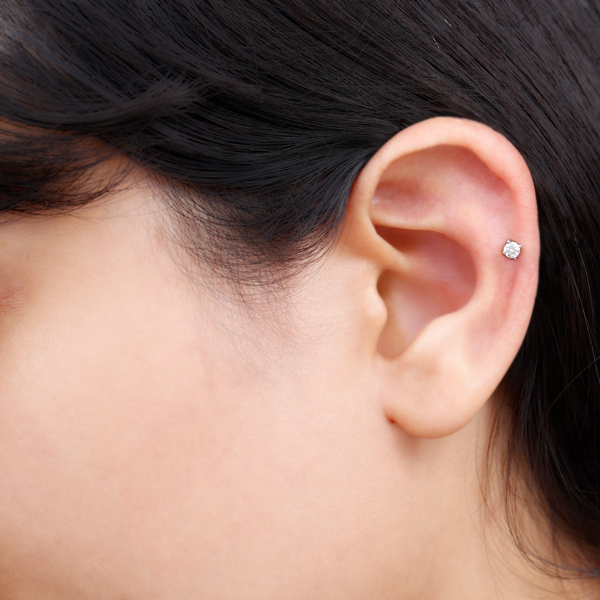 Minimalist Diamond Solitaire Earring for Tragus Piercing