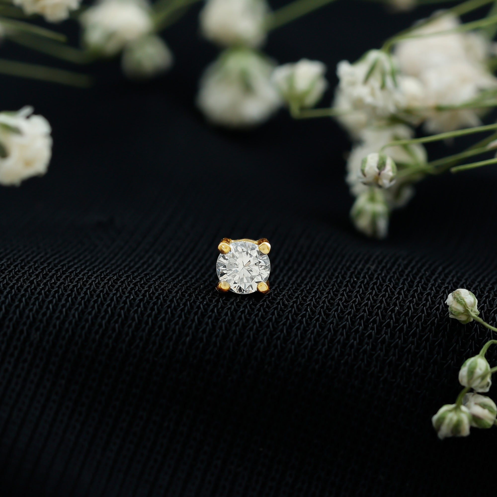 Add a touch of bit sparkle with our stunning Diamond Solitaire Earring, designed to turn heads. This eye-catching piece features a round shape diamond set in 4 prong set, perfect for adding a touch of glamour to any occasion.