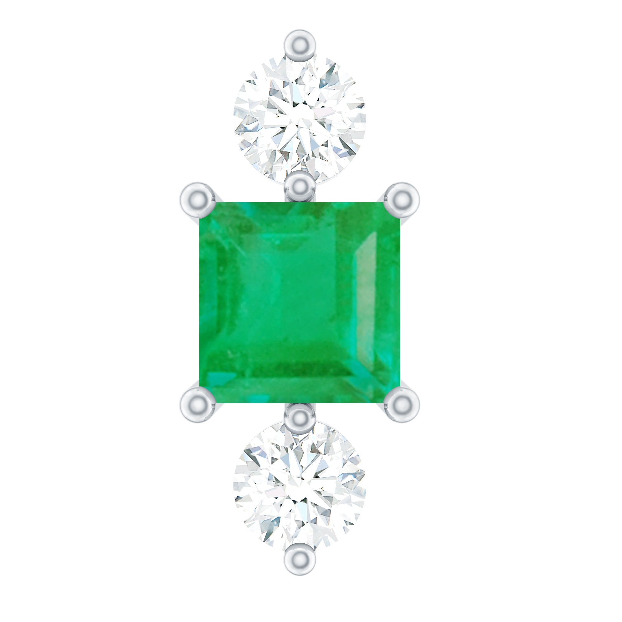 This Minimal Emerald and Moissanite Helix Earring is embellished with Princess Cut Emerald and Round Cut Moissanites secured in Prong Setting. Whether youre looking to make a statement or simply want to add some understated glam to your look, this Emerald Earring is the perfect choice for you.