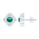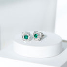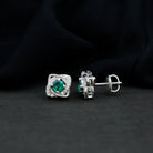 Discover the magic of these stunning Minimalist Stud Earrings, featuring a 4 MM round lab-created emerald at the heart, gently secured in a prong setting. Encircling the created emerald is a brilliant interlocked design adorned with moissanite gemstones, bringing an additional layer of brilliance. Thanks to the screw back closure, these Lab Created Emerald Stud Earrings offer a secure fit, giving you confidence. Perfect for both special events and daily use, these exquisite earrings are sure to draw compliments and elevate your style. Show off your individuality and make a bold fashion statement with these stunning Everyday Studs, which are sure to attract attention with their bright appeal or be appreciated for their unique beauty. The striking simplicity of these timeless Green Stone Earrings is free of unnecessary embellishments, making them a refined choice for any woman who wishes to carry themselves with grace.