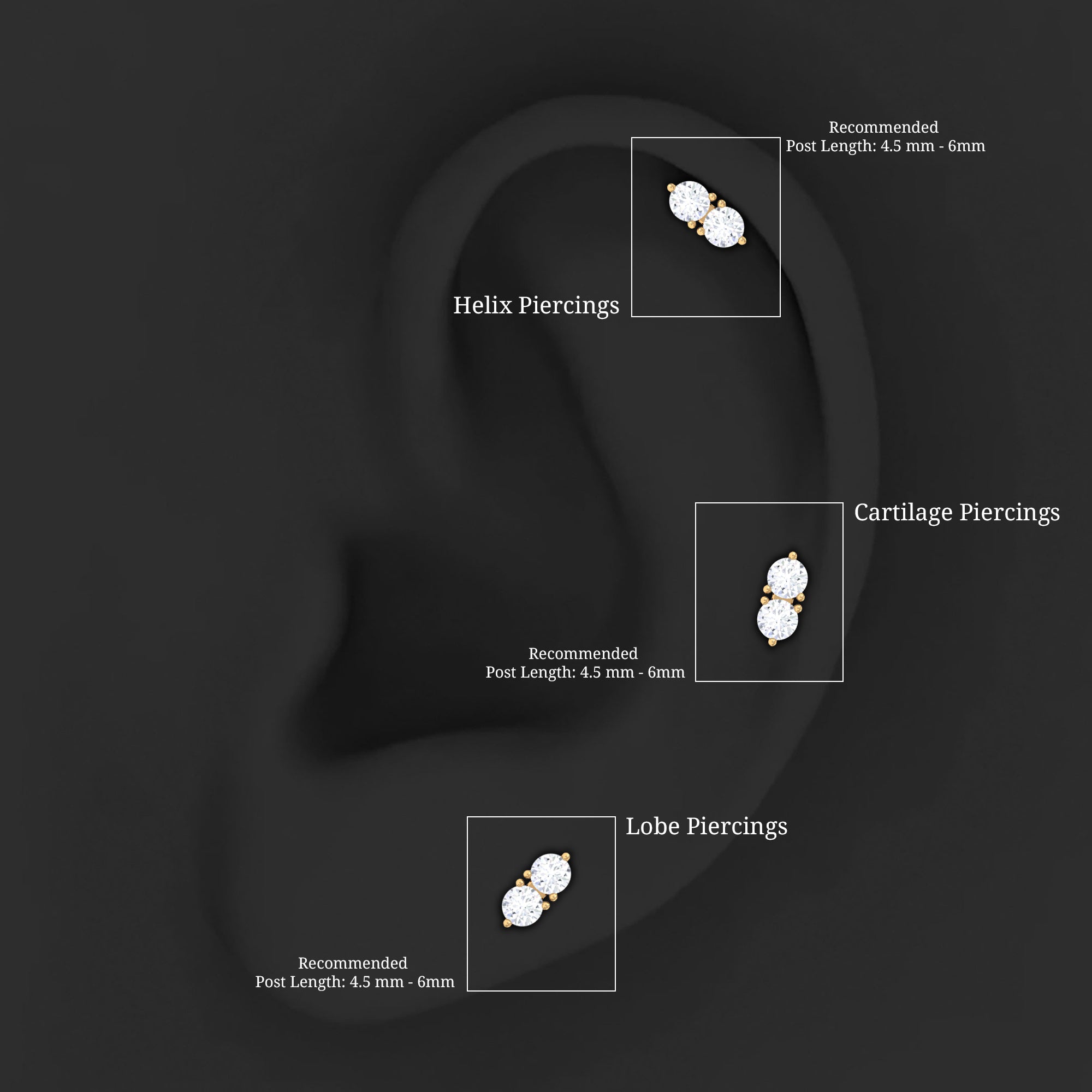This Minimalist Moissanite Two Stone Earring is embellished with Round Cut Moissanites secured in Prong Setting, composed of Metal. Style it on your multiple piercings like Helix, Cartilage, Conch, Tragus, or Upper Lobe Piercing. Get this Moissanite Earring for you lady love and make her day even more special.