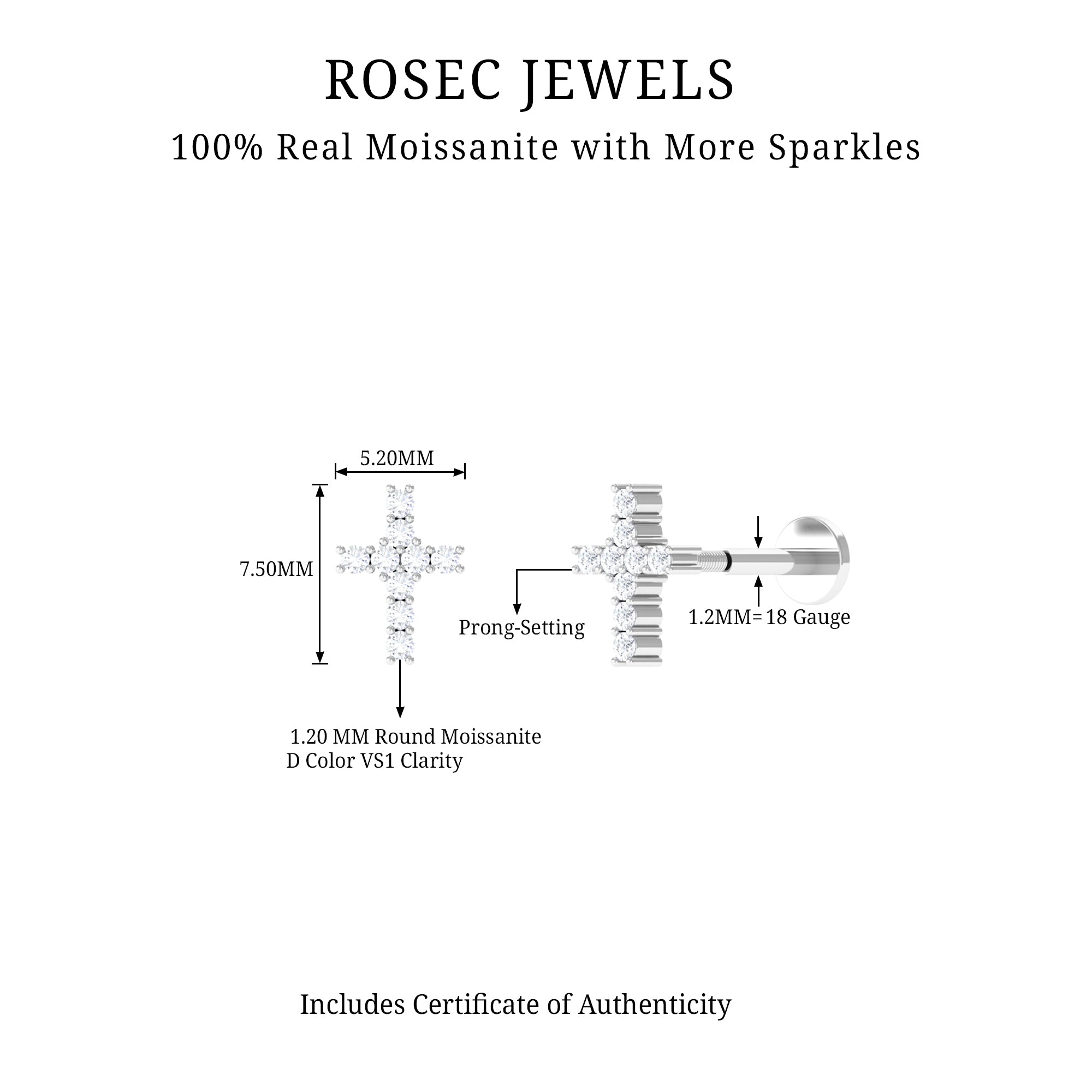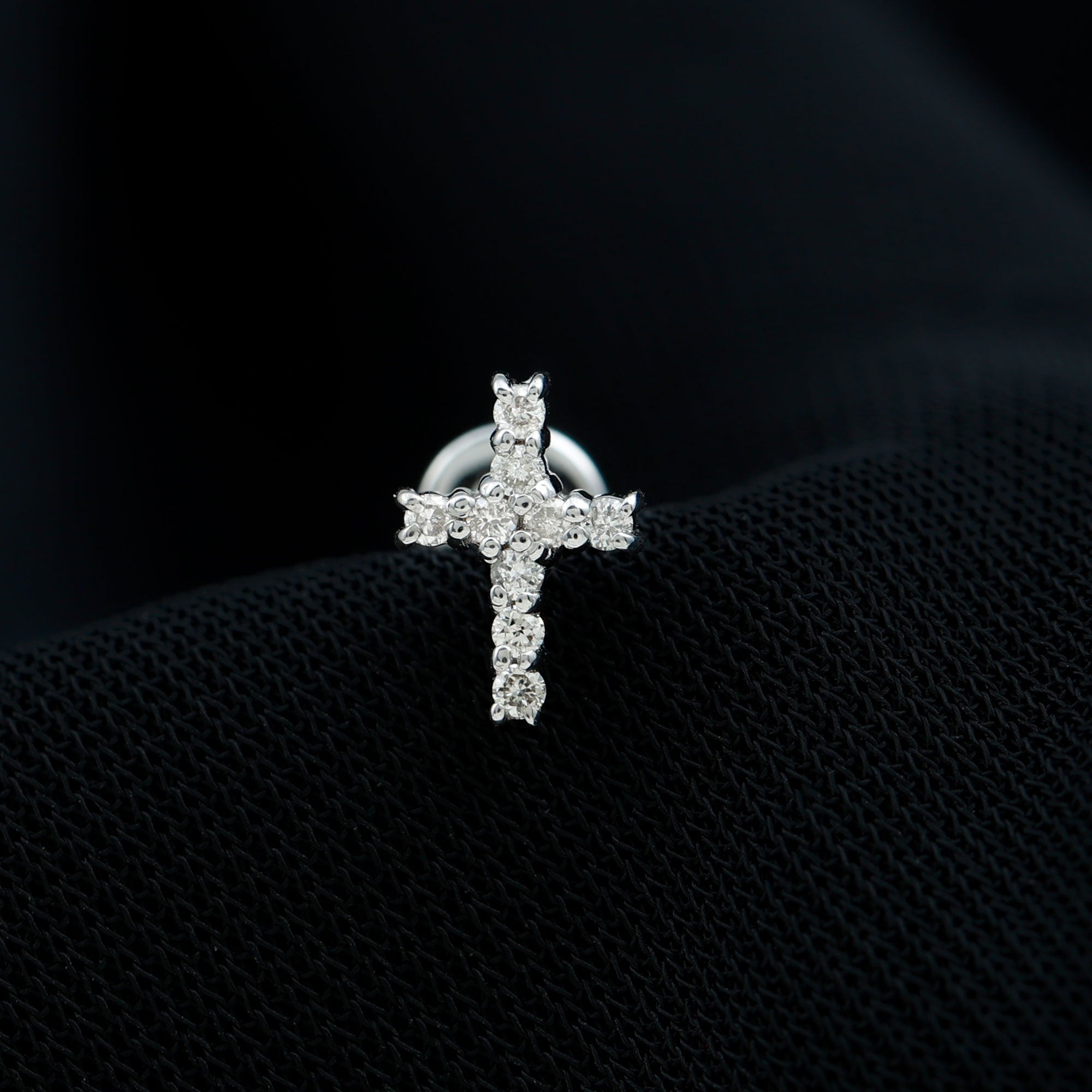 This Moissanite Cross Cartilage Earring is embellished with Round Cut Moissanites secured in Prong Setting on a Cross Design, composed of Real Gold Metal. You can wear this Minimalist Earring on your Helix, Cartilage, Conch, or Upper Lobe Piercing. Whether you are looking for a versatile accessory for everyday wear or a special piece for a formal occasion, this Cross Earring is an excellent choice.