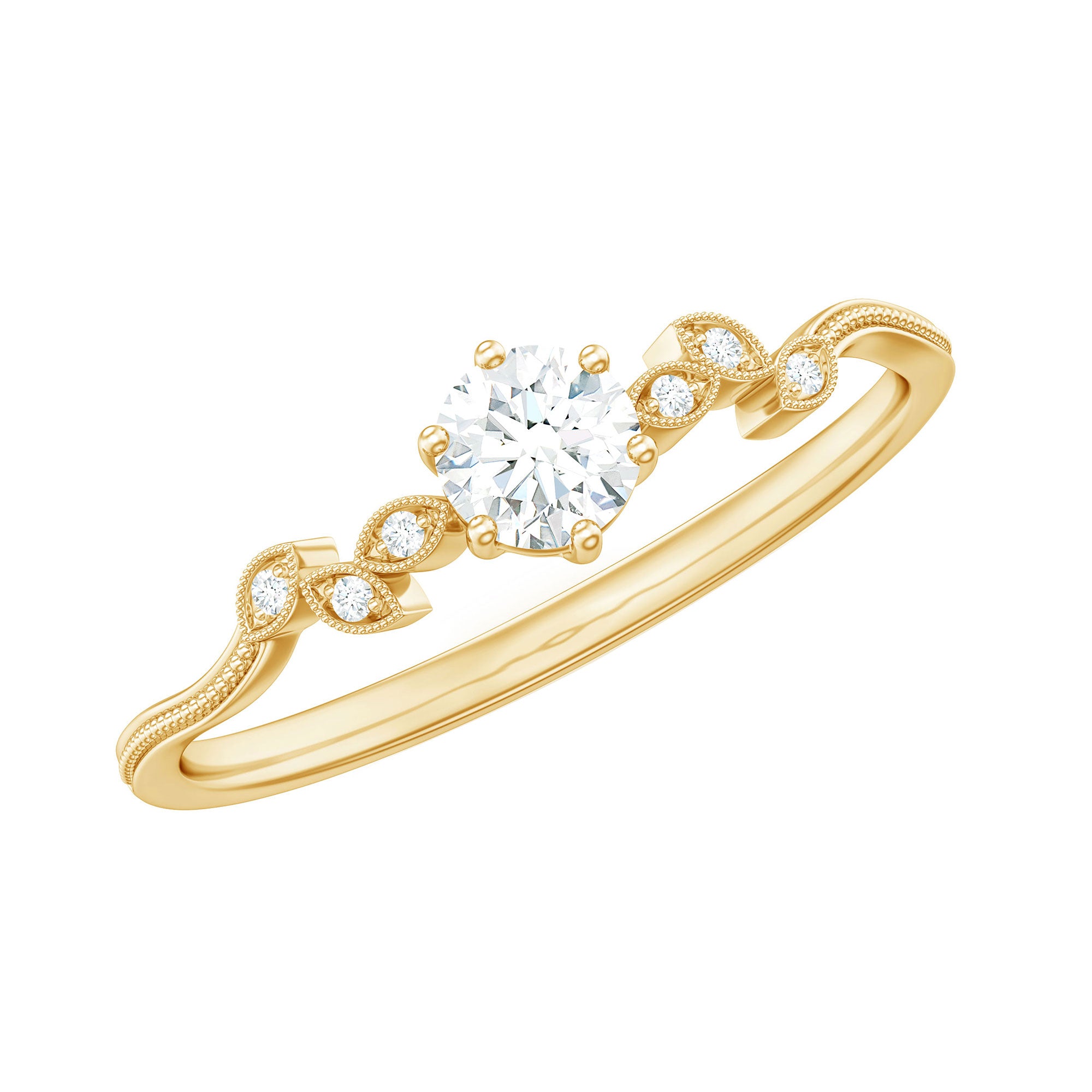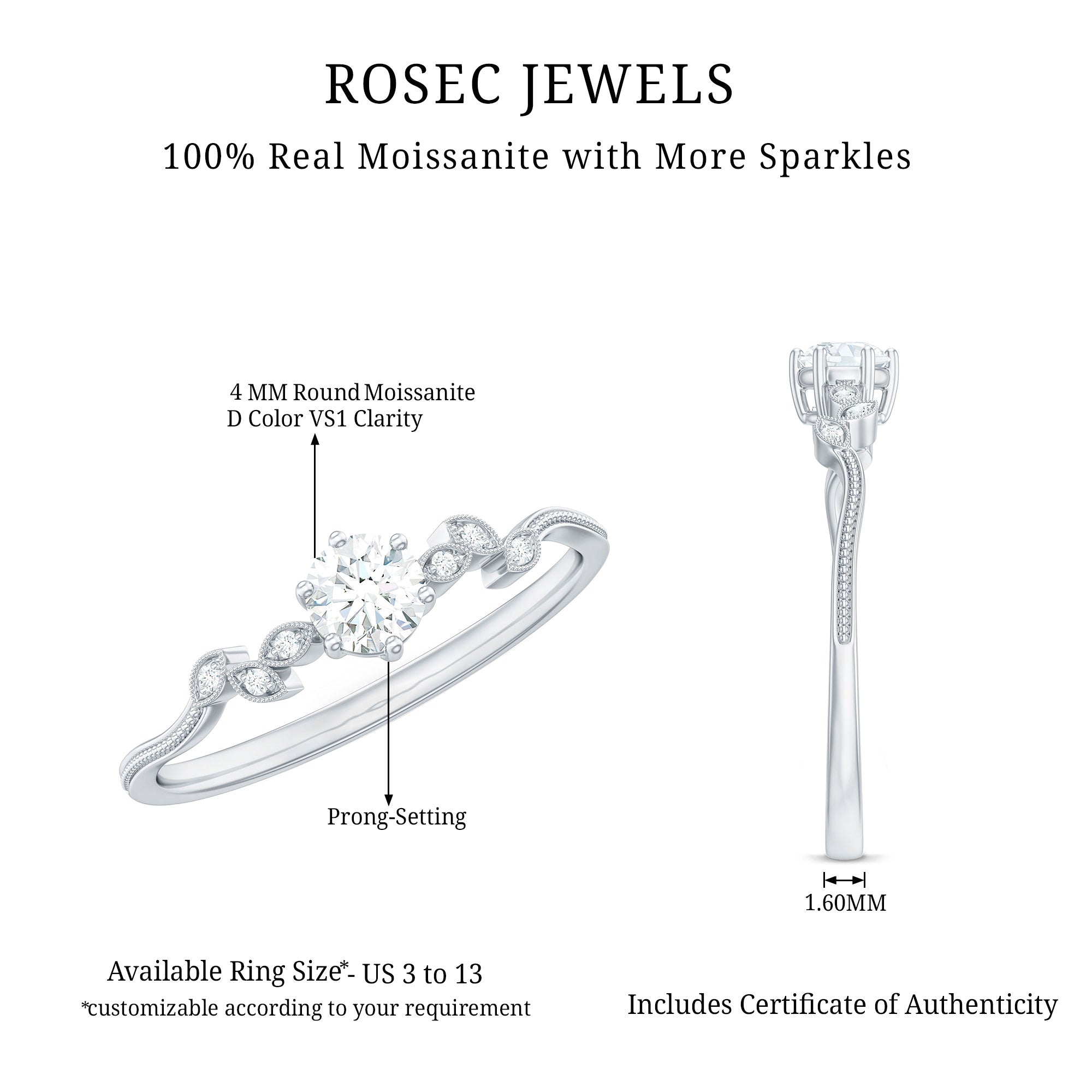 Natures elegance meets timeless meaning in this Moissanite Promise Ring, made to honor love, connection, and commitment. At the center sits a 4 MM round cut moissanite, held securely in prong setting. With its D-VS1 quality, the stone sparkles brightly, bringing light to every glance. Delicate leaf inspired band gently wraps around the center stone, creating a soft, romantic look. The beaded leaf design, accented with tiny moissanite stones, brings a touch of nature’s beauty to the Minimalist Ring, making it a perfect symbol of growth and lasting love. Whether you are marking an important moment or simply want to express your feelings, this Leaf Ring holds special meaning. The design feels both graceful and thoughtful, ideal for someone who values simplicity, elegance, and ethically made jewelry. Made with care, the Nature Inspired Ring is a reminder of promises made, memories created, and a future built together. Available in US sizes 3 to 13, it ensures the right fit for every hand and style. This Moissanite Leaf Ring comes beautifully presented in a luxury jewelry box, ready for gifting to someone special or as a keepsake of your own love story.