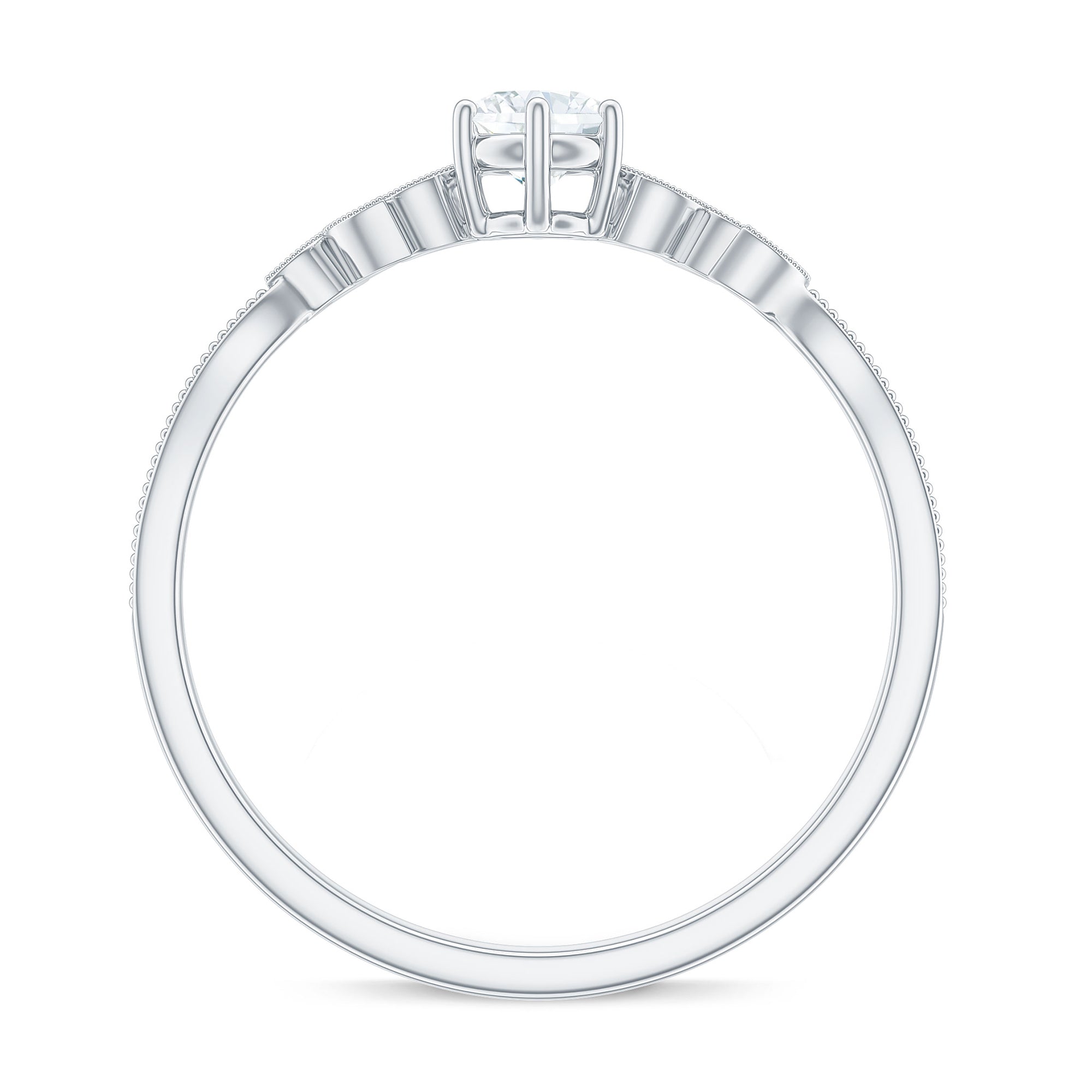 Minimalist Moissanite Leaf Promise Ring with Beaded Detail