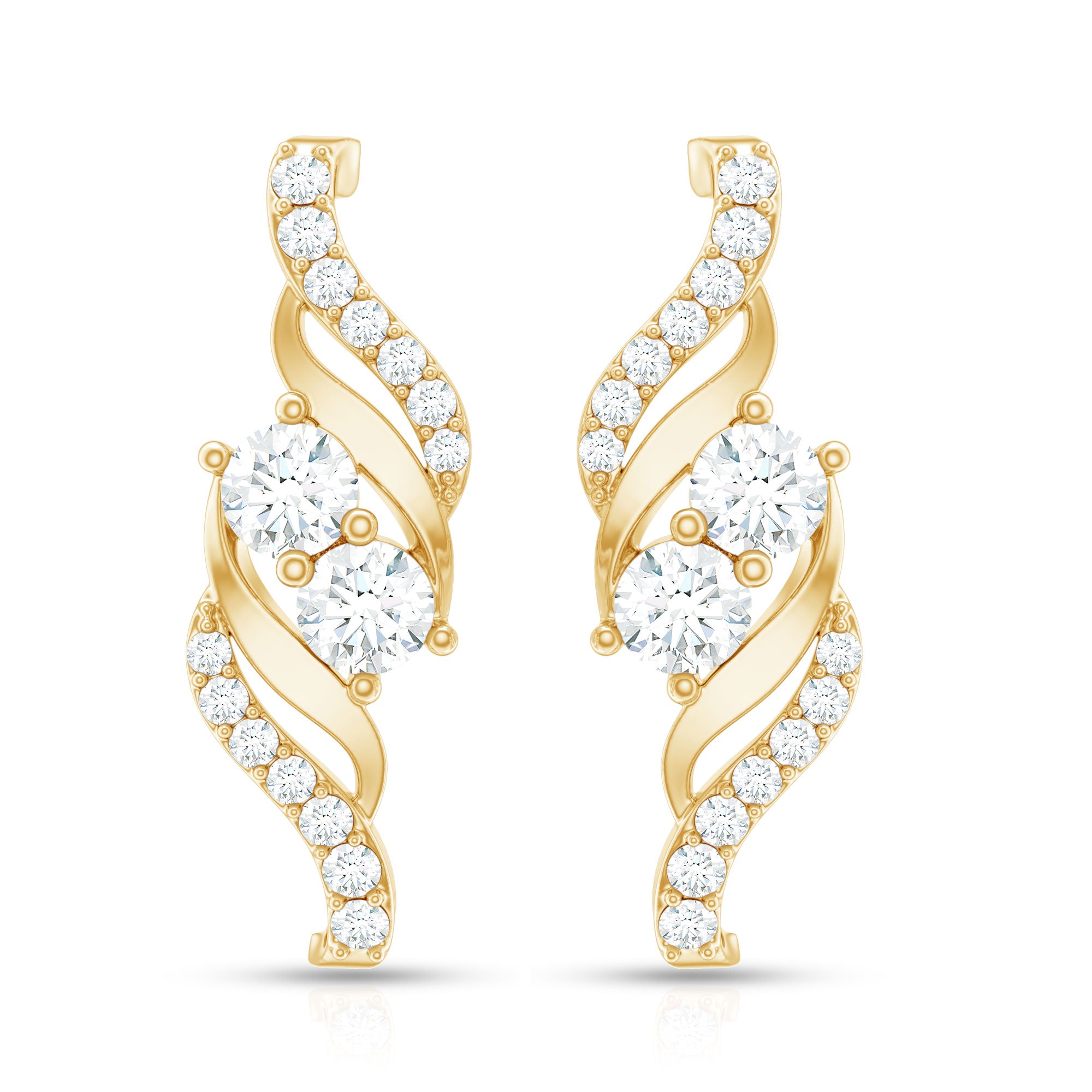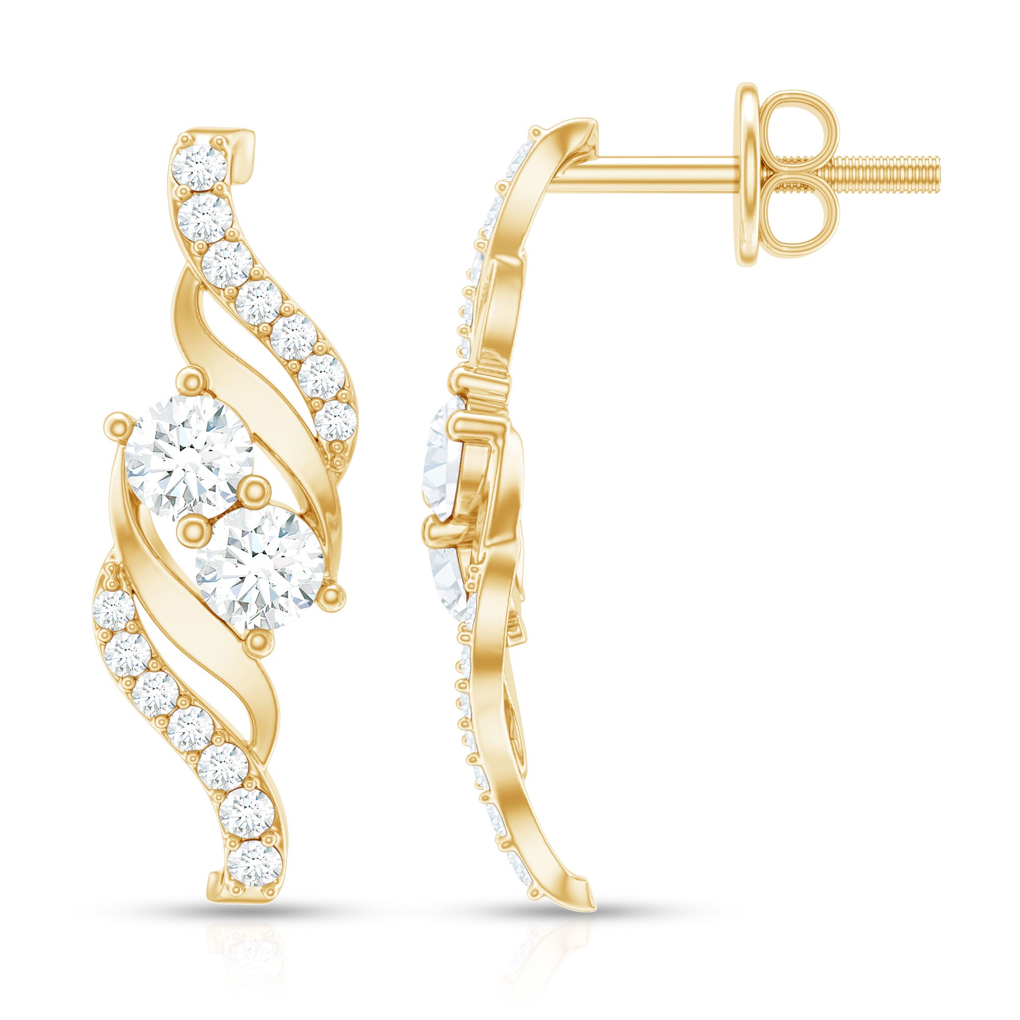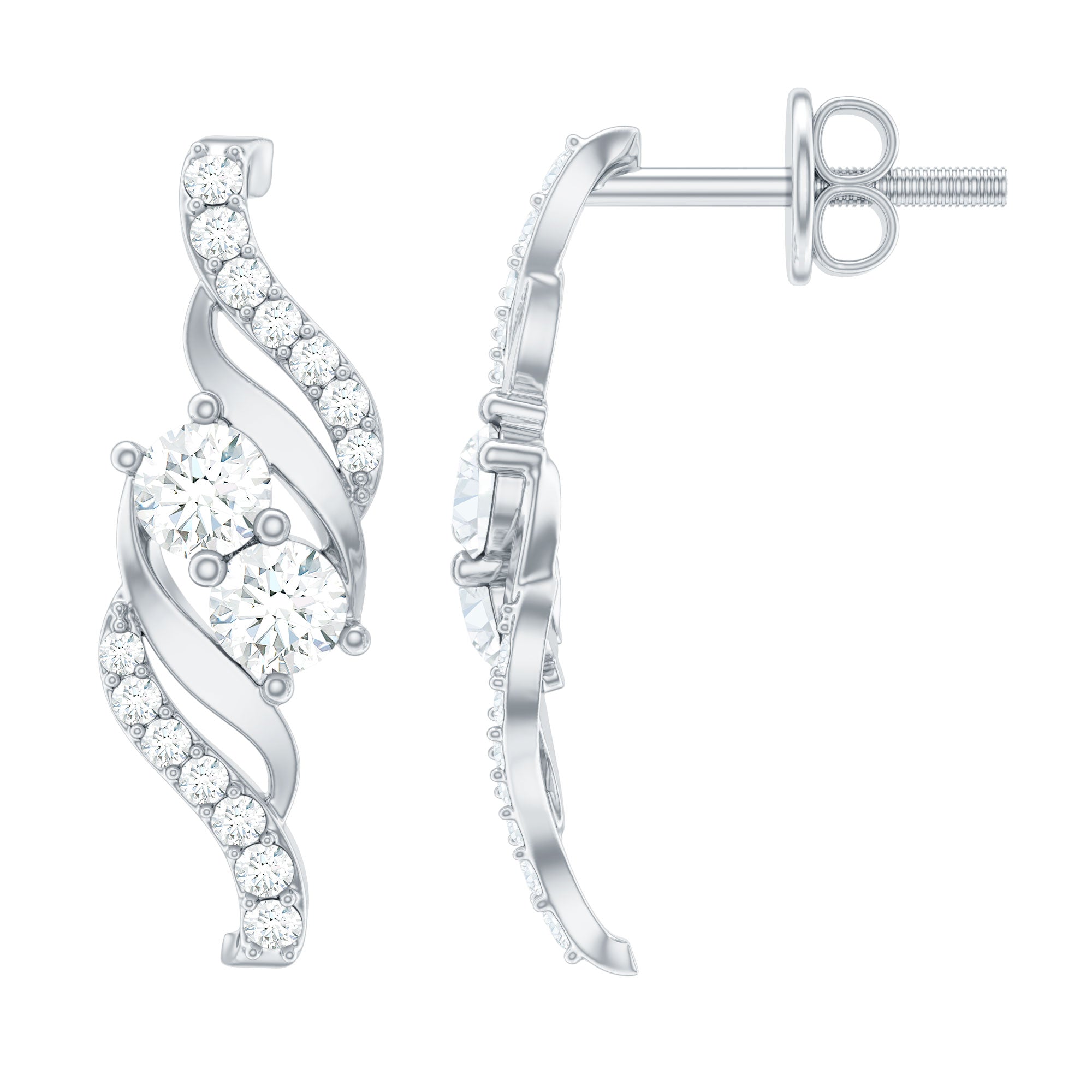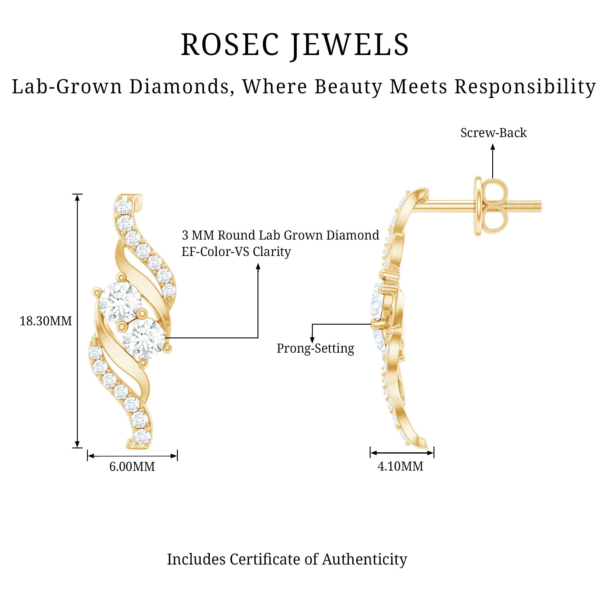 Bring out your gorgeous look with these lab created Diamond Stud Earrings. Adorned with sparkling round shaped Diamond gemstones of Ef-Vs quality set in a safe prong setting, these Two Stone Earrings boast a bypass design that effortlessly enhances any style. The Screw Back Closure ensures secure and comfortable wear, making them perfect for everyday use. Crafted with perfection and attention to detail, these Diamond Earrings (Synthetic) are a reflection of sophistication and style from Rosec Jewels. For those who are in search of April Birthstone Earrings, they offers an affordable yet luxurious option without compromising on quality or style and all of our jewelry comes in the appropriate packaging ensuring they are ready for gifting upon arrival.