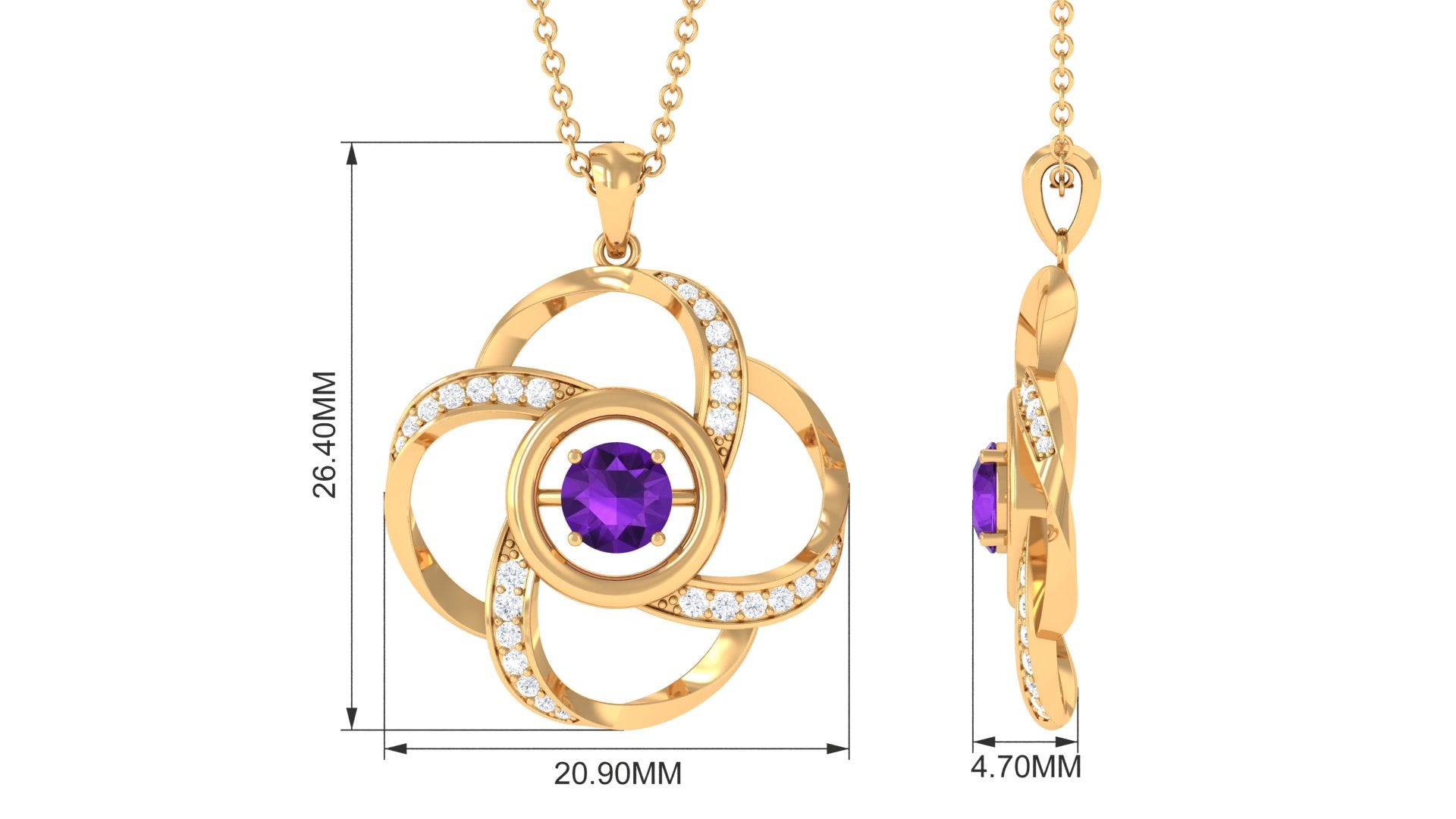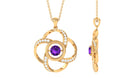 The highlight of this pendant necklace is the modern aesthetics that this piece is all about. Fashioned out of round amethyst, floral-like motifs, and round Diamond, the pendant is a glamorous option for all fashion-savvy women. The pendant design resembles a full bloom flower that grows from a bud into the world and beautifies it even more with its arrival. It is complete with a lustrous bale that allows you to achieve multiple looks throughout the day.