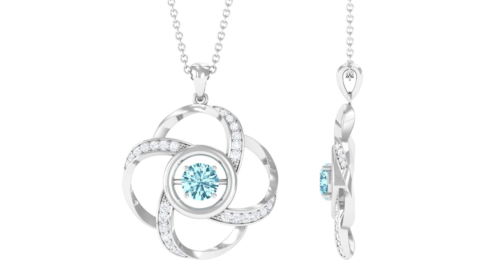 Modern Flower Pendant with Round Aquamarine and Diamond
