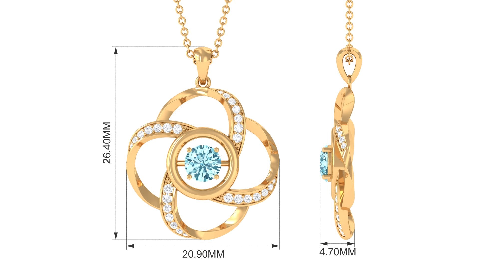 Dive into the captivating allure of this mesmerizing contemporary flower pendant. Meticulously crafted to captivate your attention, this pendant features a stunning floral motif adorned with round Diamond and Aquamarine gemstones. The perfect fusion of these gems creates a timeless charm that is bound to turn heads wherever you go. Suspended by a radiant bale, this necklace pendant embodies glamorous allure, making it an excellent choice for those with a discerning sense of fashion. Embrace the irresistible elegance and allure of this exquisite piece, destined to elevate any ensemble with a touch of glamour and sophistication.