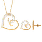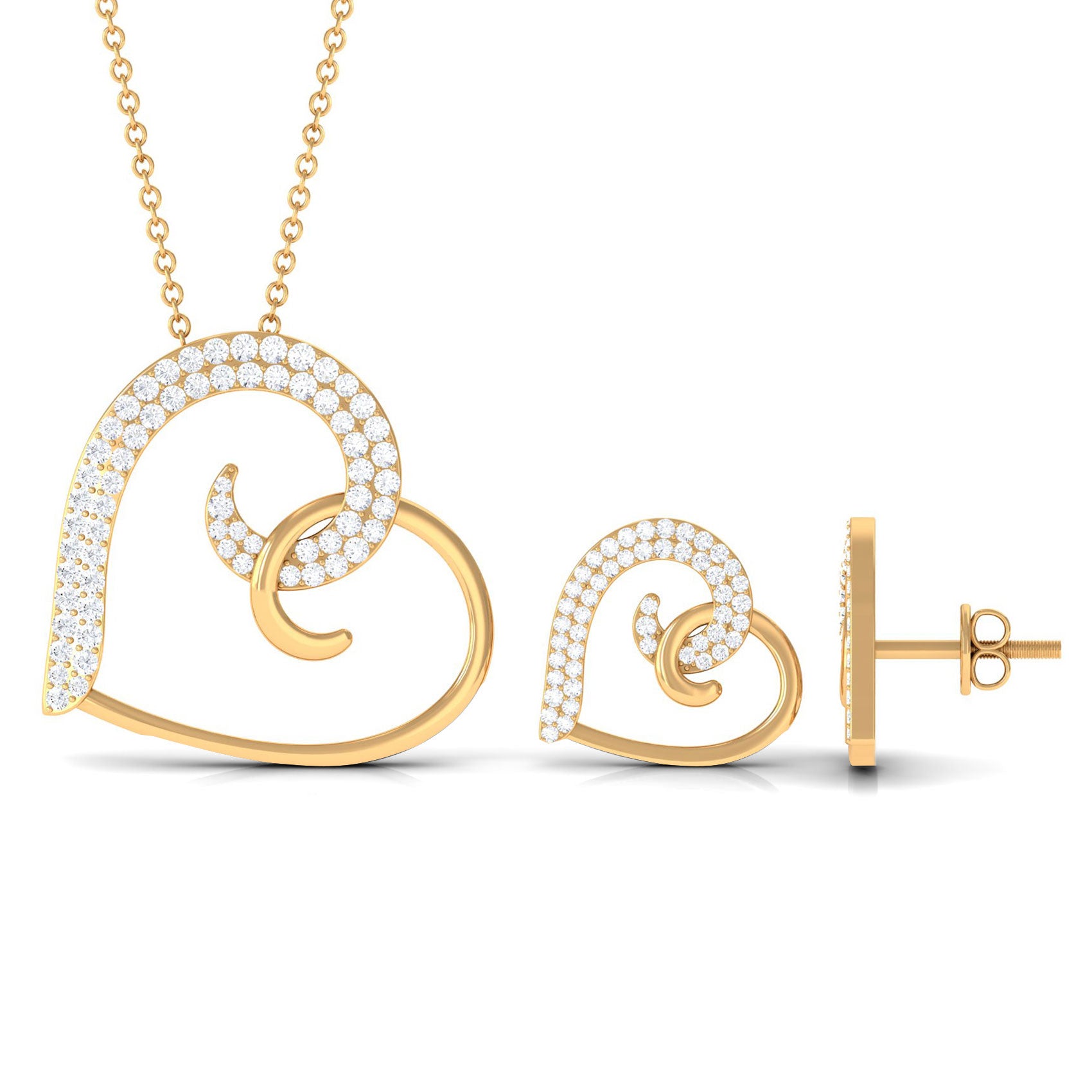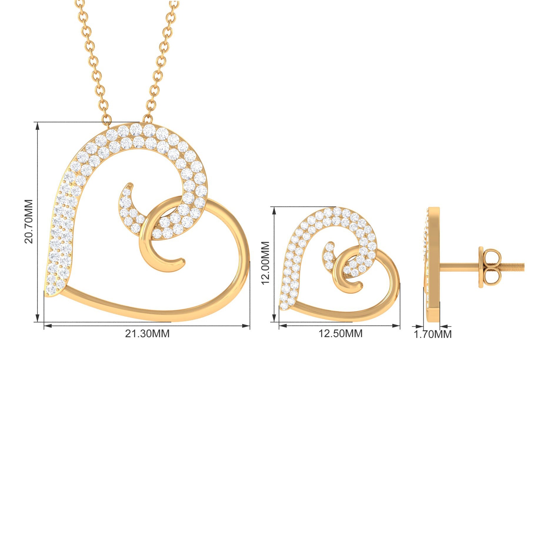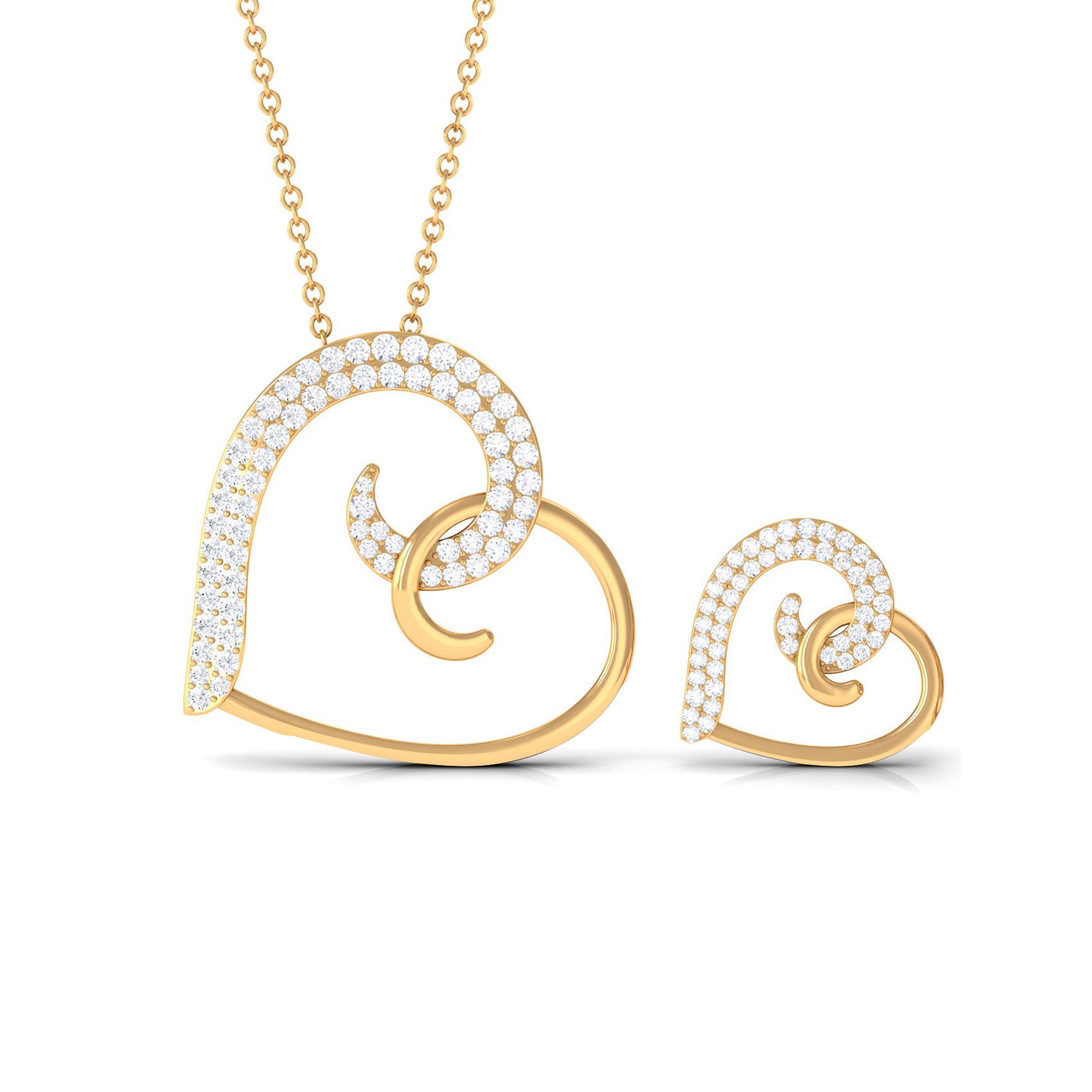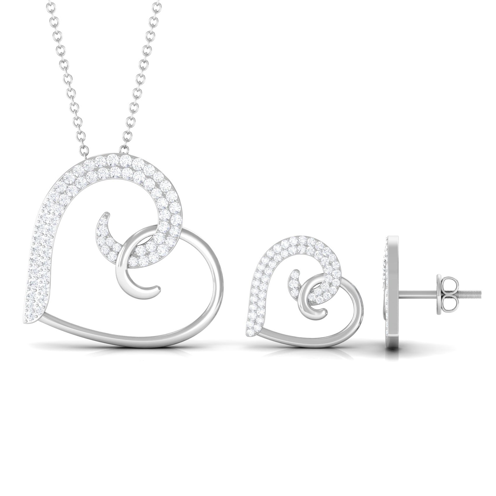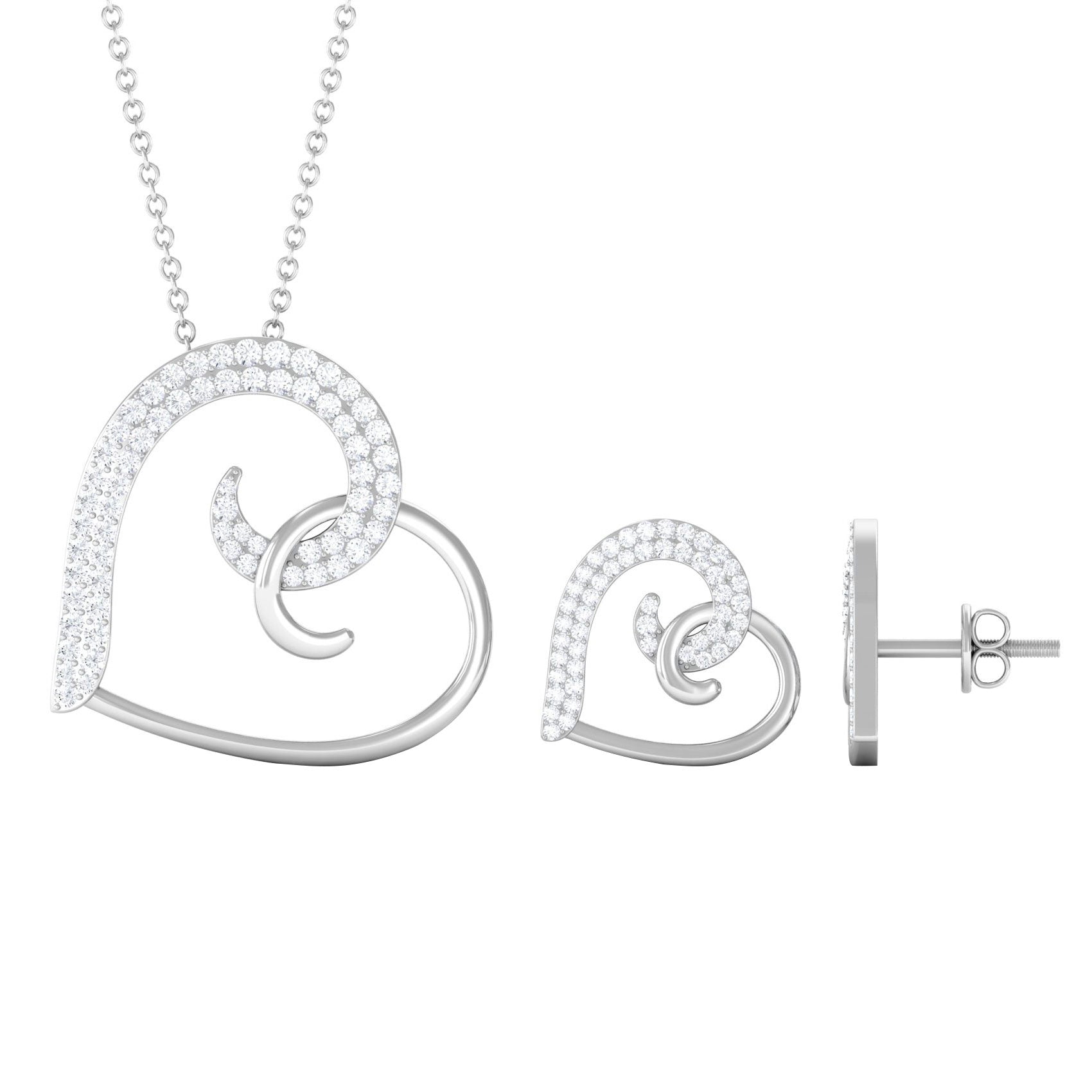 Add a touch of modern elegance to your style with this stunning heart necklace and earring set. The pendant features a heart shape interlocked moissanites that are set in a sleek and modern design. This unique pendant creates a look that is both timeless and on-trend. The earring comes with the same heart shape interlocked design half surrounded by sparkling moissanite. This necklace and earring set is perfect for any occasion, from everyday wear to special events.
