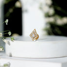 Want to amp your look with a minimal charm? Grab this Kite Shape Diamond Earring, showcasing dainty Round Diamonds secured by pave setting on a kite shaped motif.