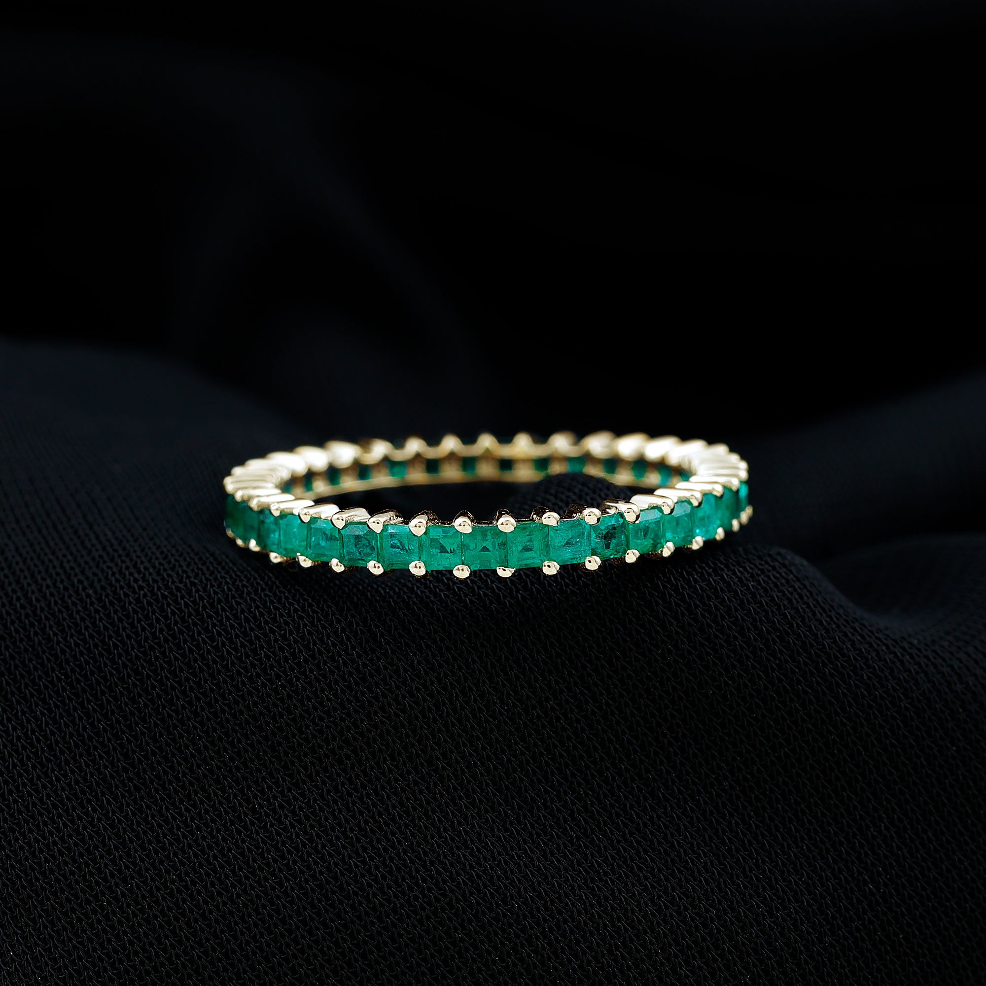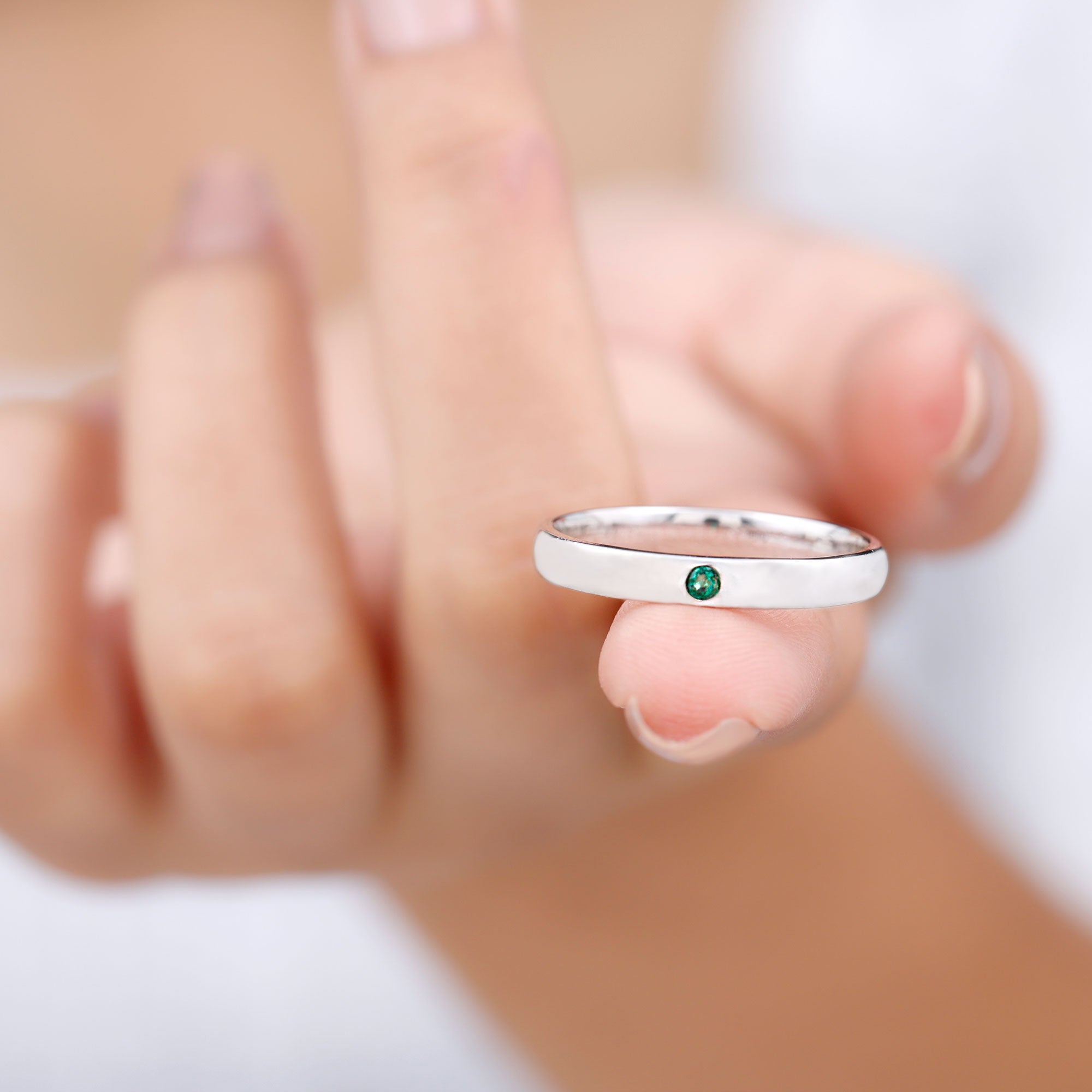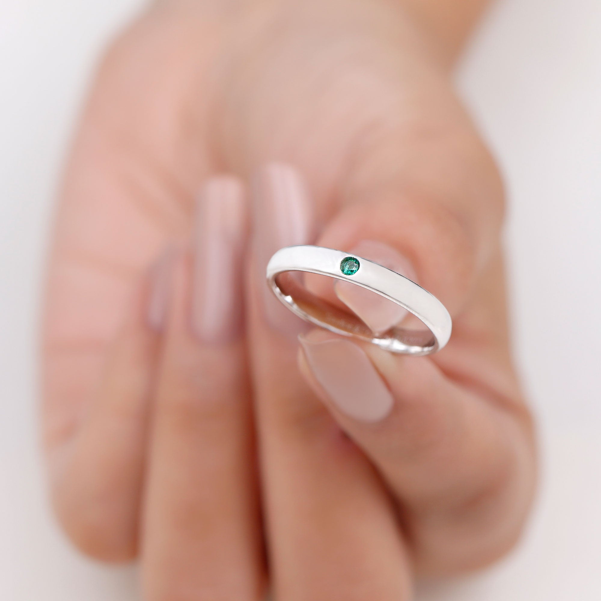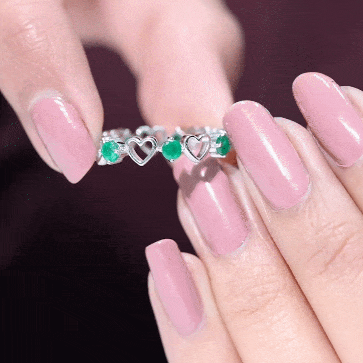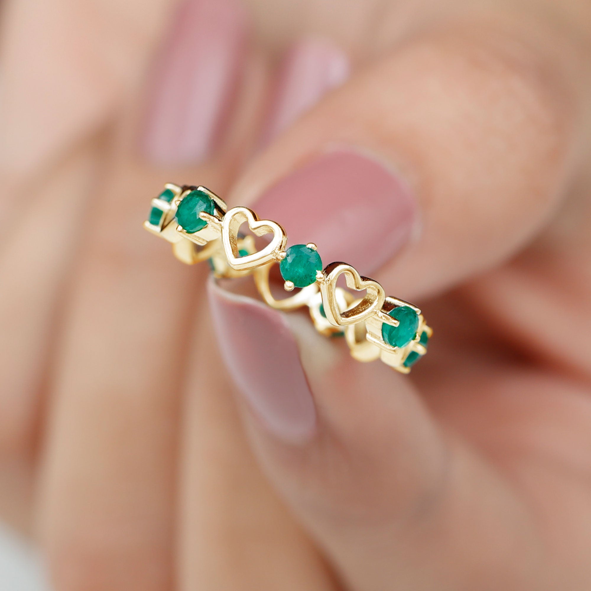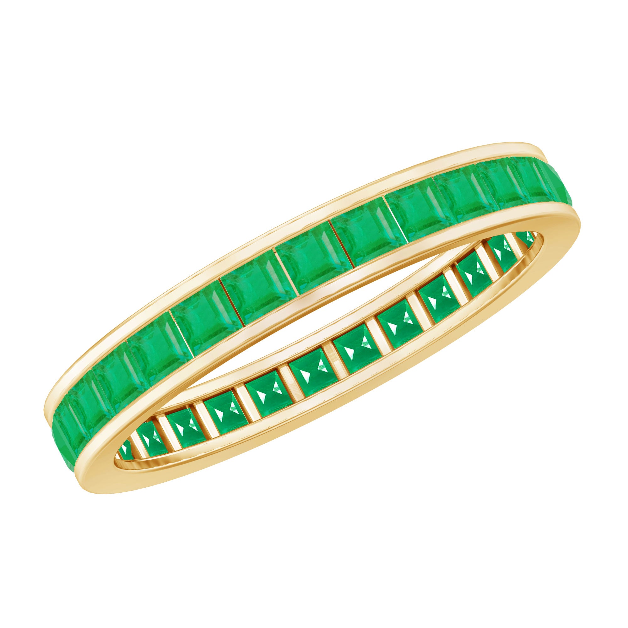 Eternity Bands features a continuous line of lush green emeralds that goes all around the band. It’s a luxurious choice that sparkles from every angle.