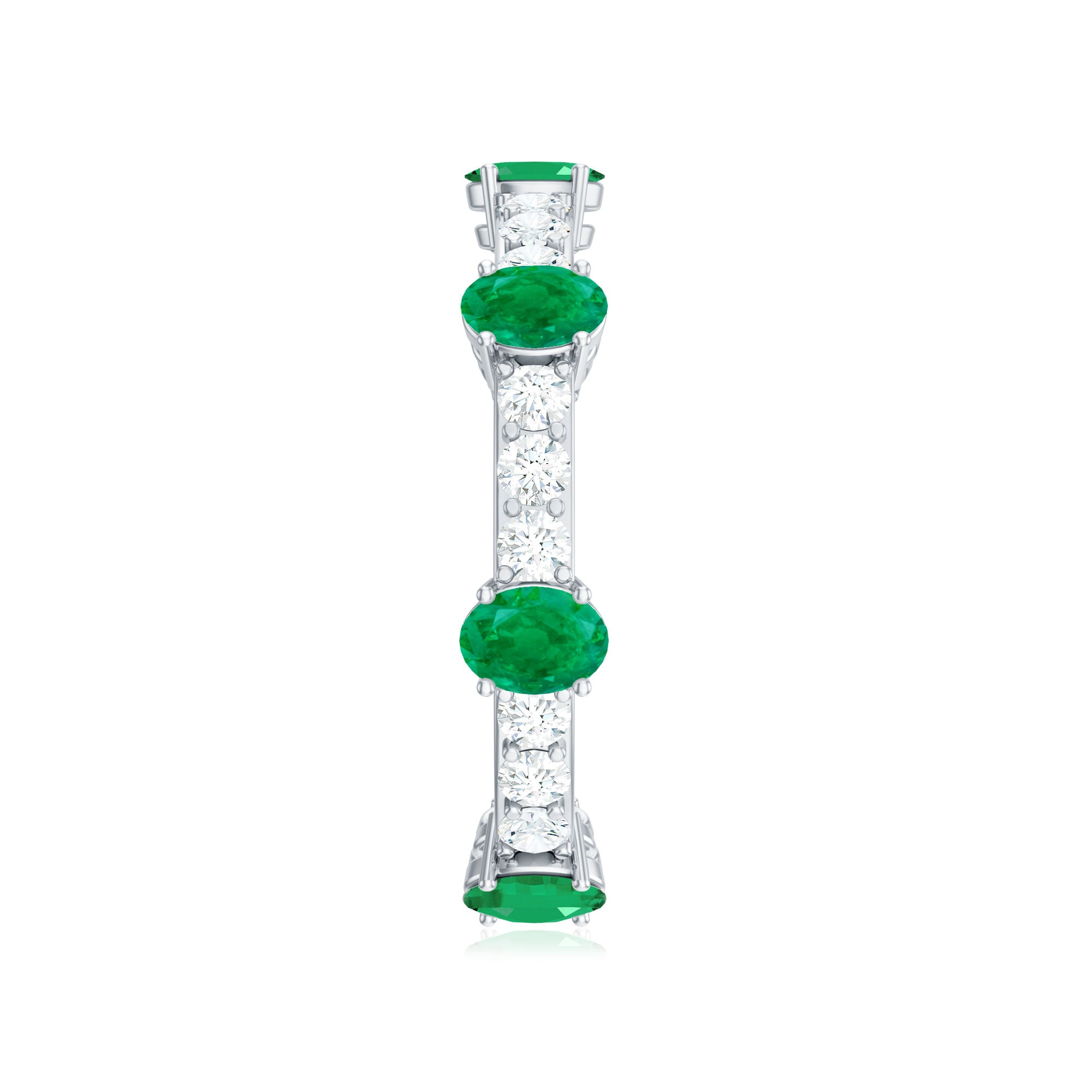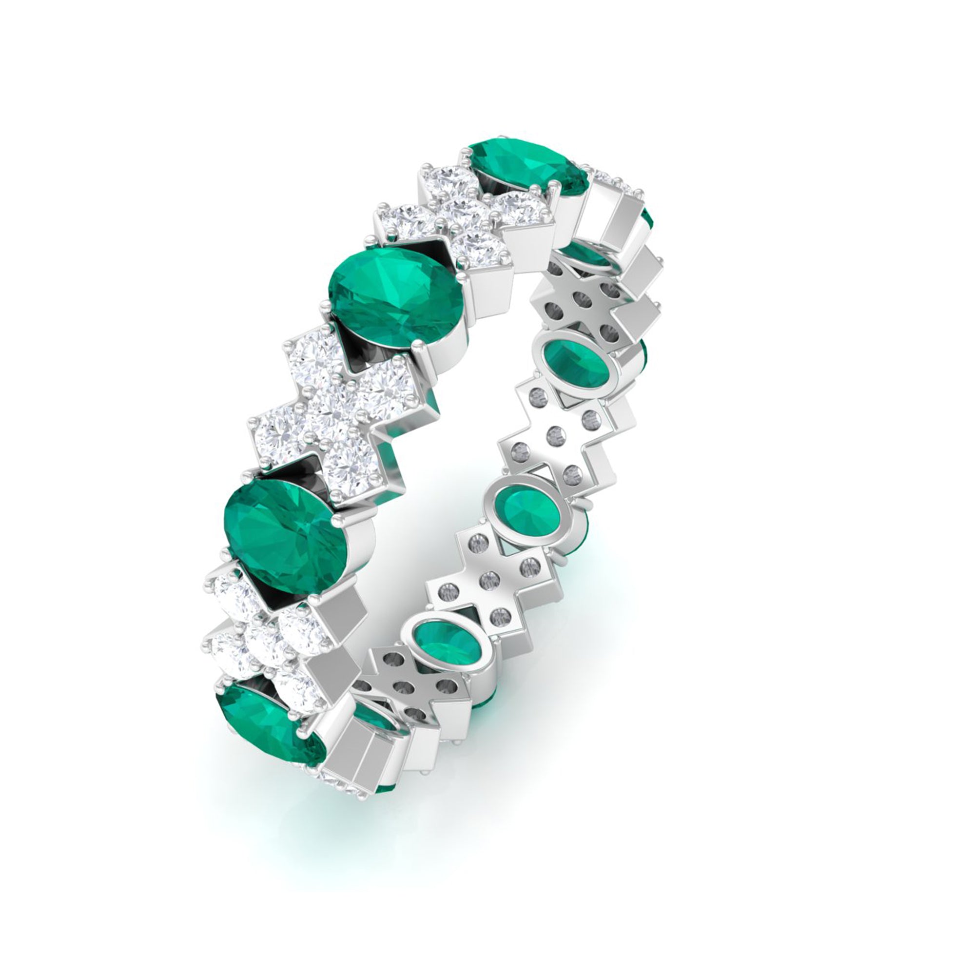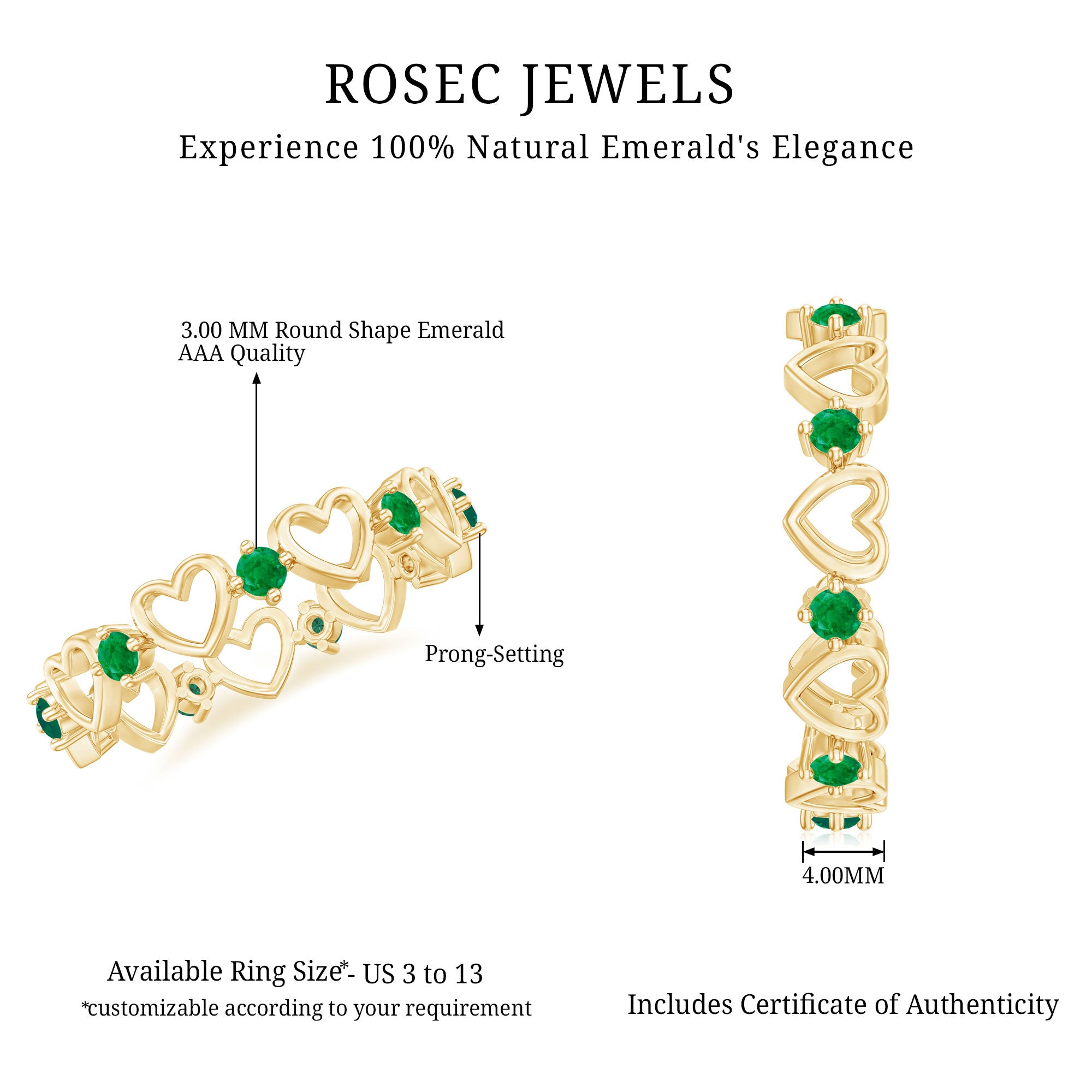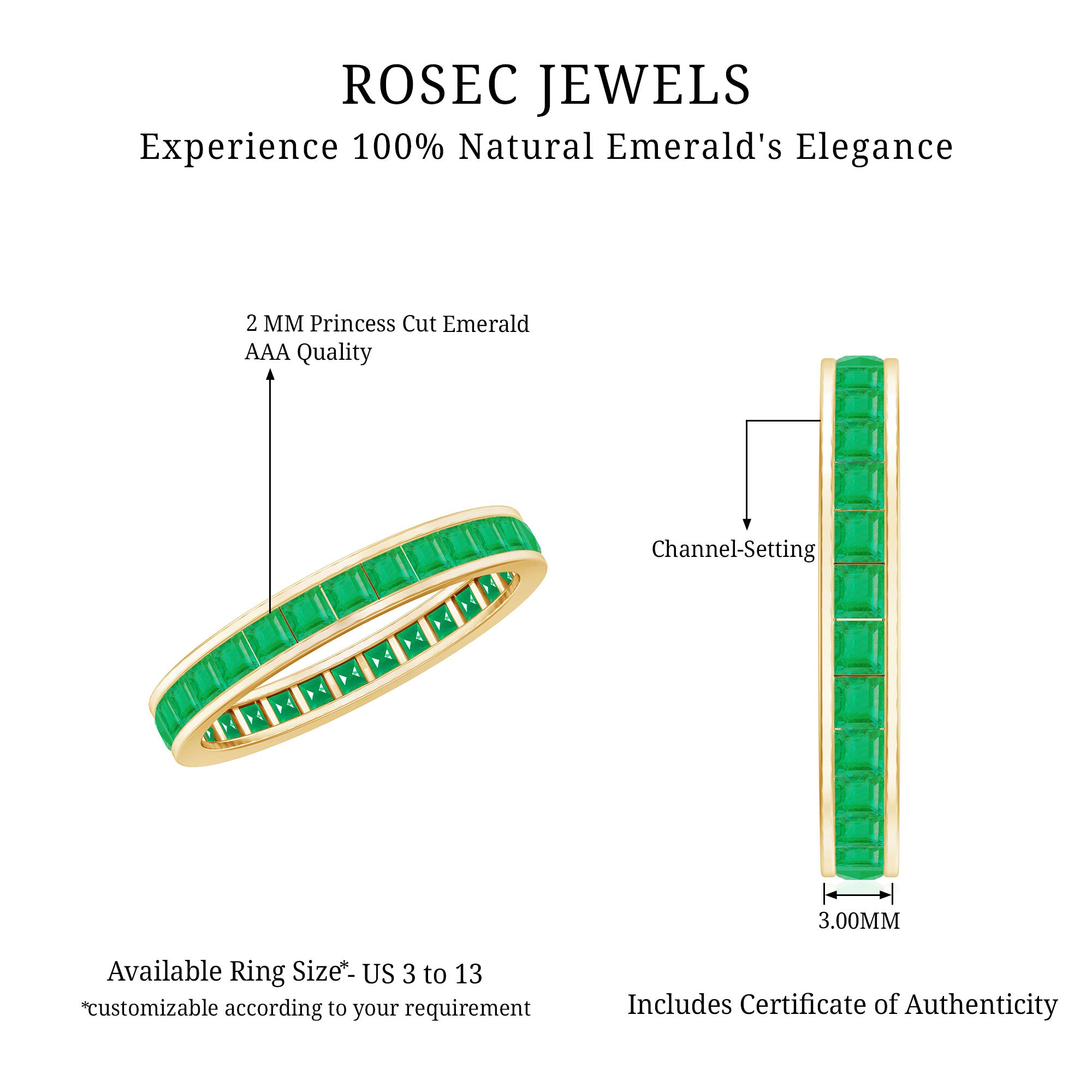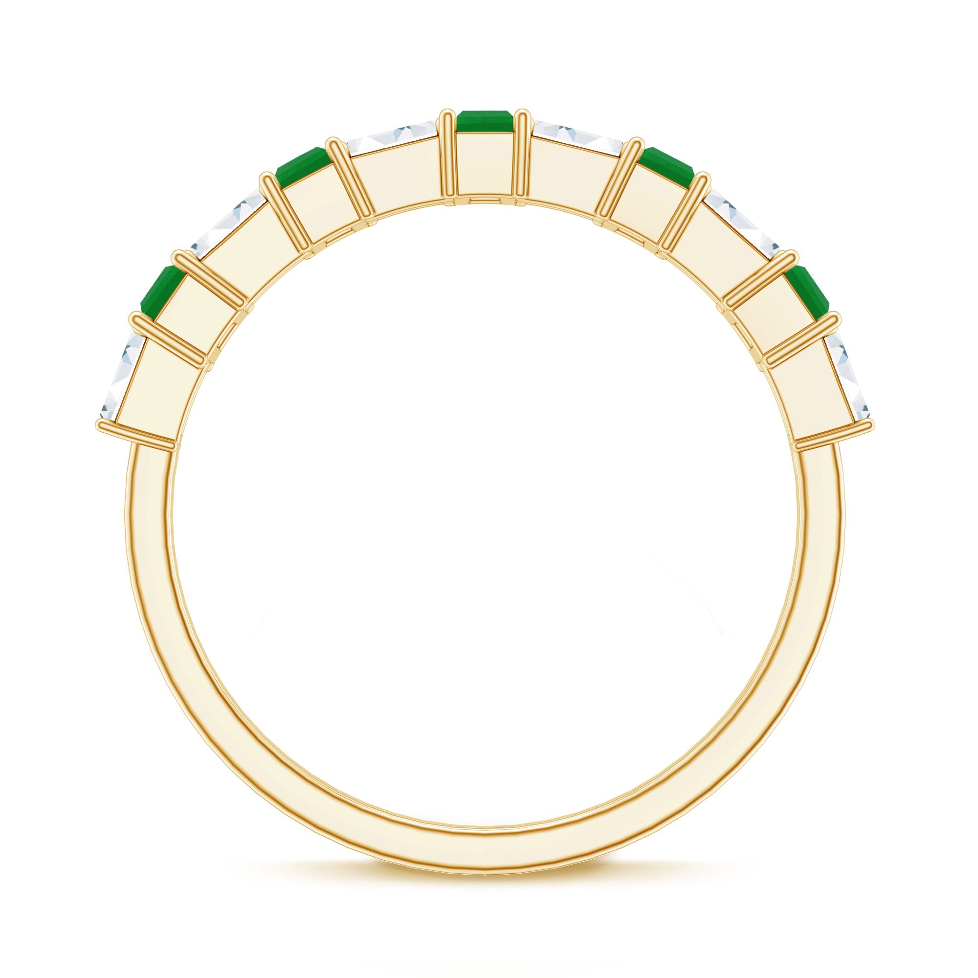 Eternity Bands features a continuous line of lush green emeralds that goes all around the band. It’s a luxurious choice that sparkles from every angle.