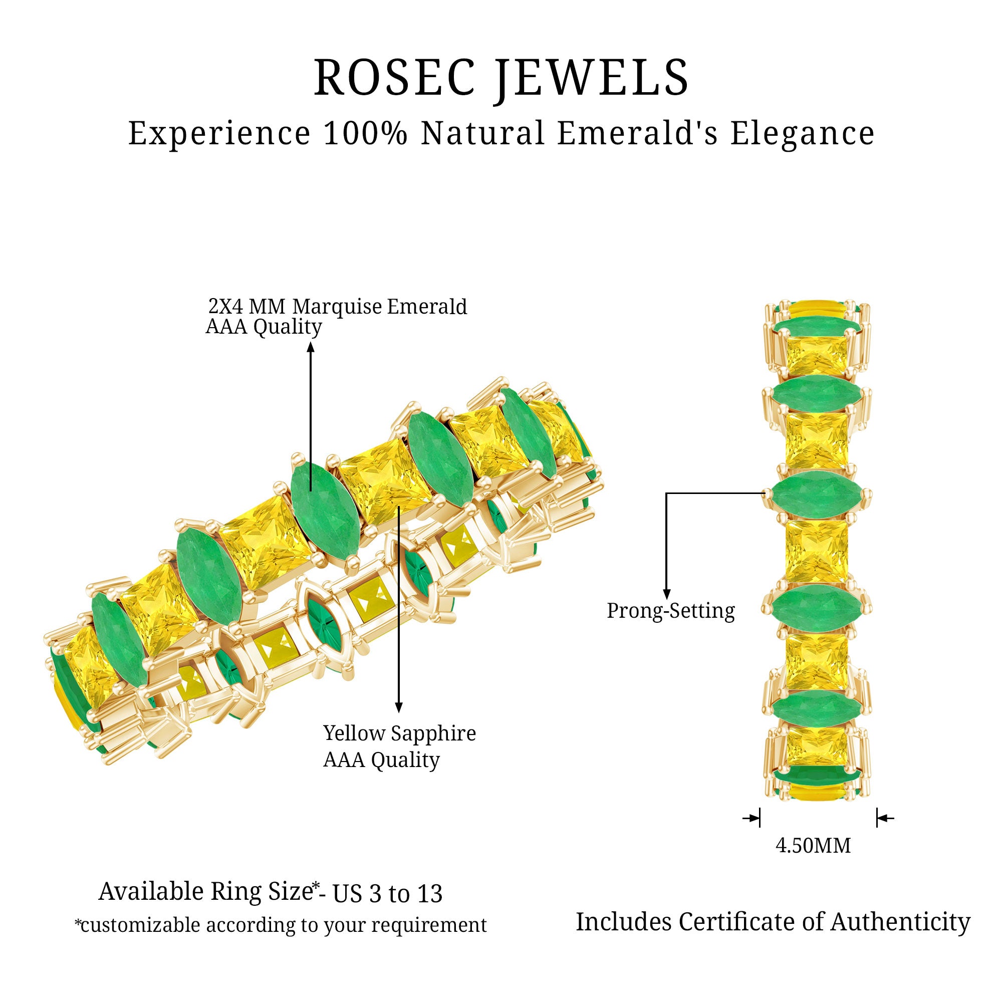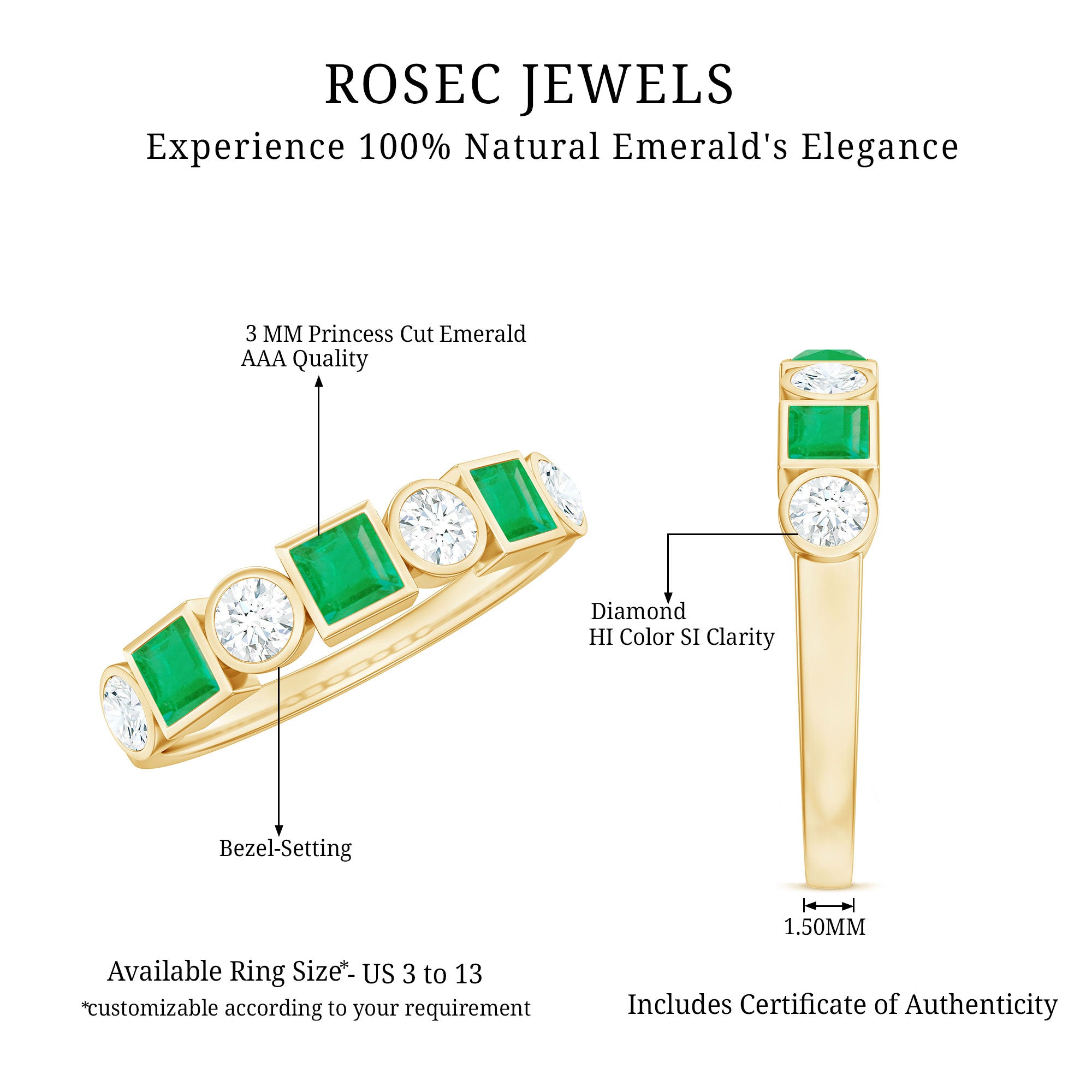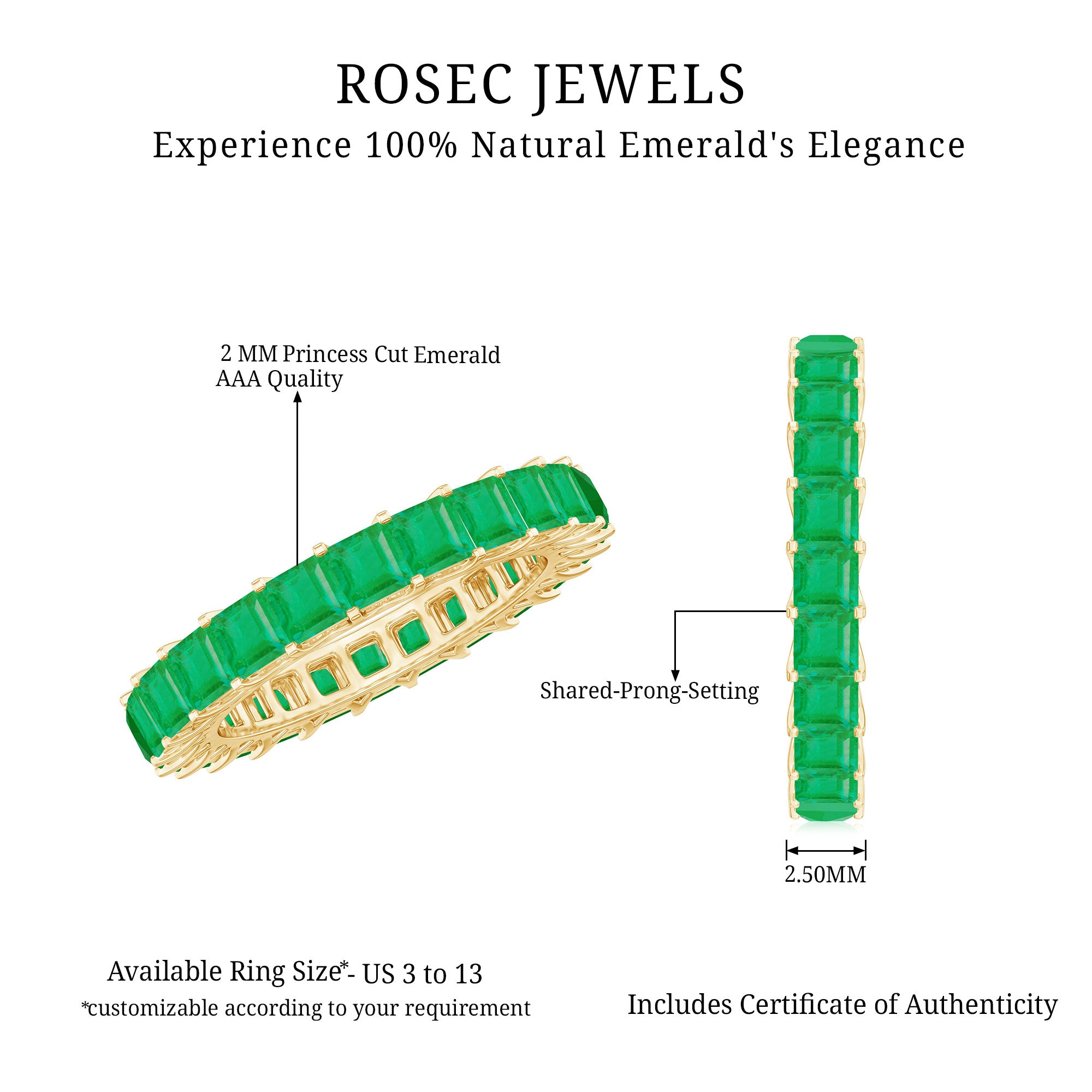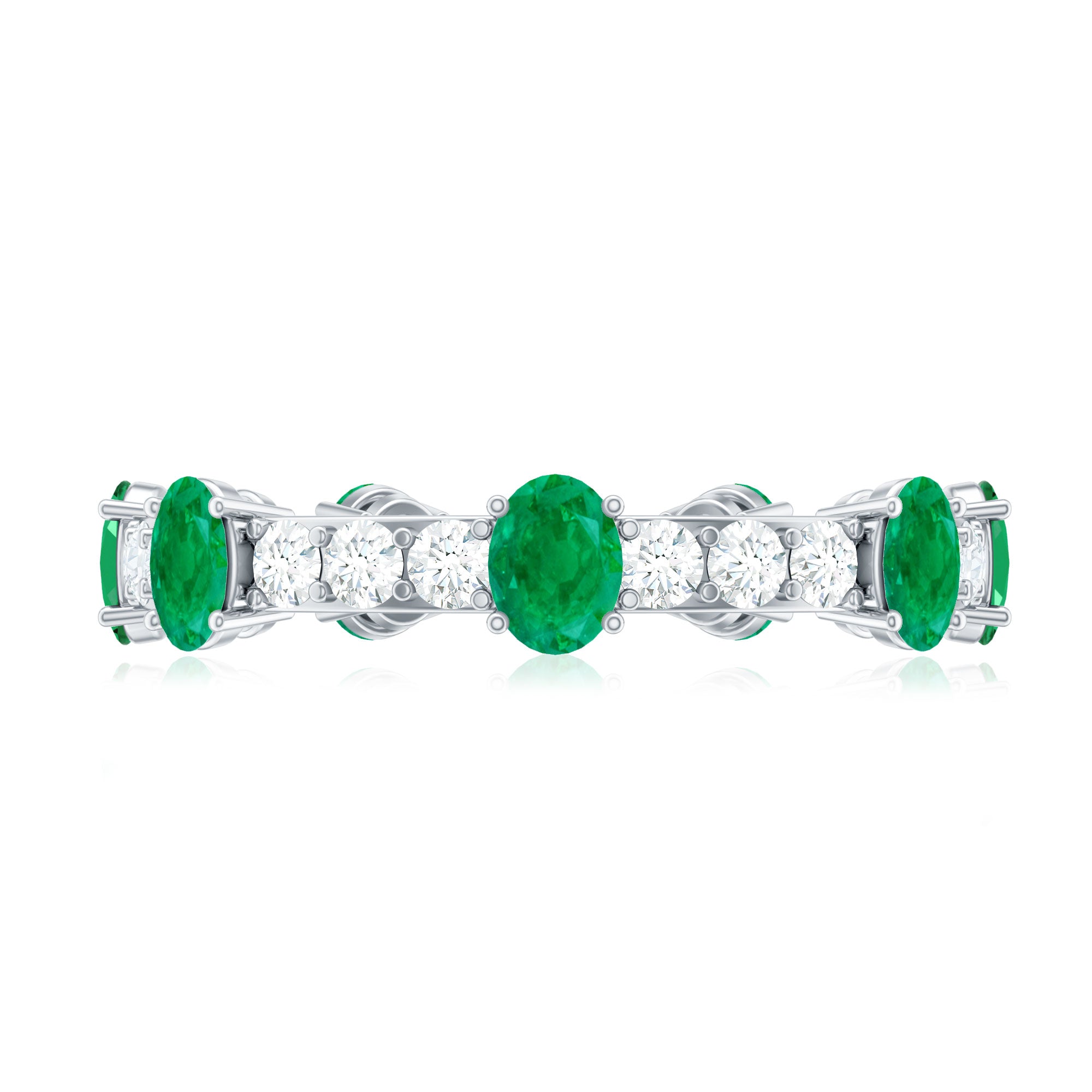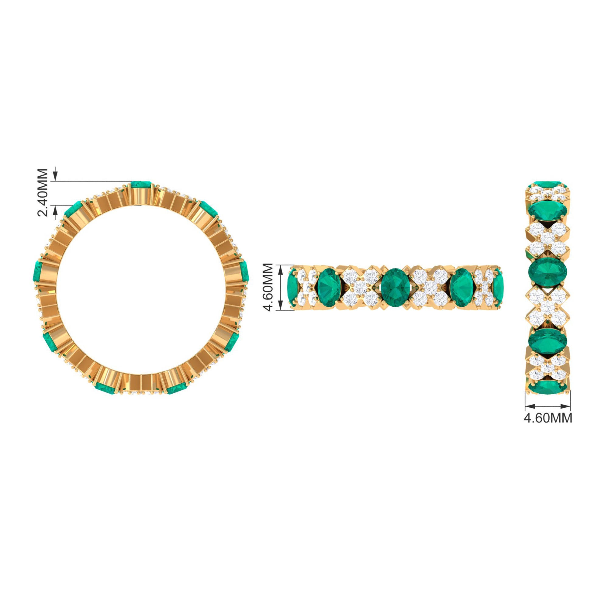 Eternity Bands features a continuous line of lush green emeralds that goes all around the band. It’s a luxurious choice that sparkles from every angle.