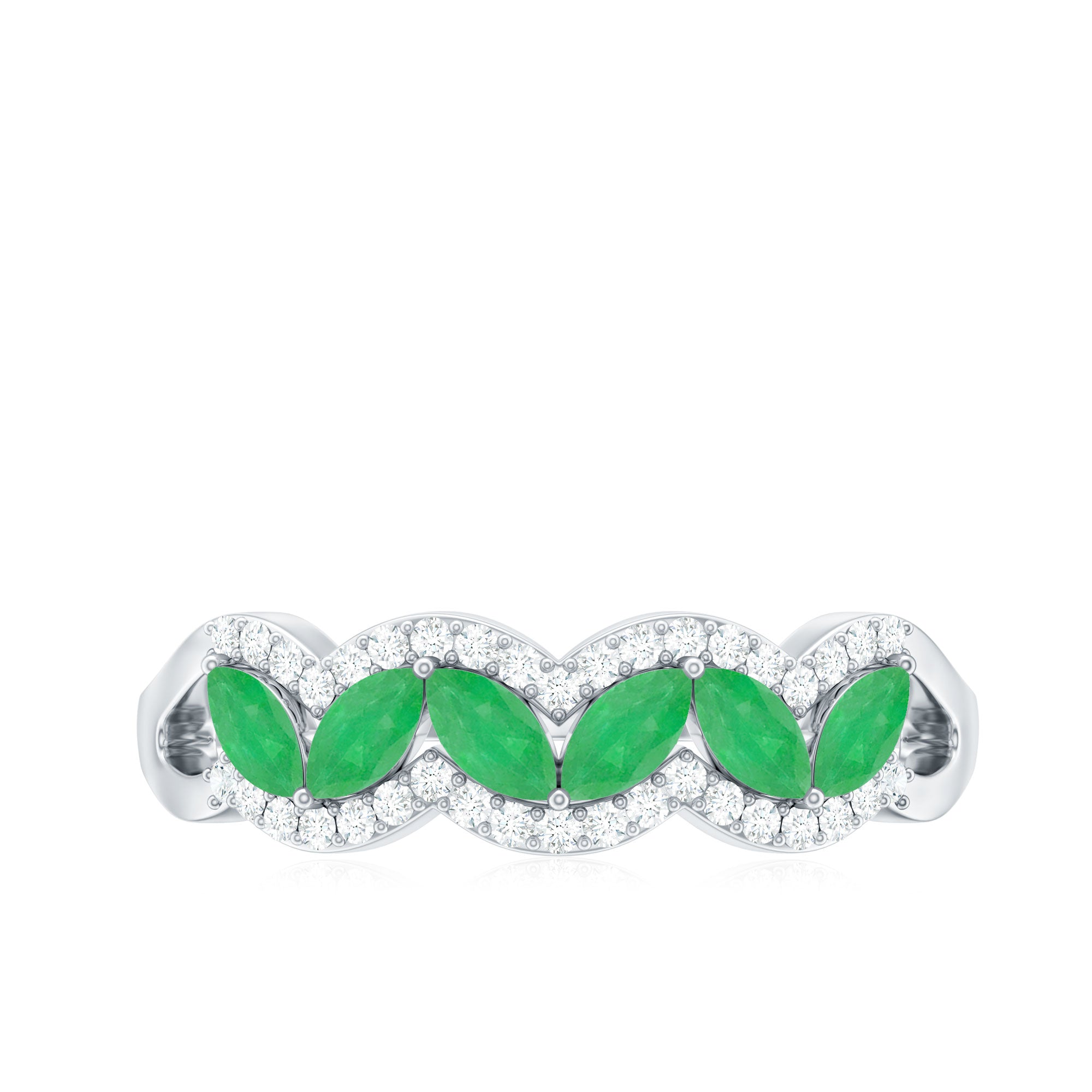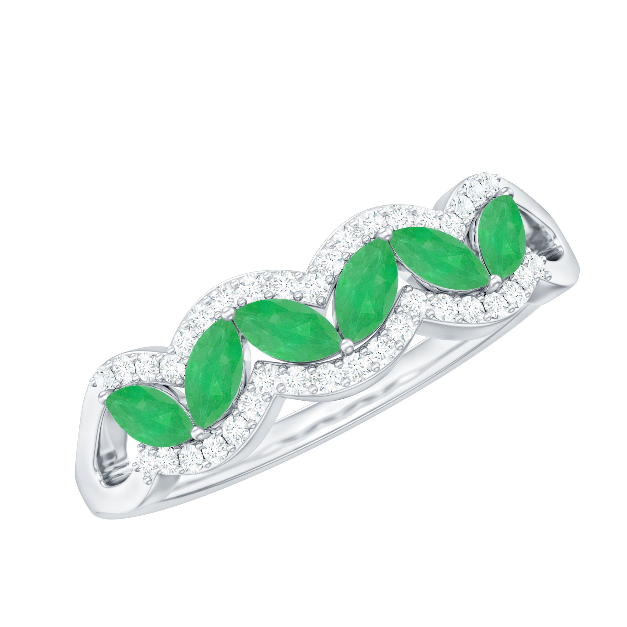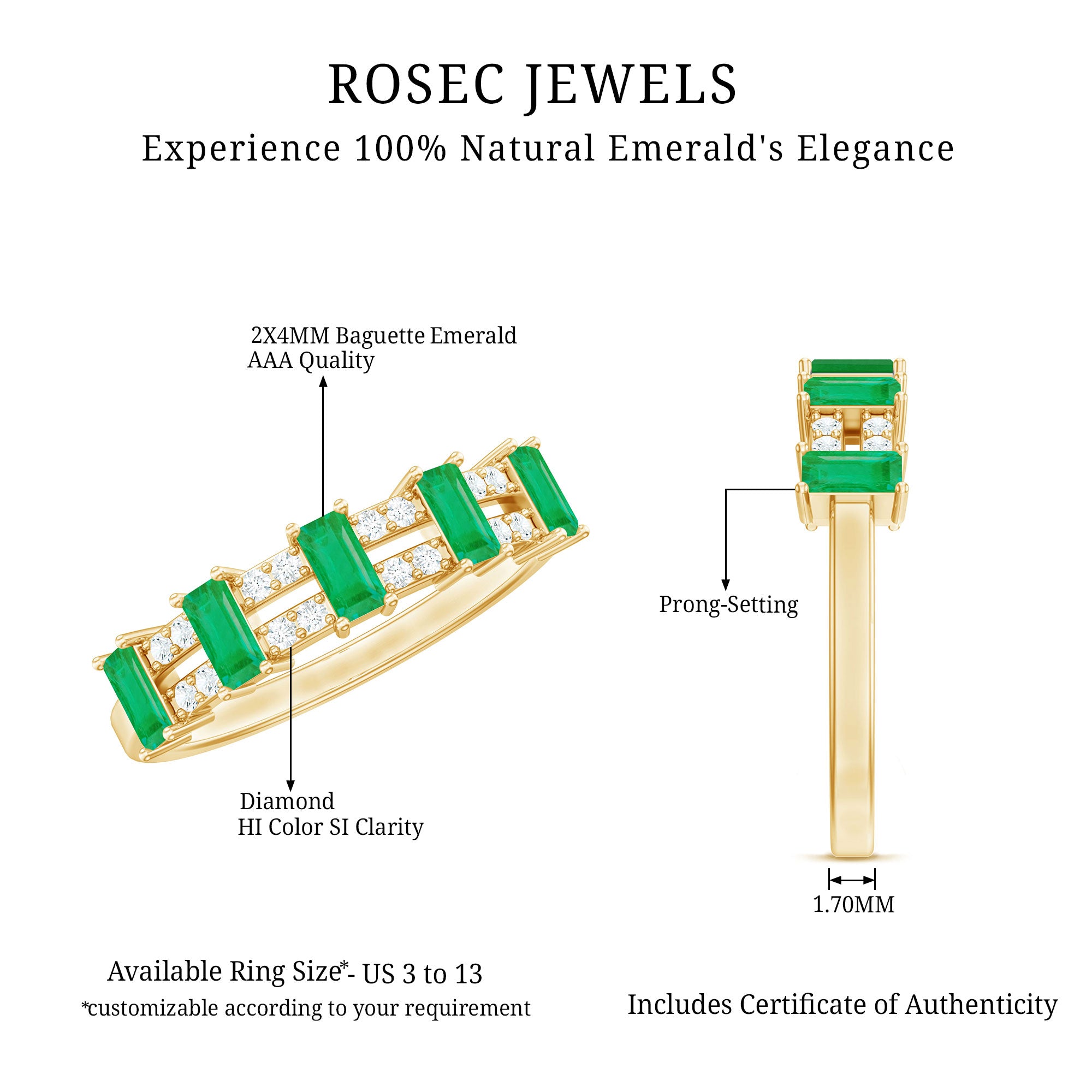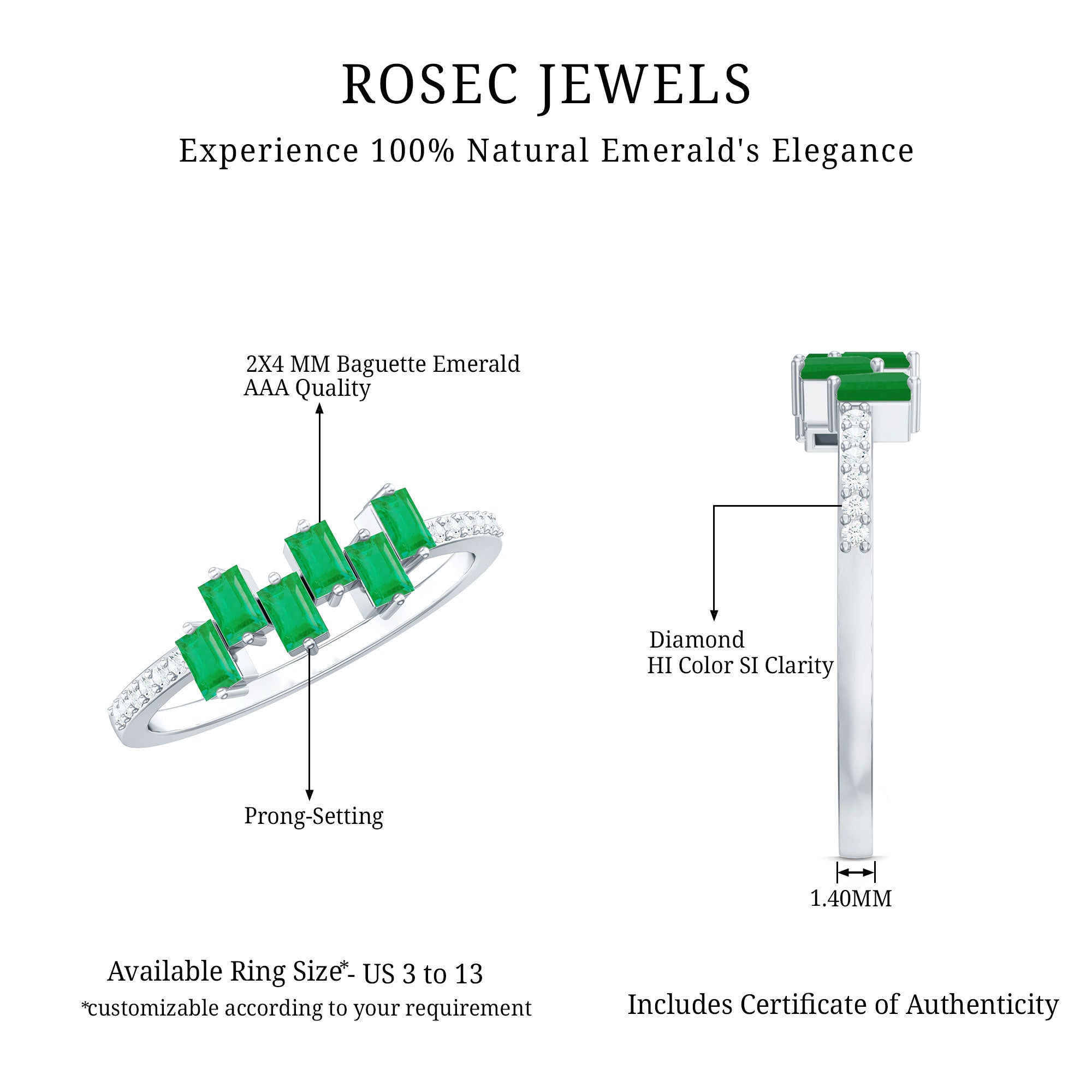 The east west emerald bands are a popular choice, with modern and geometrical appearance. East-west style ring is a great alternative to the traditional wedding ring. The horizontally placed gem is studded across the band, creating a more elongated and modern look.