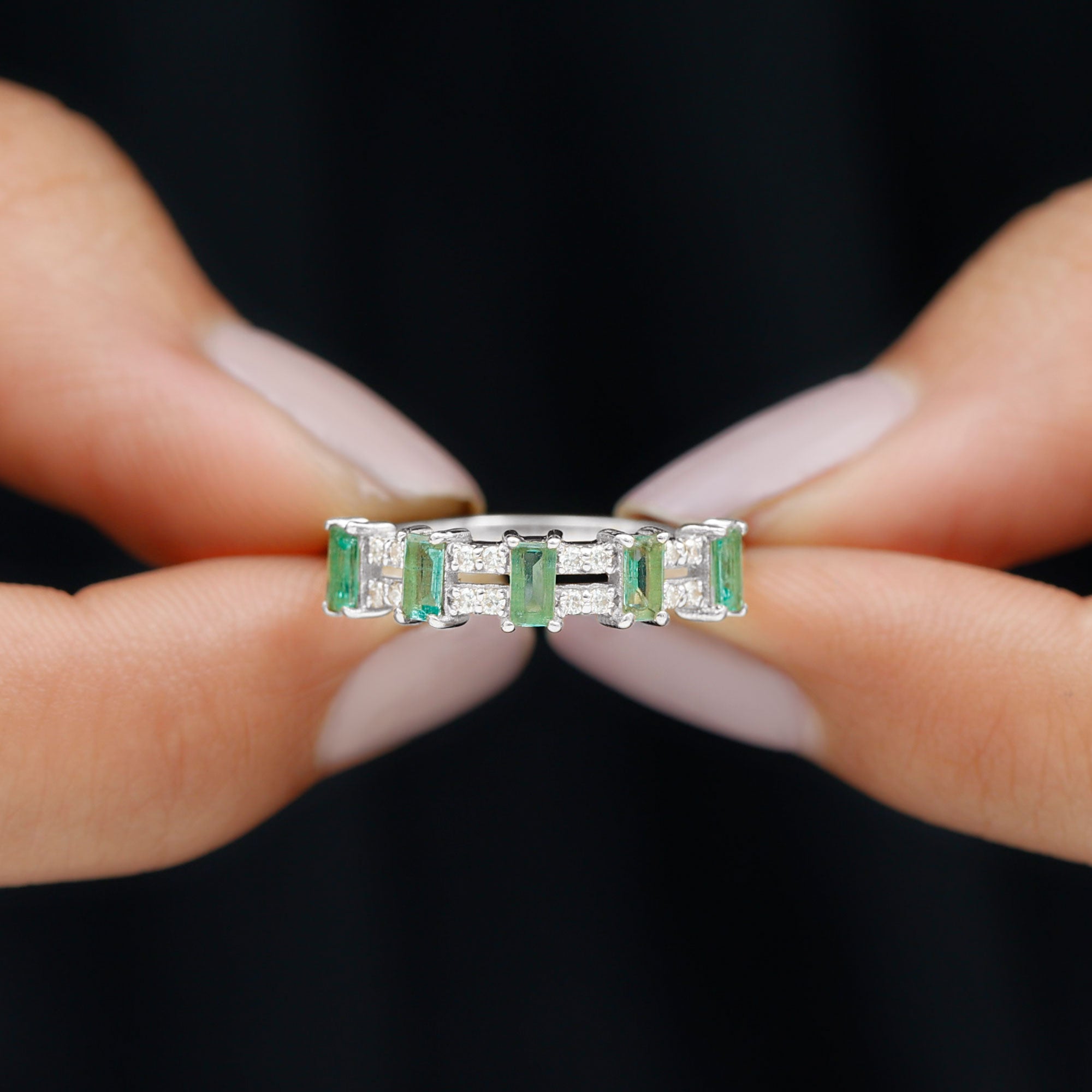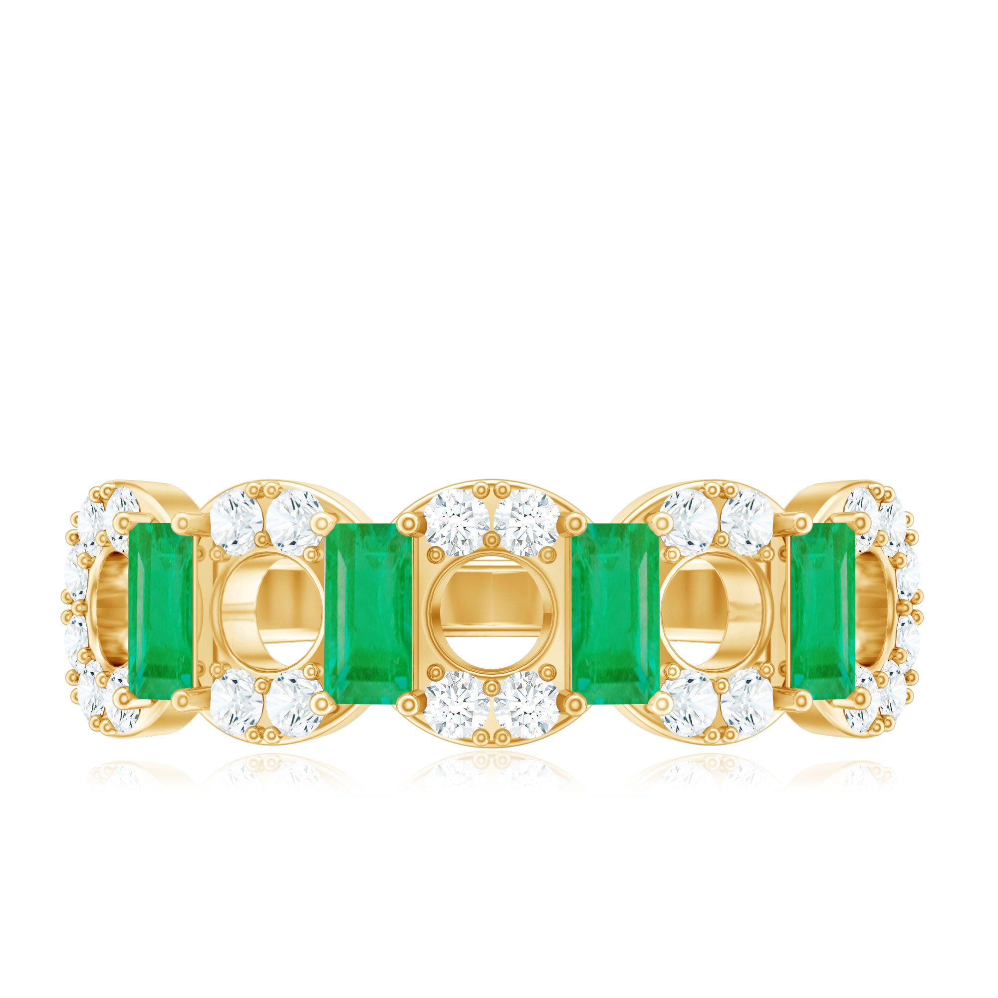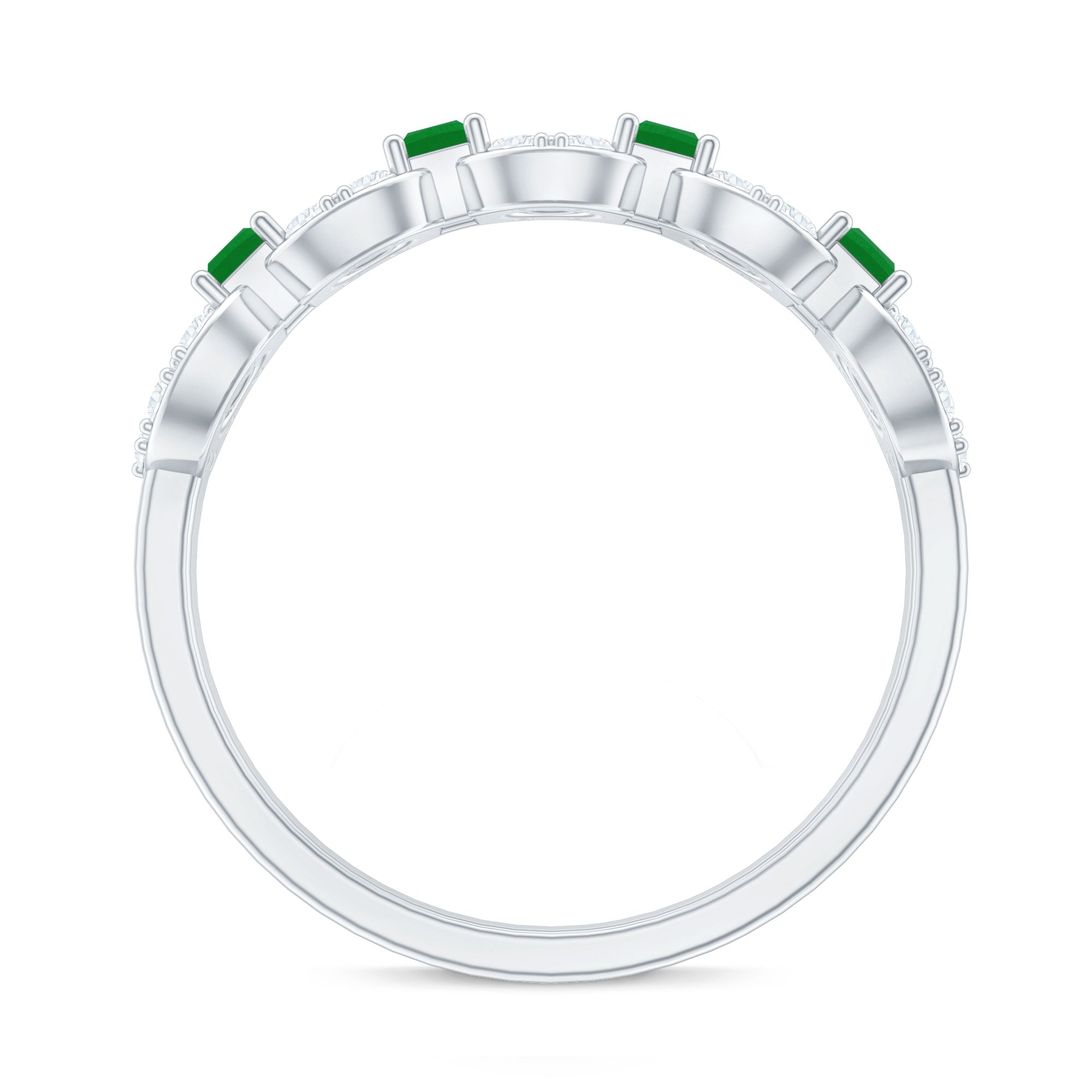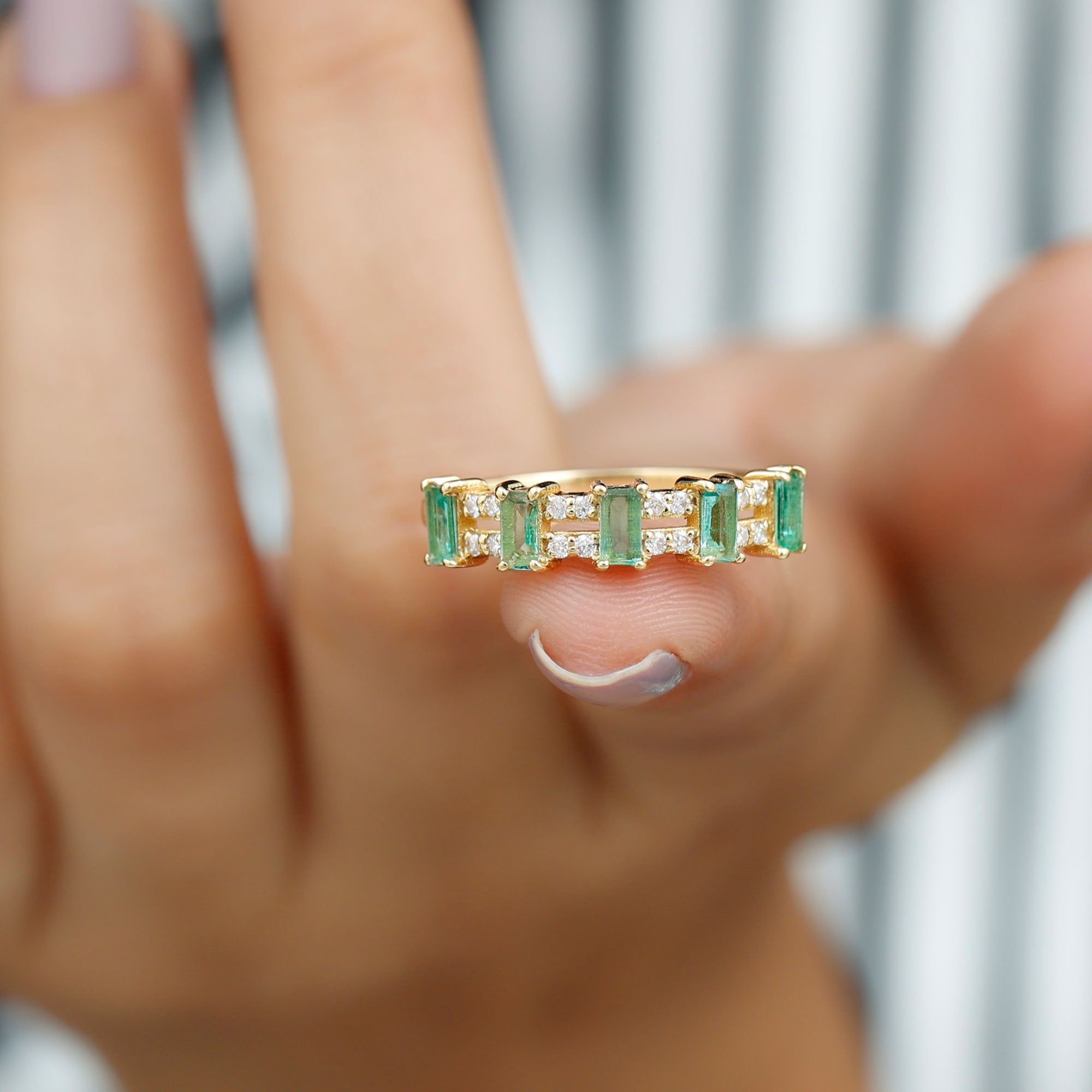Whatever her style is, you’ll find a perfect emerald wedding ring for your special person. Solitaire Wedding Band is an incredible choice if she is all about that minimal style. It looks just timeless and so elegant. It also highlights the beauty and brilliance of emeralds.