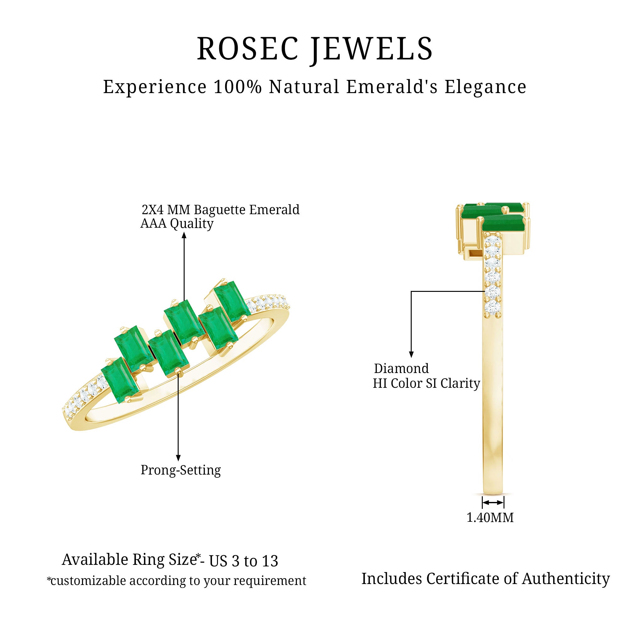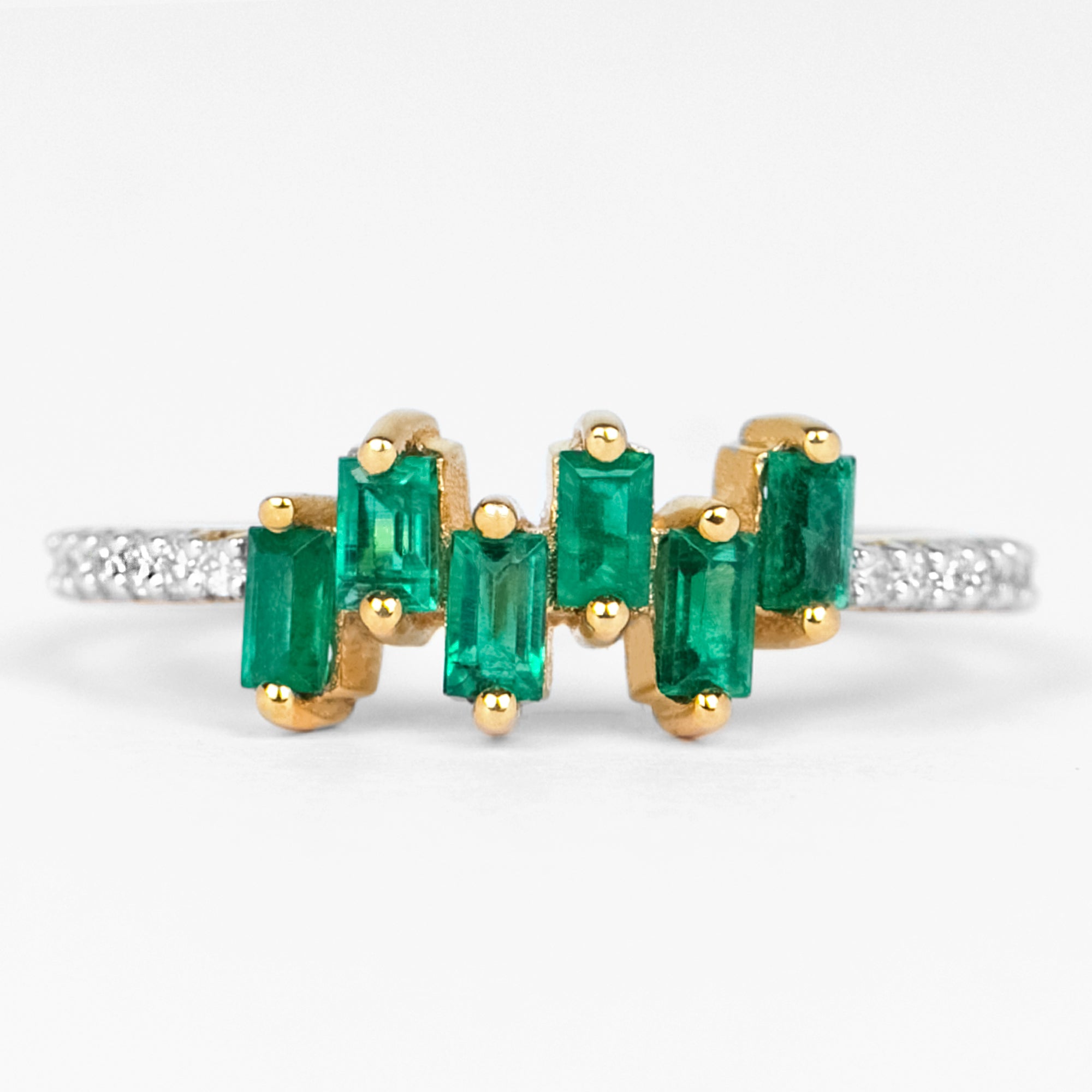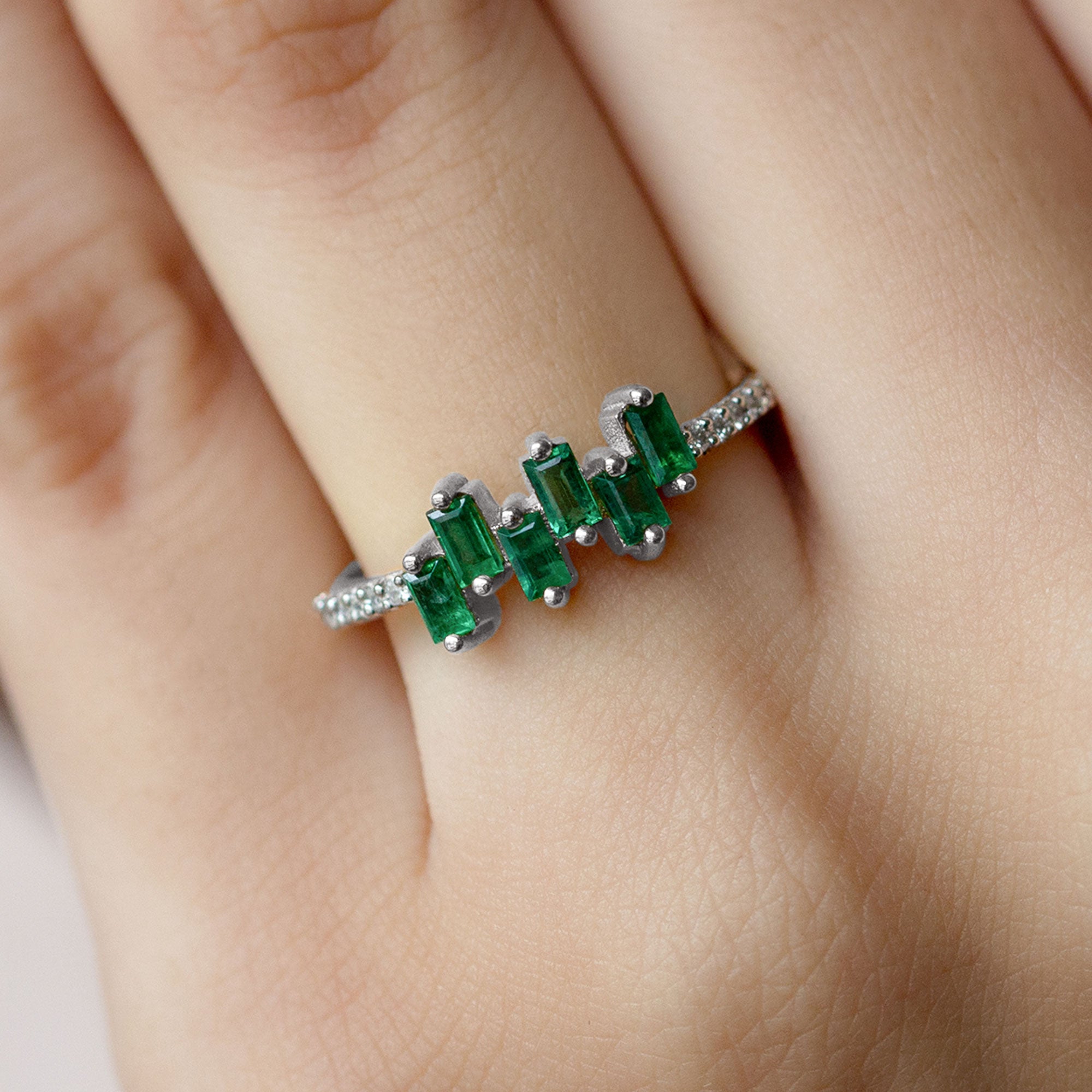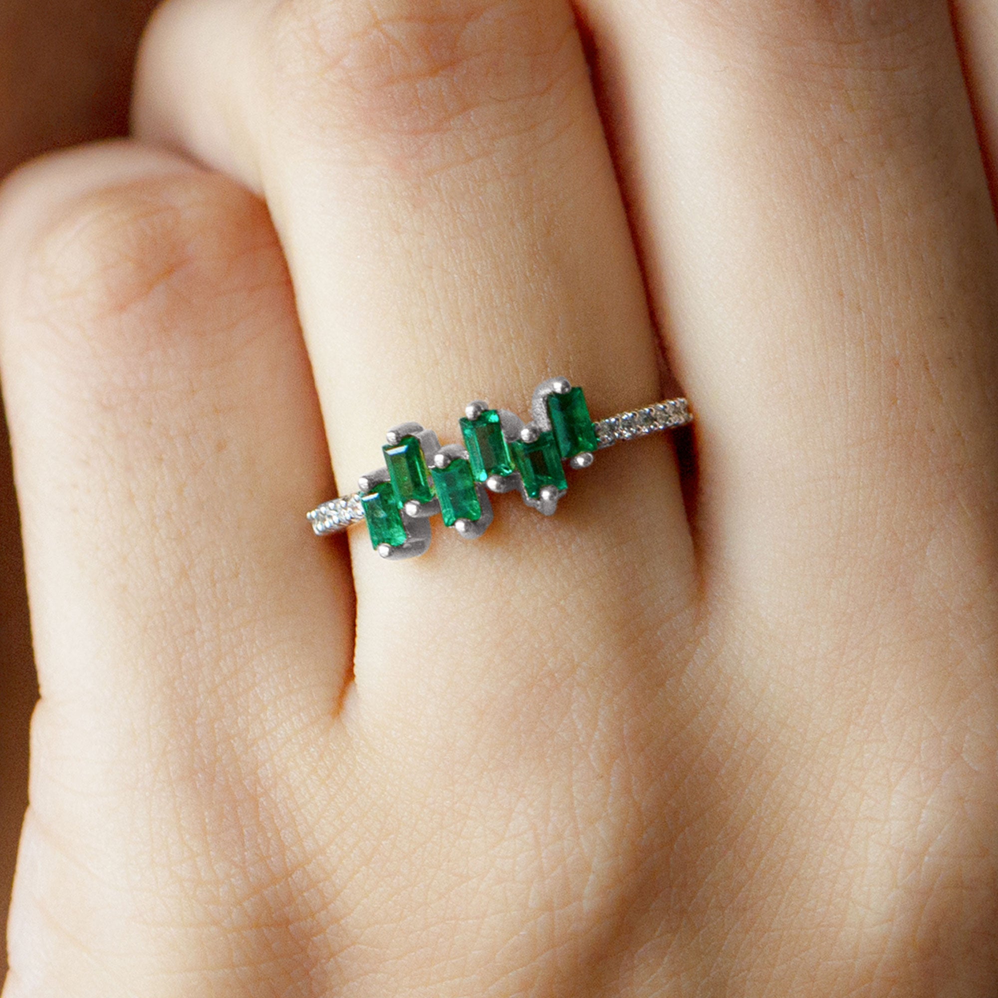The baguette cut emerald is a type of step cut that features a slim and rectangular shape with straight edges. Baguette emeralds are a great pick for the ones who have no interest in flashy center stones. You can get a large center stone with side stones for a modern look.