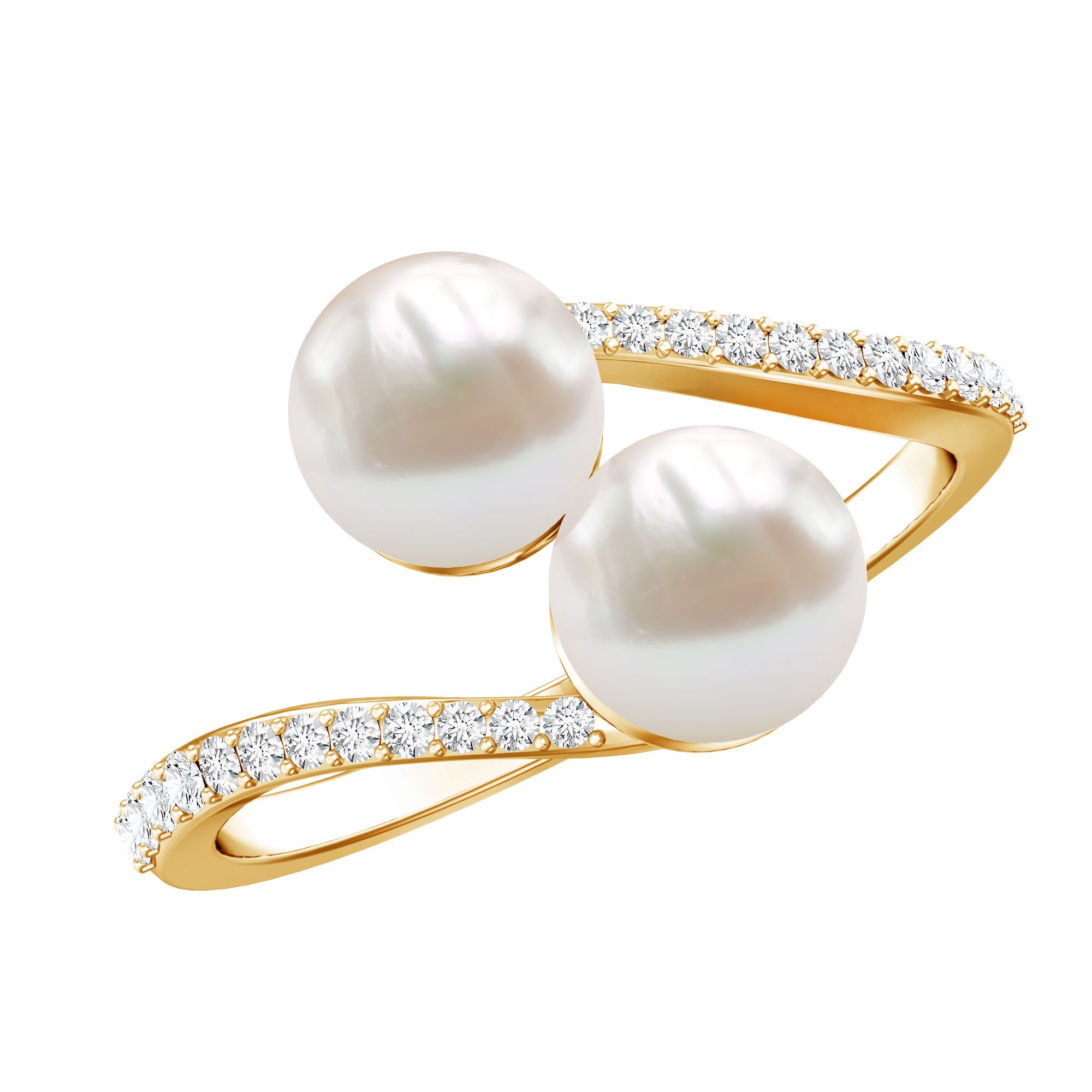Moi et Toi Freshwater Pearl Bypass Ring with Diamond